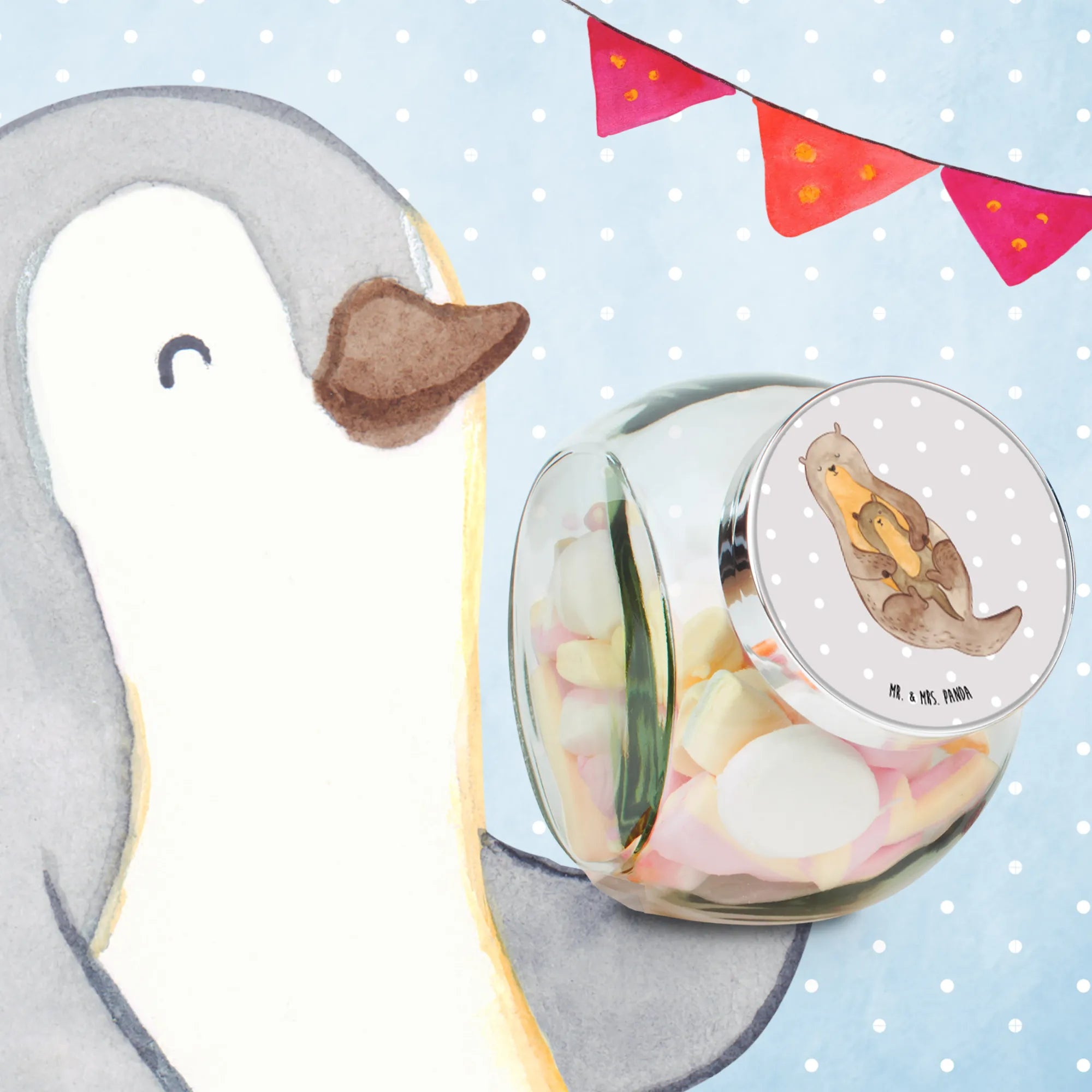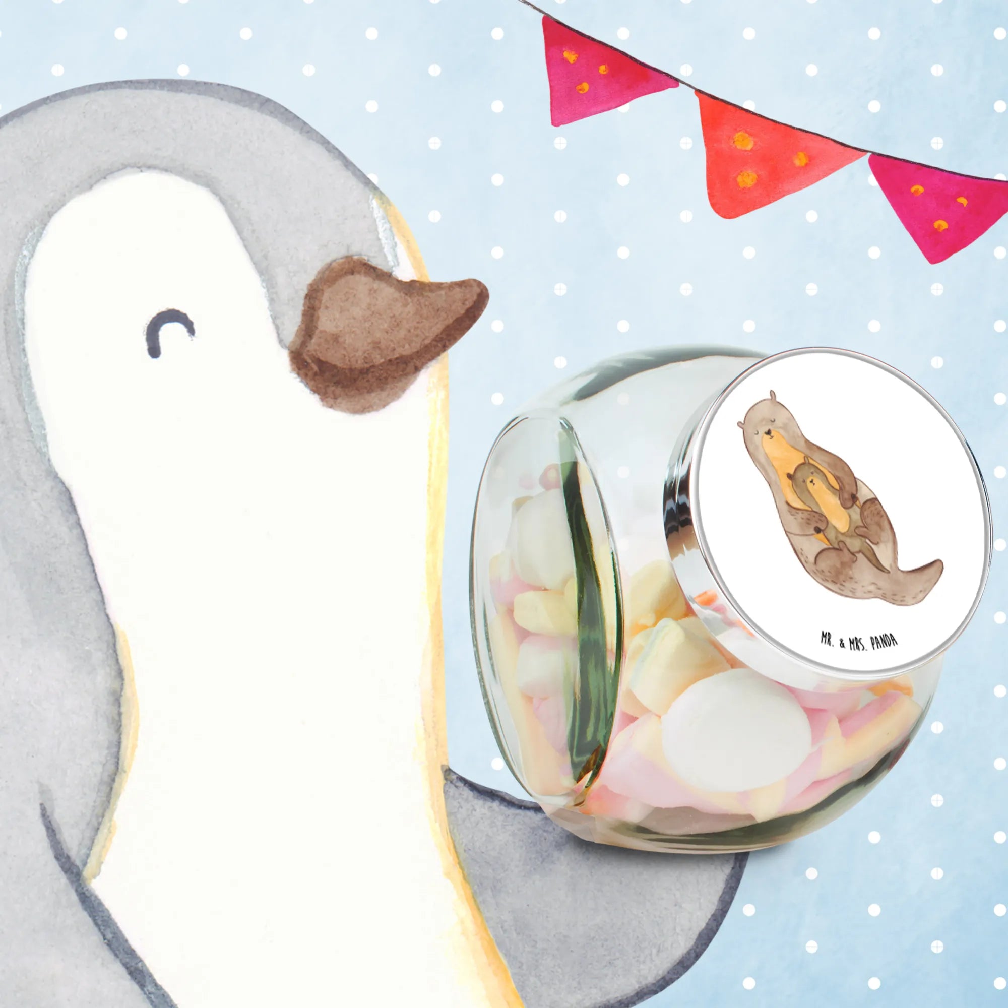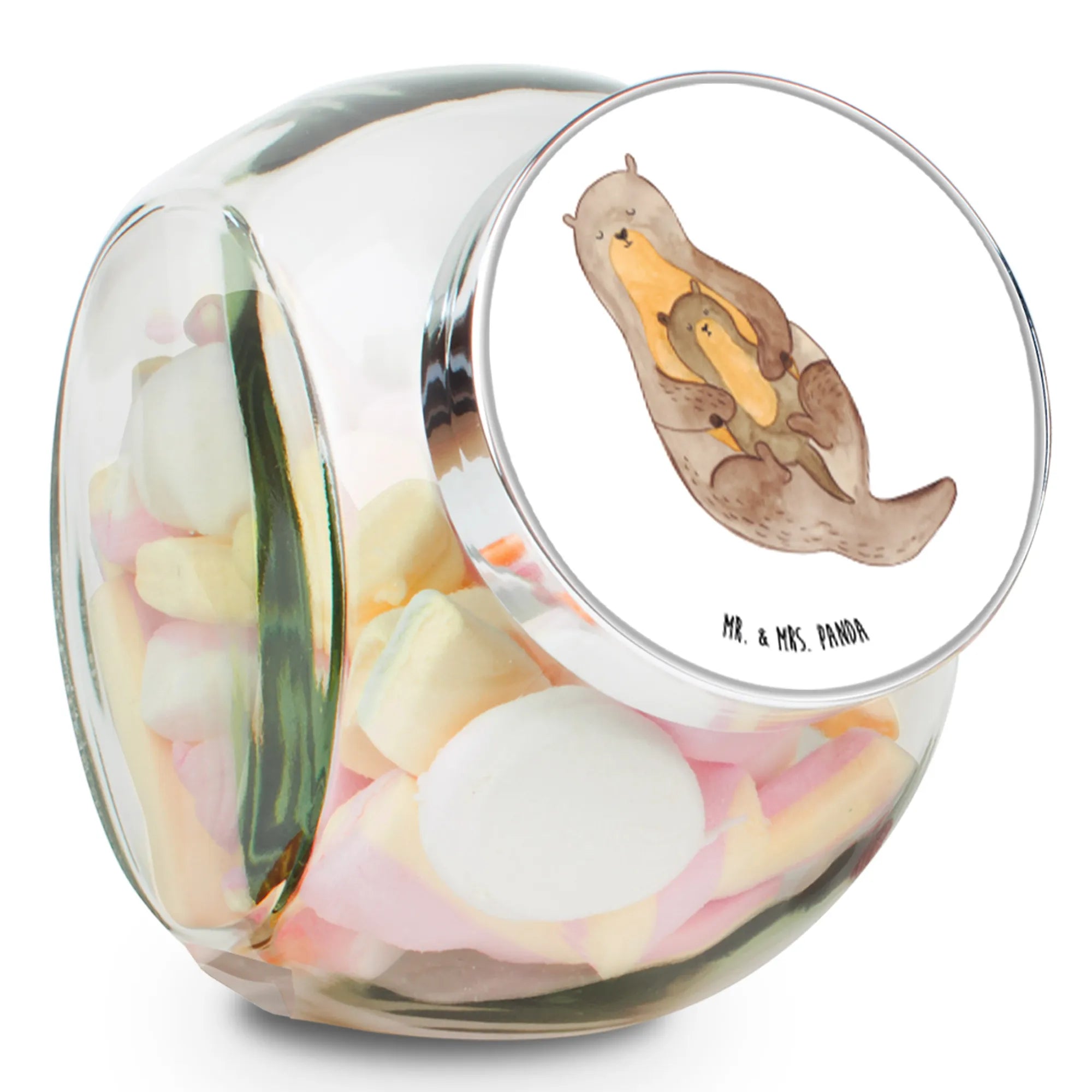 With its intricate design of a loving otter and its little one, lovingly hand-drawn by Mrs. Panda, this candy jar will surely put a smile on the faces of both children and adults alike.