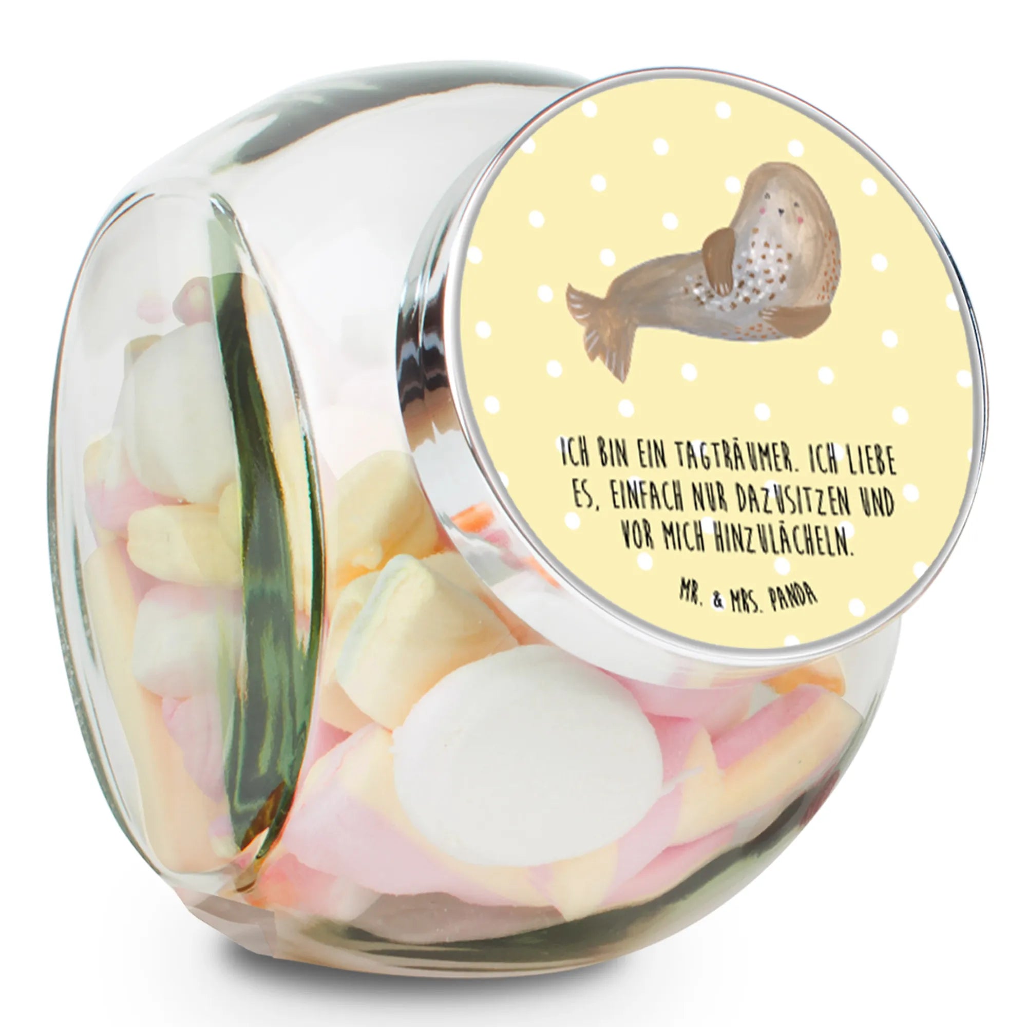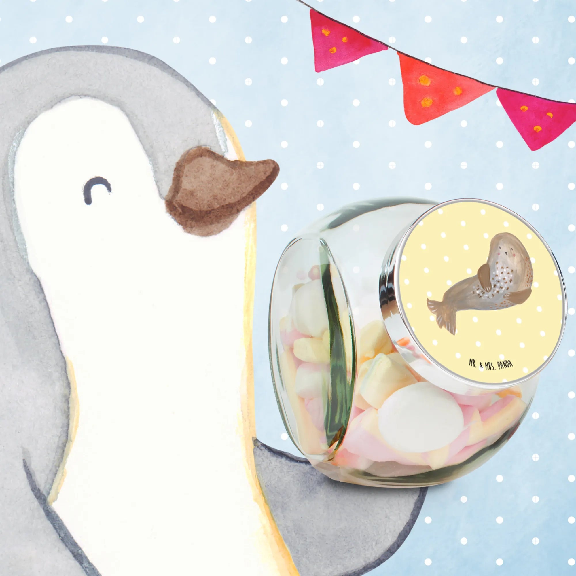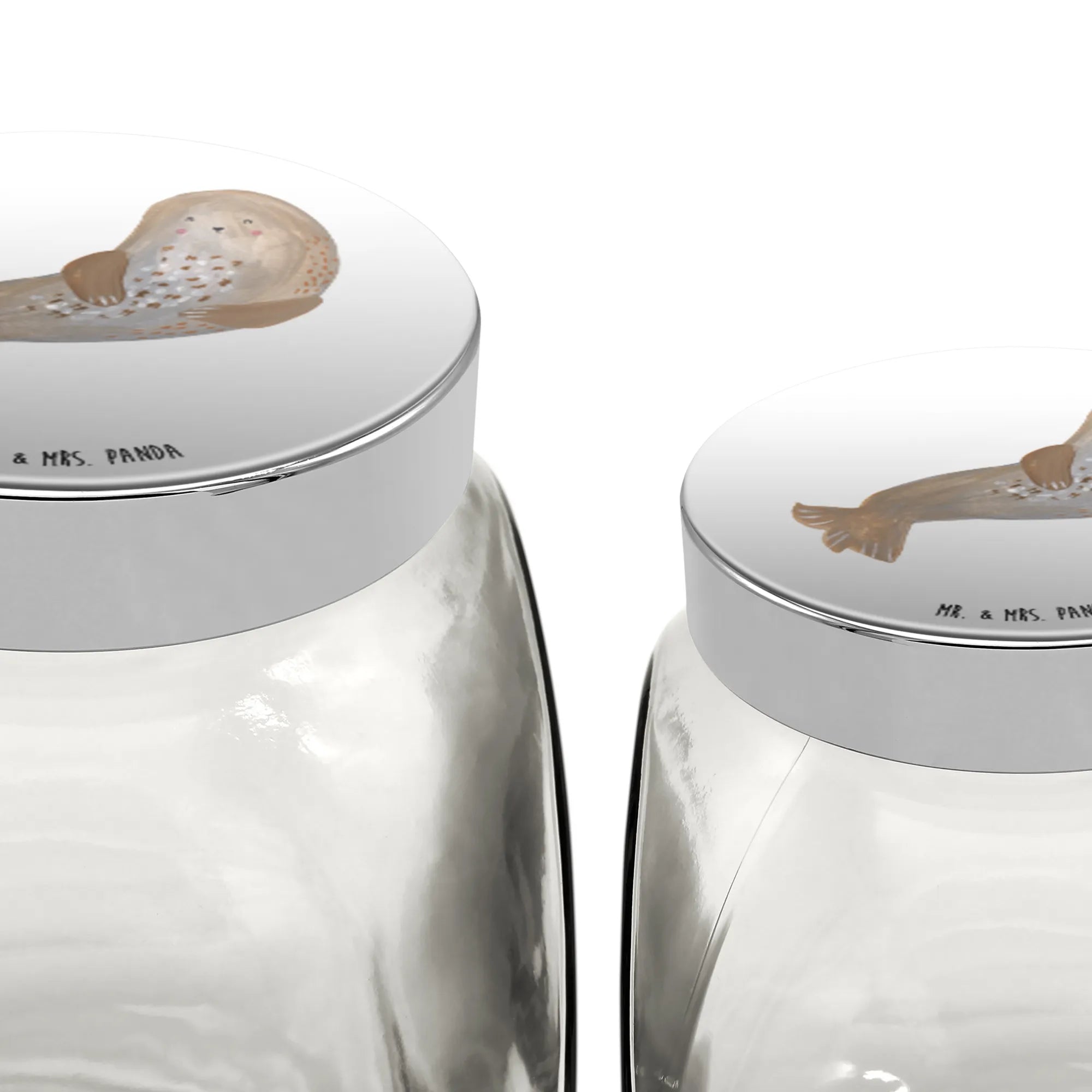 Crafted from premium glass, this candy jar comes with a secure silver screw lid that keeps your treats fresh and aromatic while showcasing its charming design. The Laughing Seal, happily holding its belly in laughter, is lovingly hand-drawn by Mrs. Panda using watercolor techniques, bringing this adorable marine creature to life. It’s more than just a storage solution - it’s a piece of art that brightens up your kitchen or dining area!
