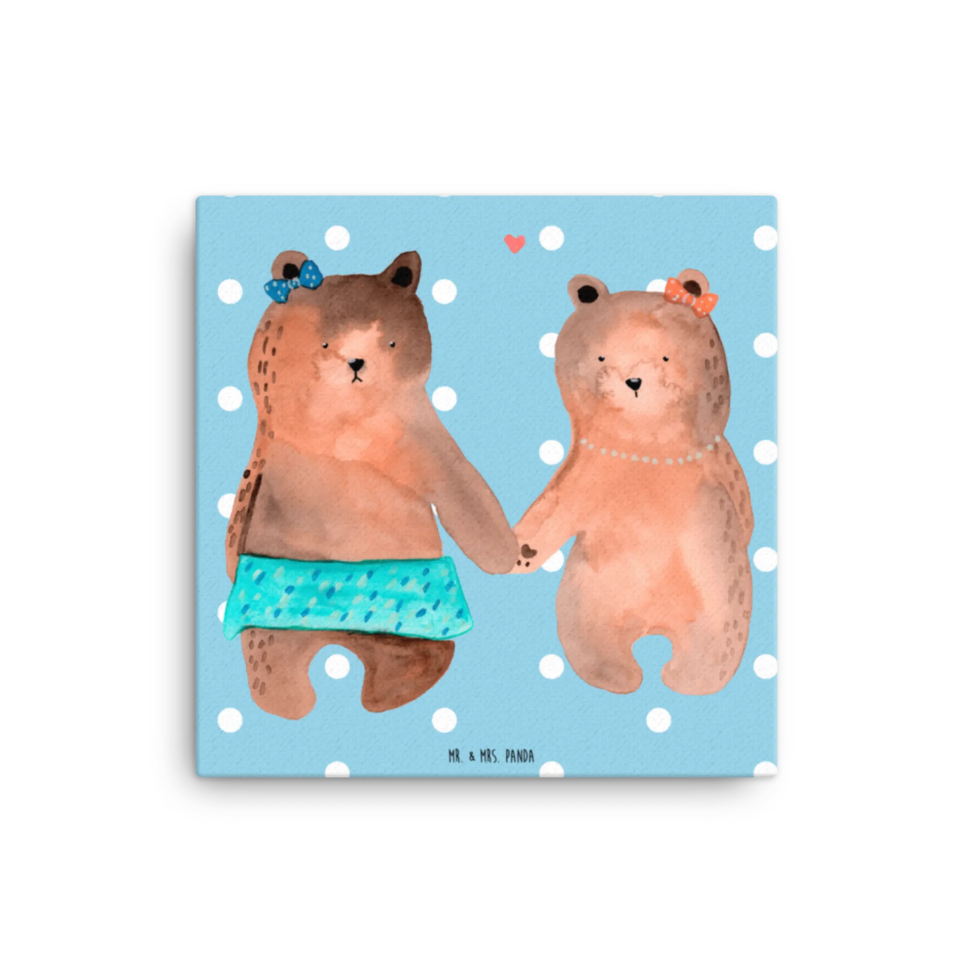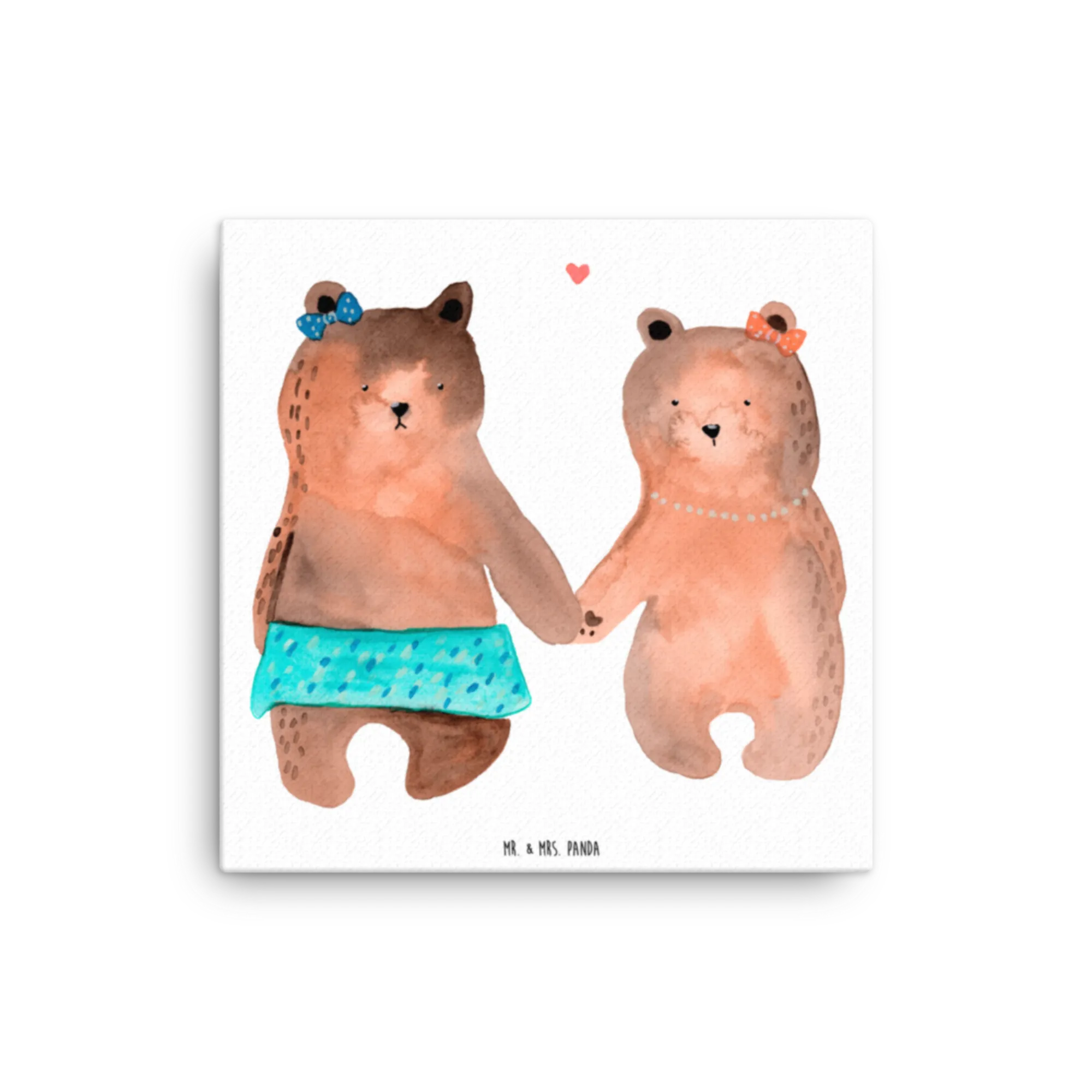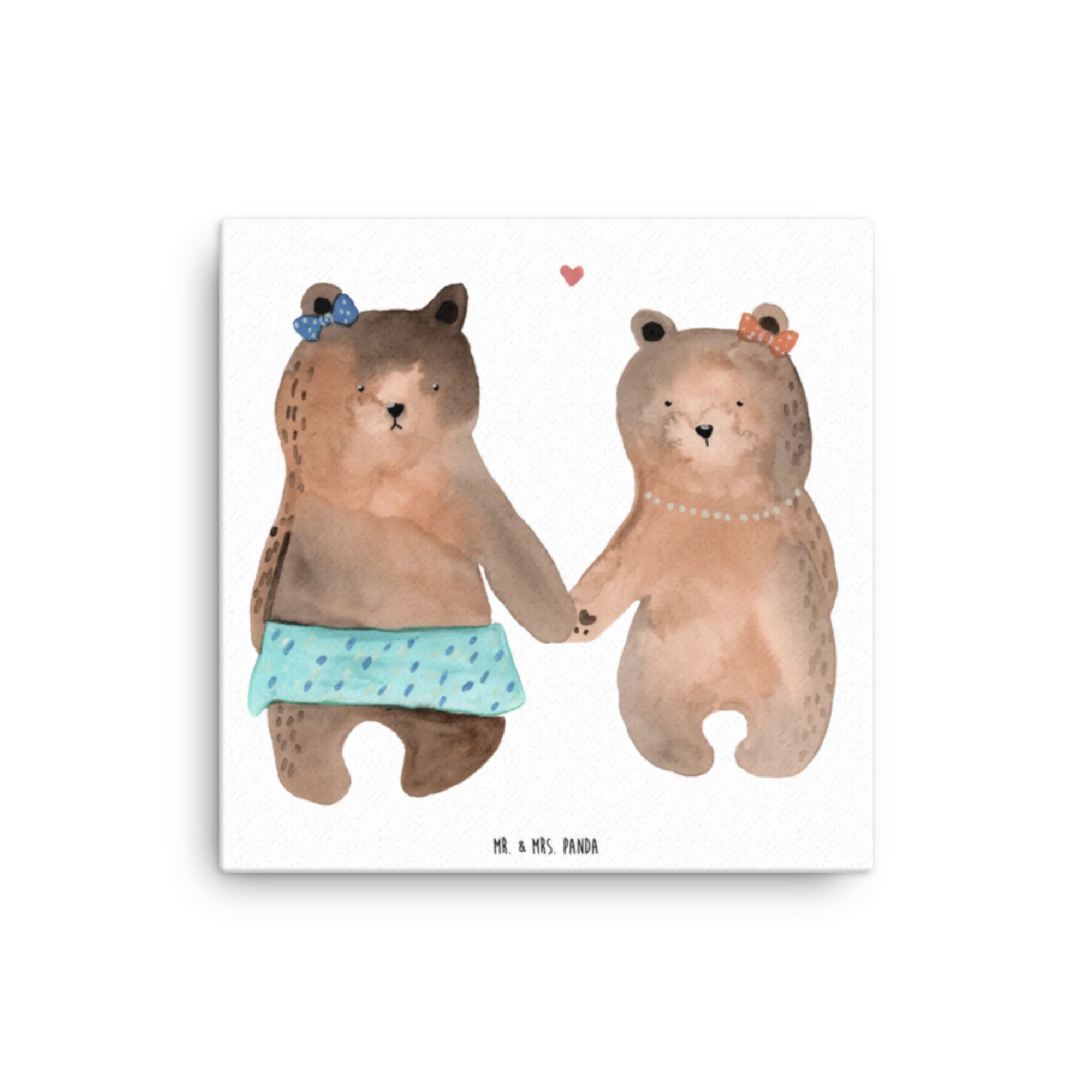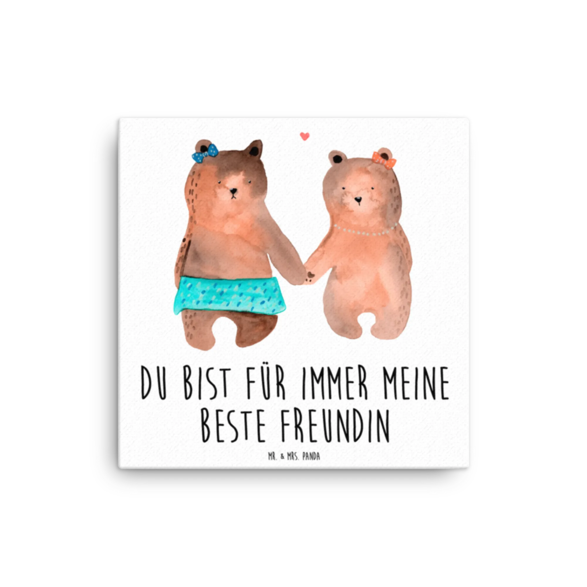 Canvas picture bear Girlfriend - 40 x 40 cm - with a saying - White