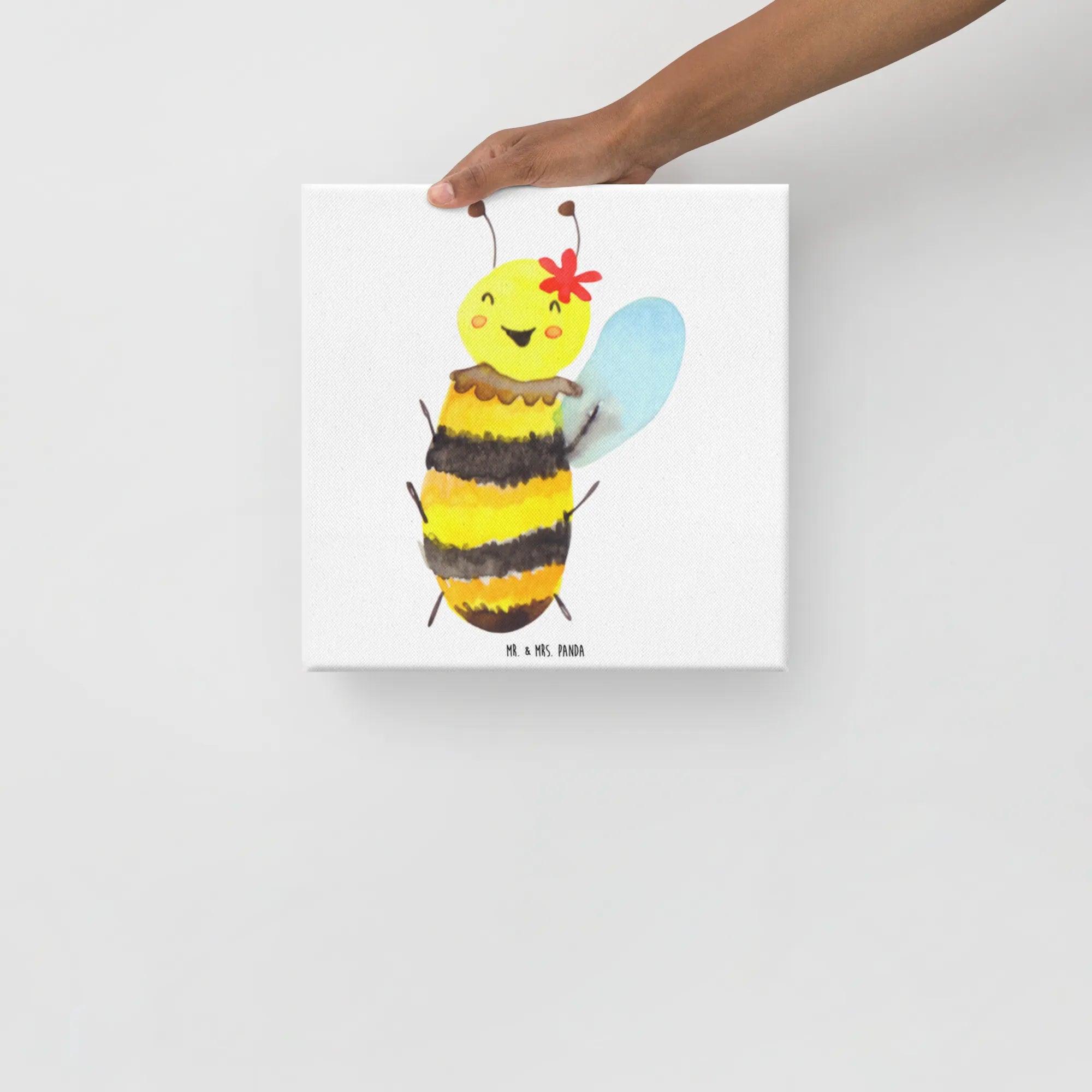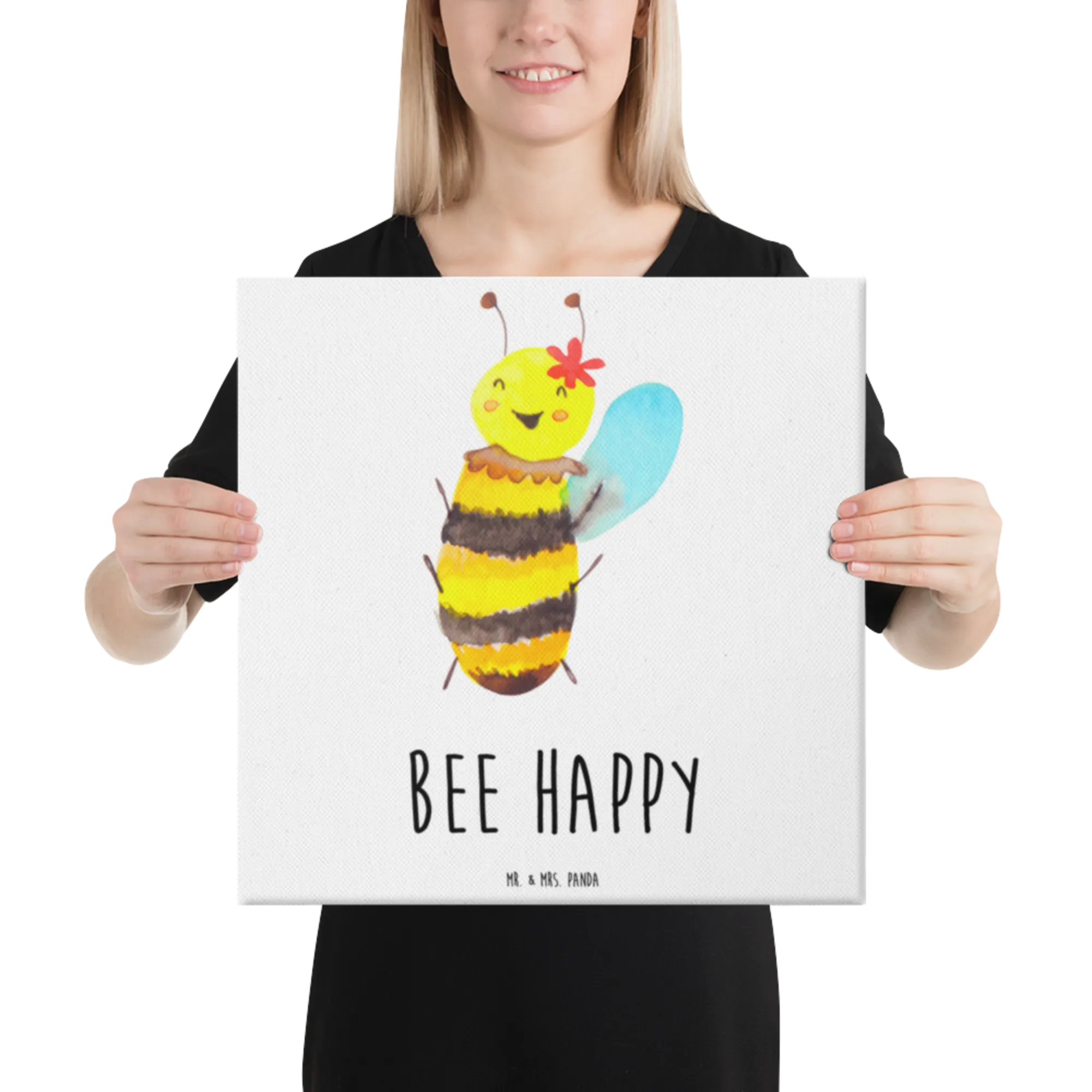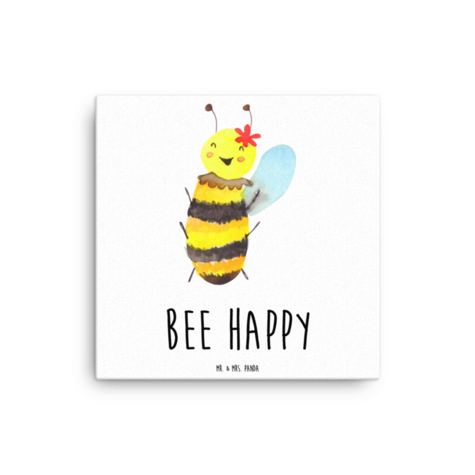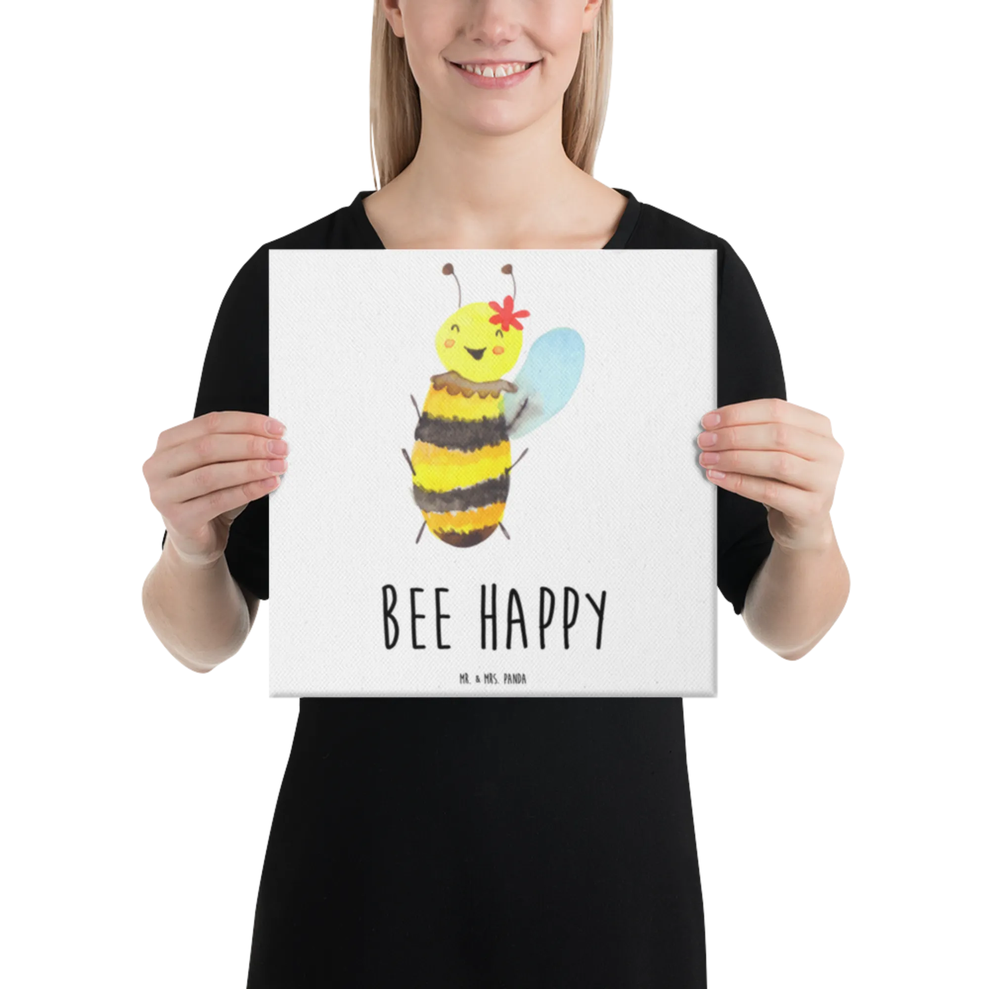 Canvas picture bee happy - 40 x 40 cm - with a saying