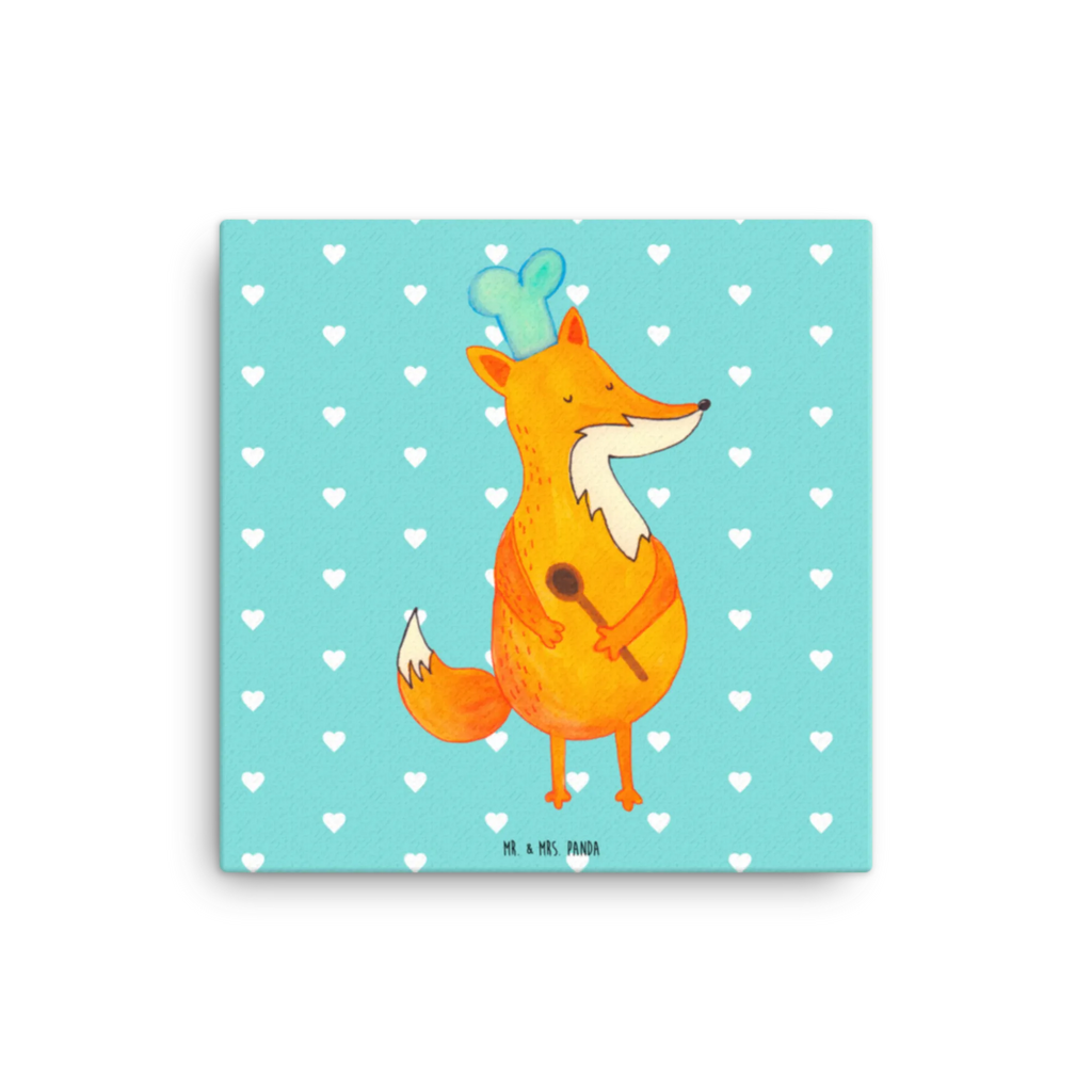 Canvas picture Fox A cook - 40 x 40 cm - with a saying - Turquoise Pastel