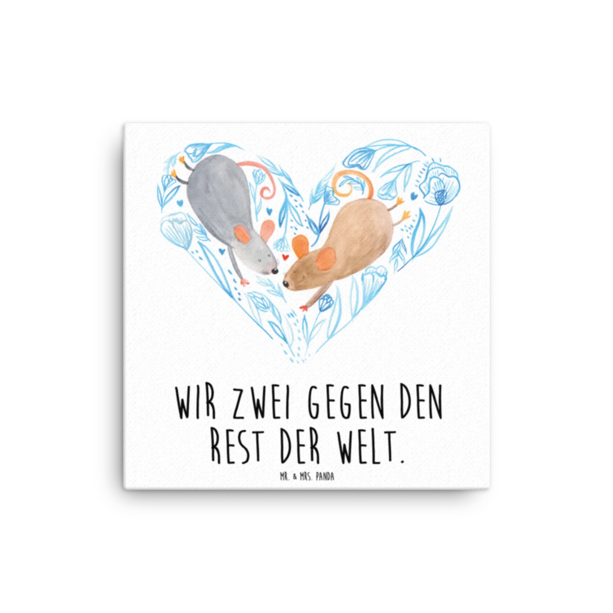 Canvas picture Mice heart - 40 x 40 cm - with a saying - White