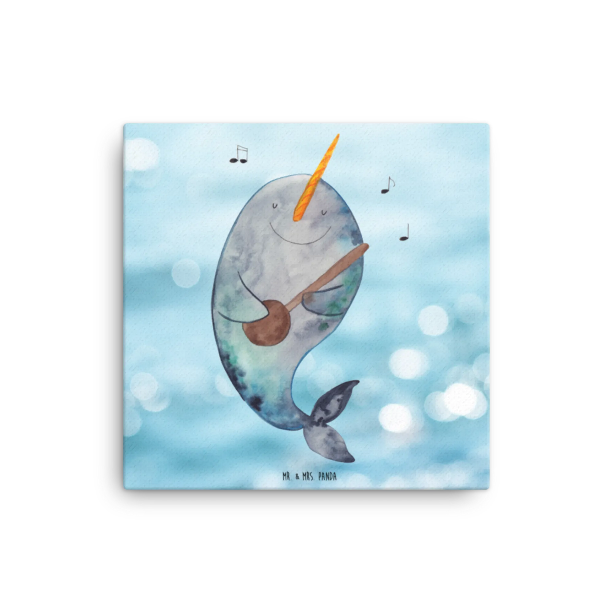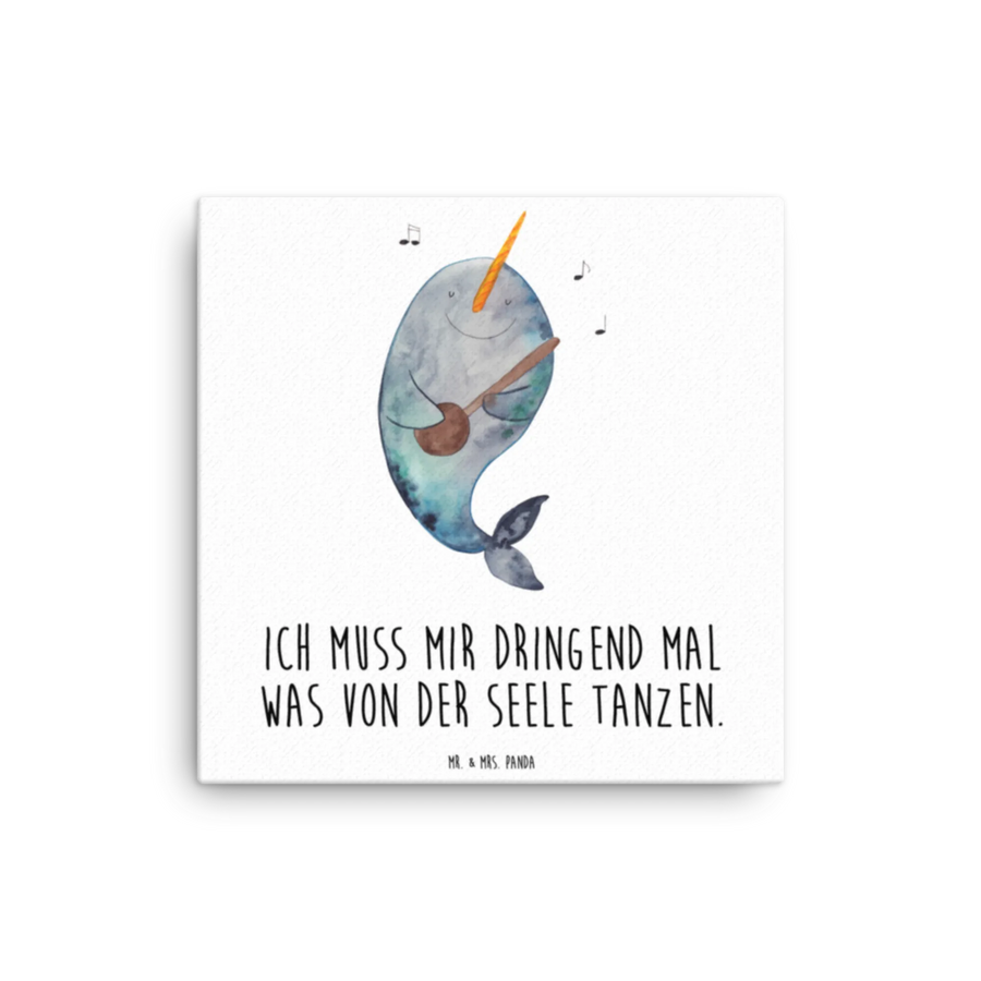 Canvas picture narwhal guitar - 40 x 40 cm - with a saying - White