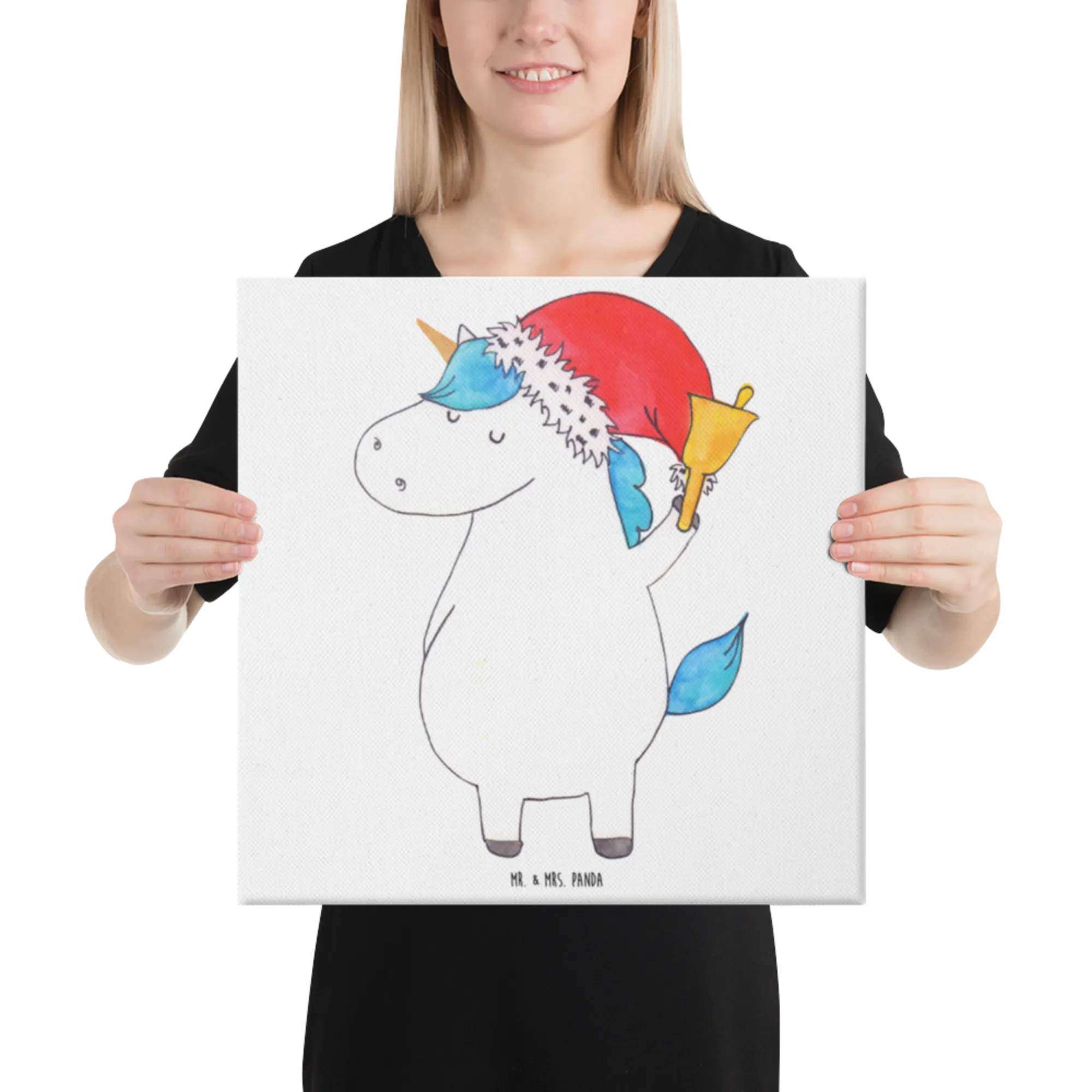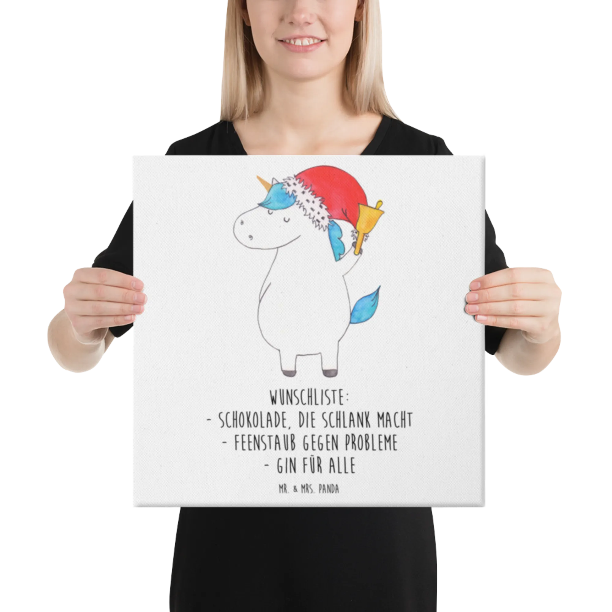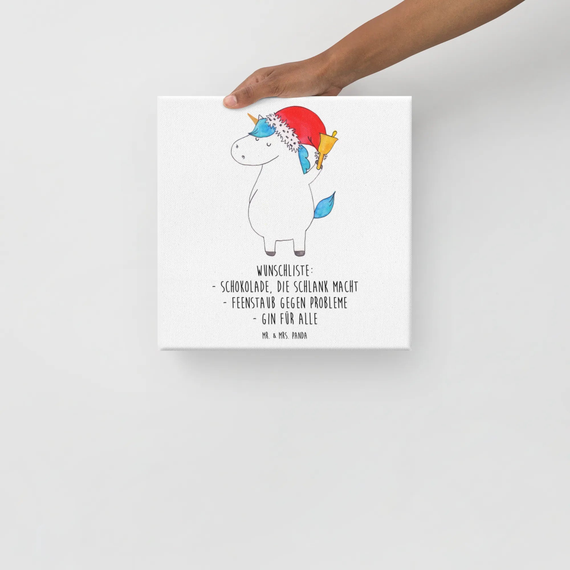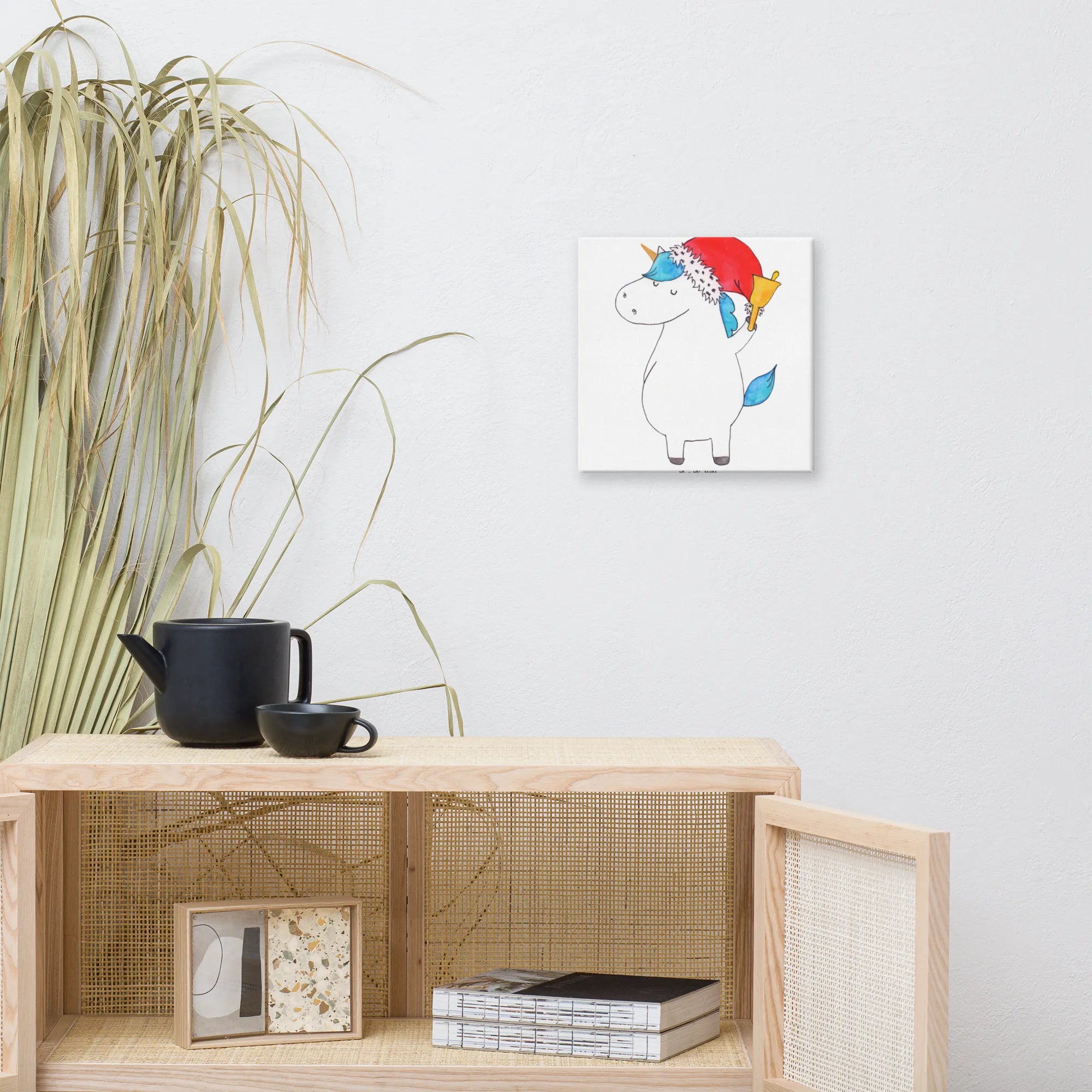 Canvas picture unicorn Santa Claus - 40 x 40 cm - with a saying