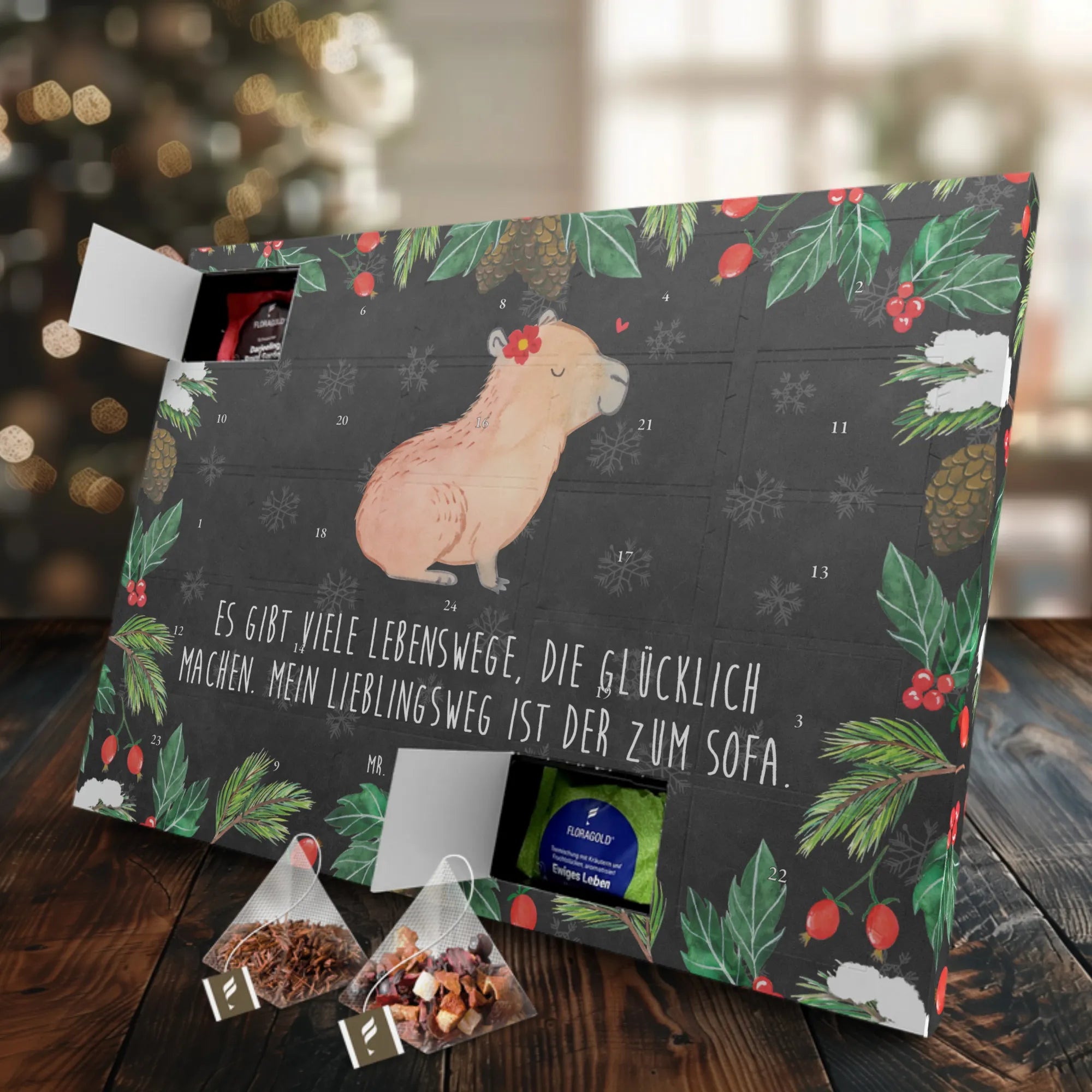 Meet our adorable Capybara Flower! This charming motif showcases a blissful capybara, eyes gently closed, radiating tranquility. Perched atop its head is a vibrant red flower, its yellow center bringing a playful pop to the design. The heart floating above captures the essence of love and relaxation, making this piece a sweet reminder that happiness can be found in the simplest moments. Embrace the joy of taking life at your own pace, because remember: Es gibt viele Lebenswege, die glücklich machen. Mein Lieblingsweg ist der zum Sofa.