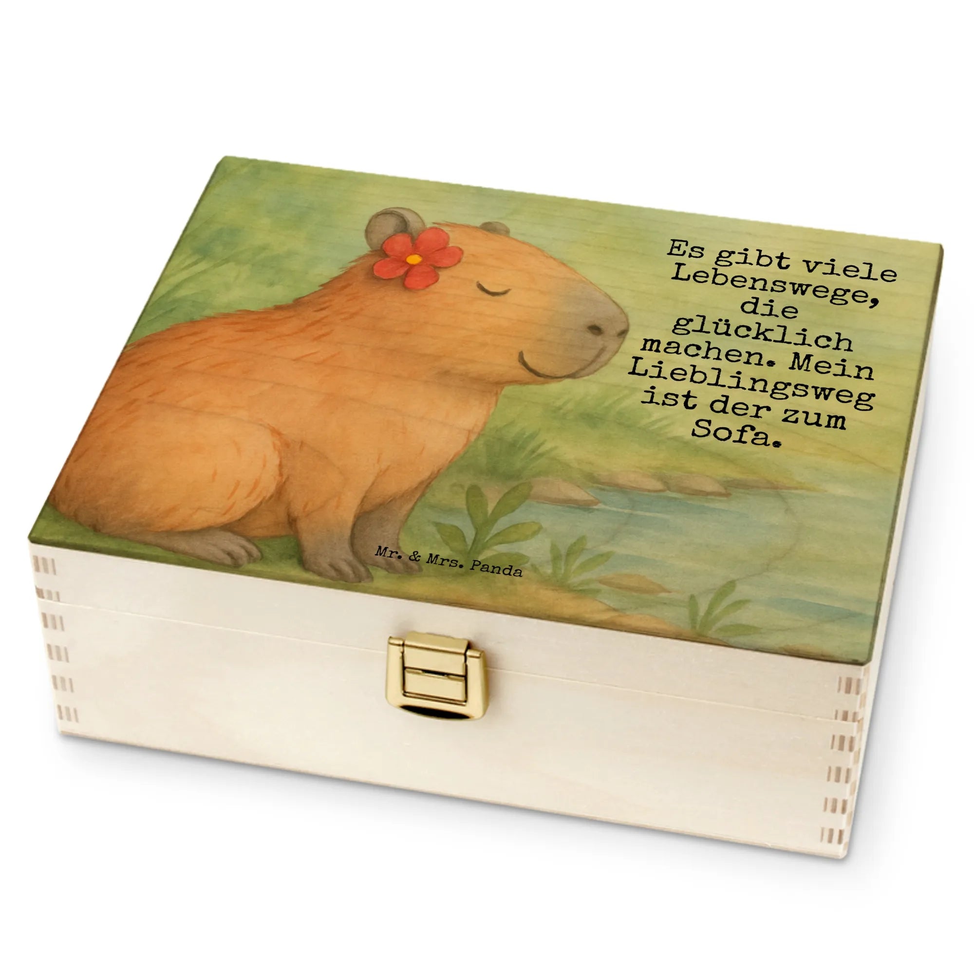 Say hello to the delightful Capybara Flower! With its serene visage and contented smile, this capybara is a beacon of relaxation. Crowned with a striking red flower accented by golden yellow, its look is festive and fun. Floating above, a heart symbolizes the affection that surrounds us in life's quiet moments. Let this enchanting motif remind us that, as we know well: Es gibt viele Lebenswege, die glücklich machen. Mein Lieblingsweg ist der zum Sofa. So kick back and find joy in your own cozy spot!