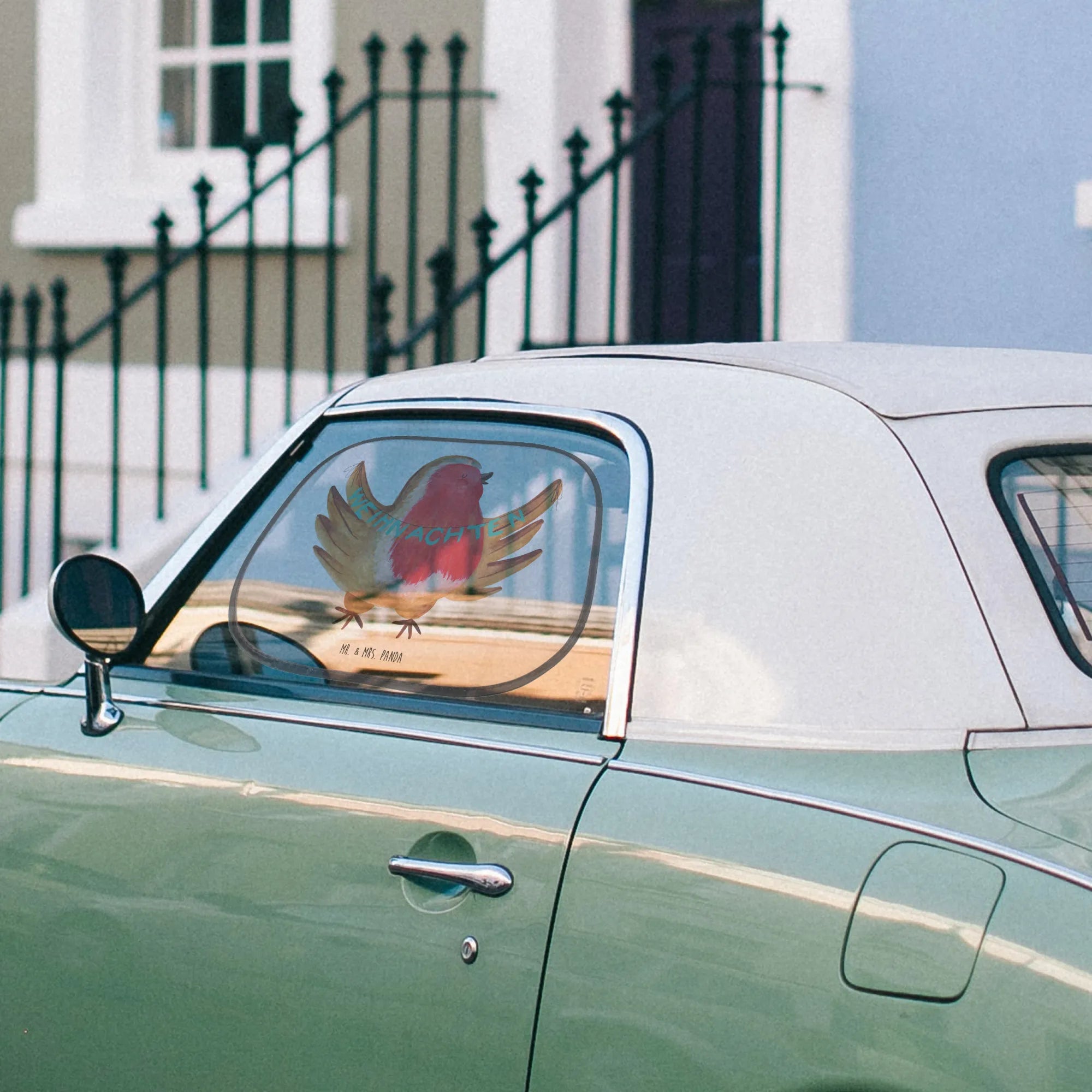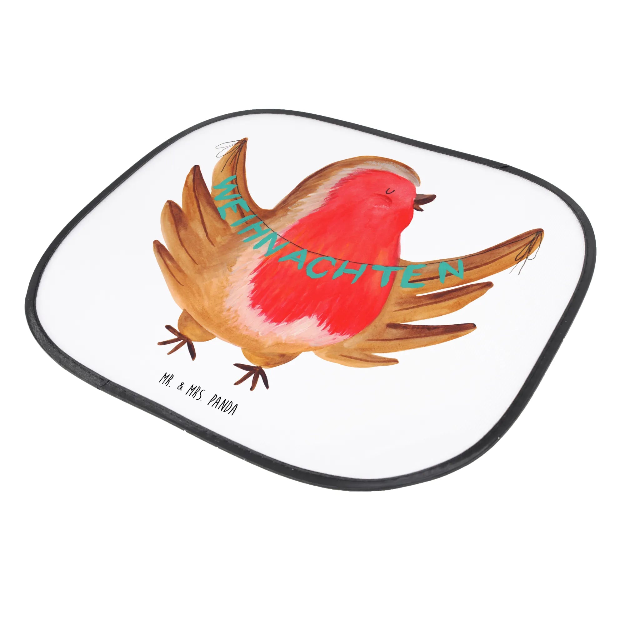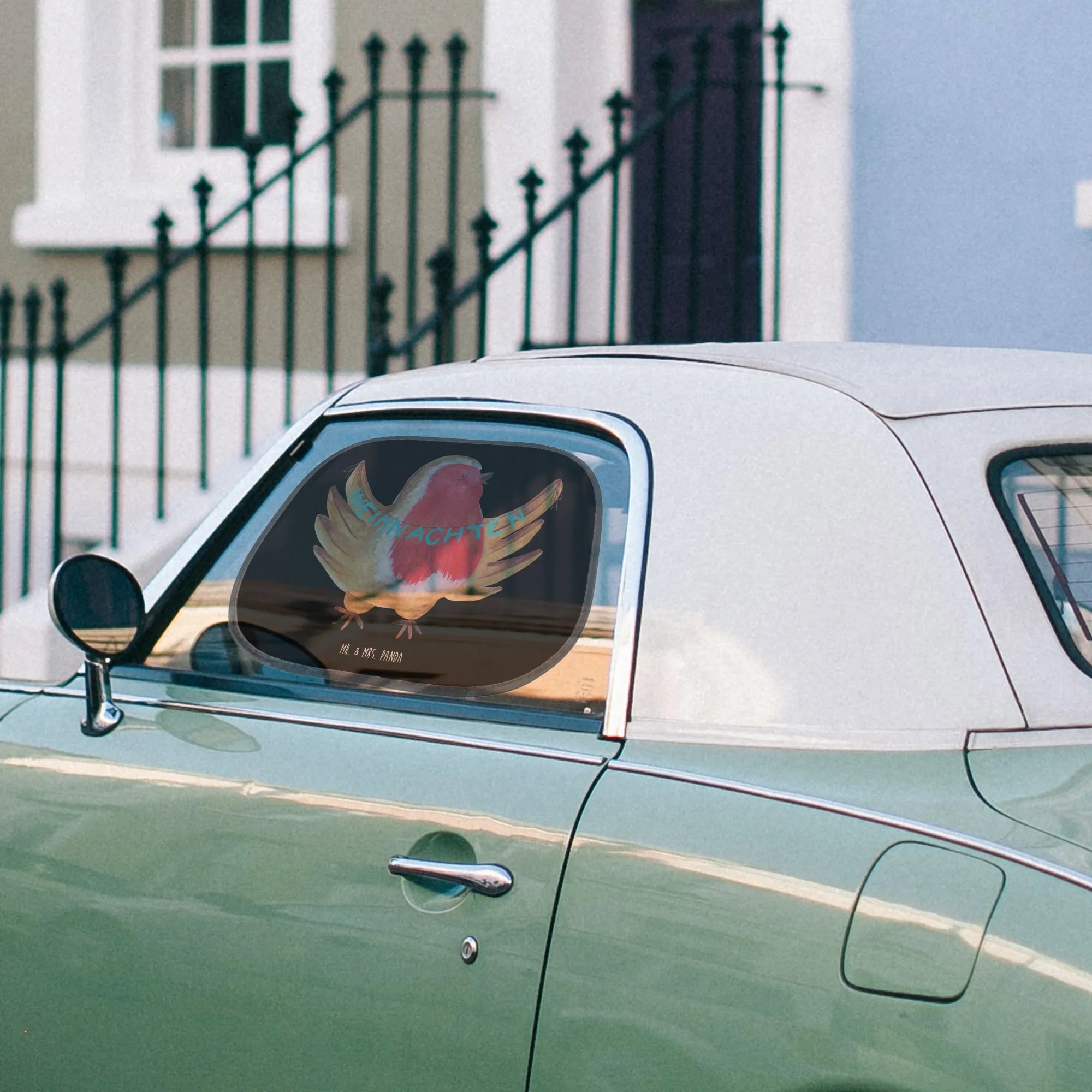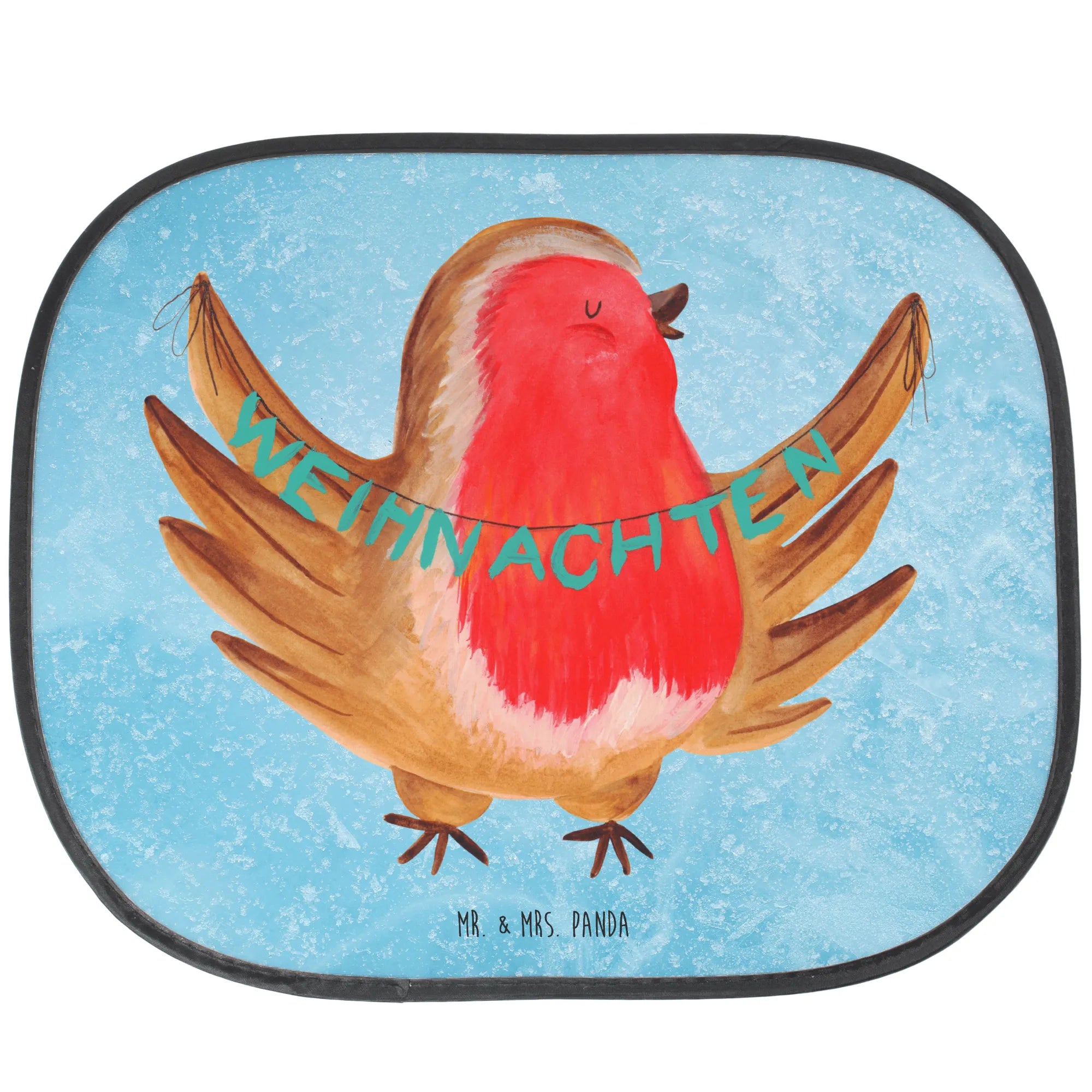 Car sun shade robin Christmas - with a saying - White