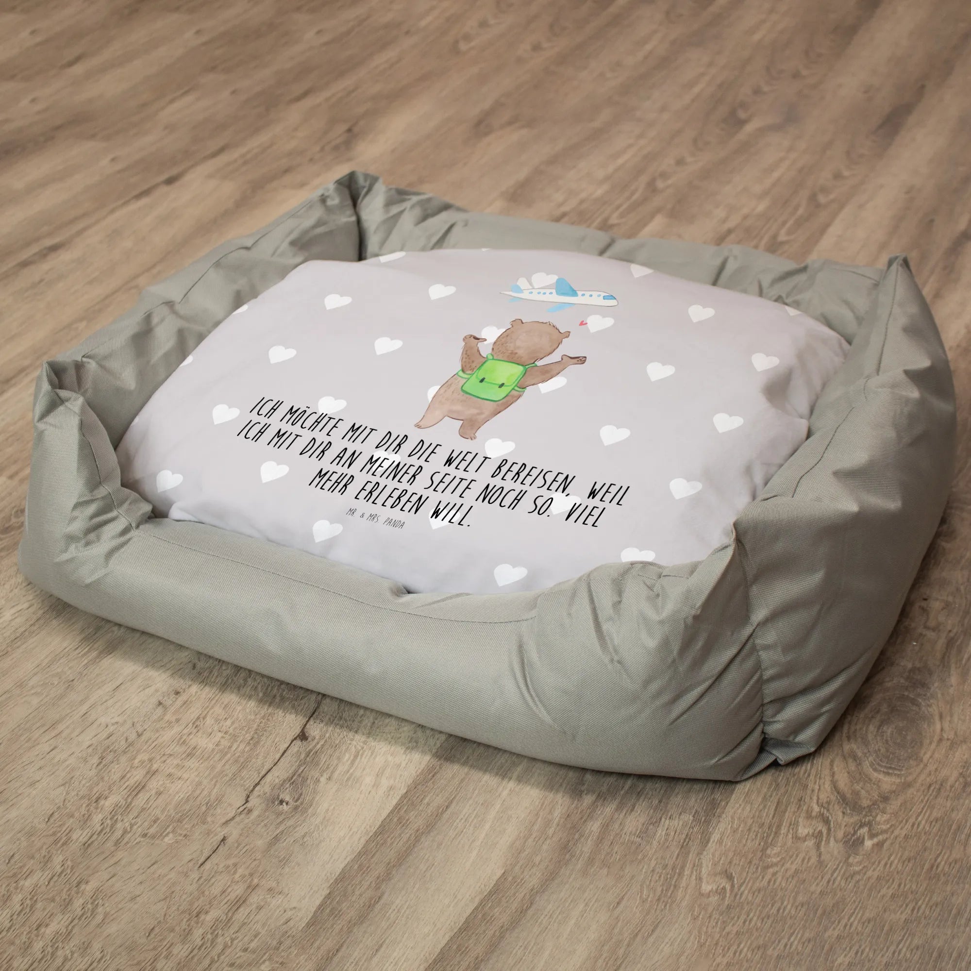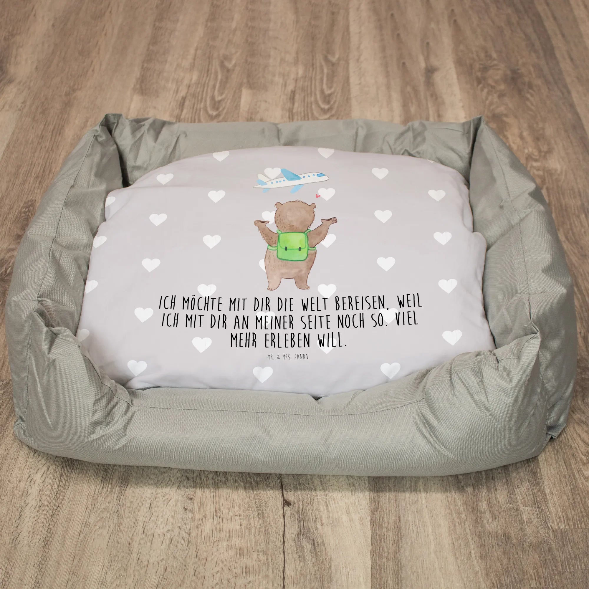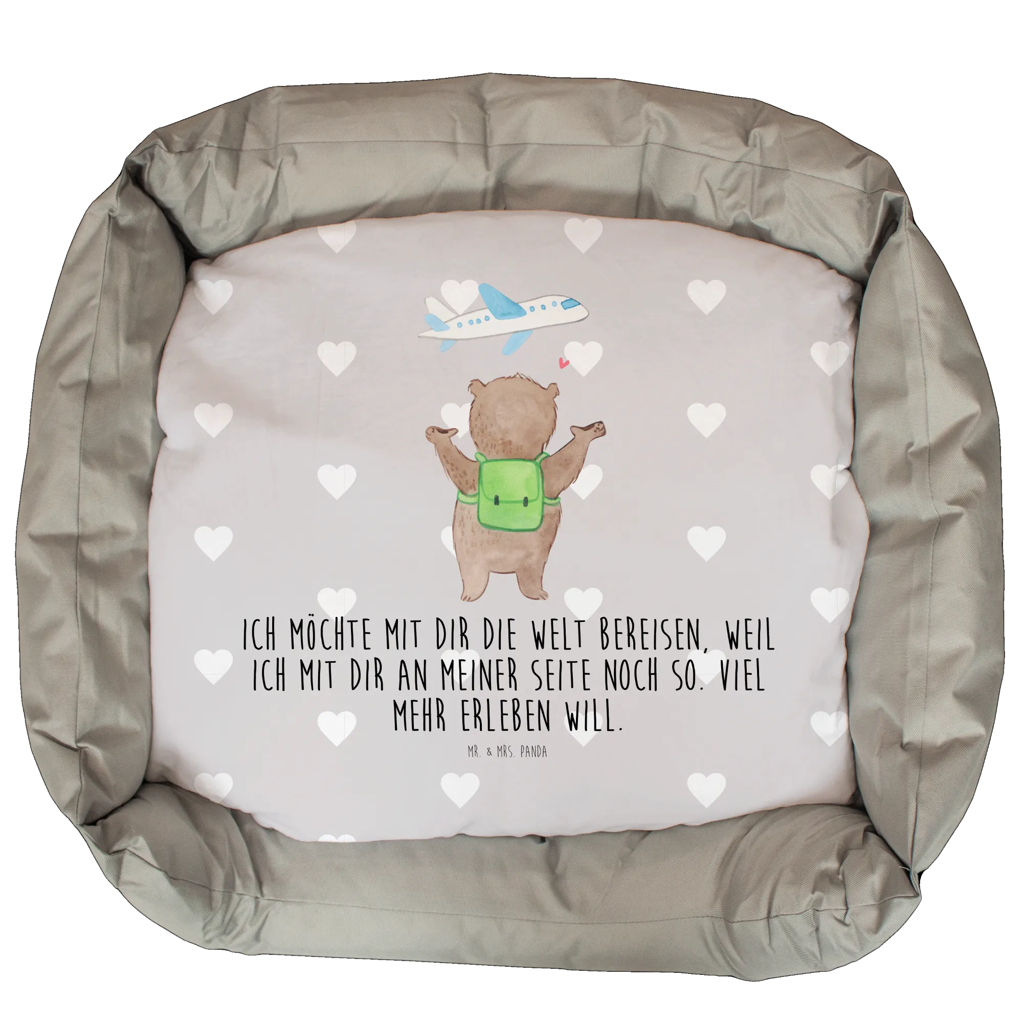 Imagine the delight of a dreamy bear, arms wide open, ready to embrace the vast world of adventure! This charming bear, with his green messenger bag, stands beneath a stylized airplane, his eyes sparkling with joy. Above him, a little red heart floats, perfectly capturing the sweet essence of exploration. The slogan, 'Ich möchte mit dir die Welt bereisen, weil ich mit dir an meiner Seite noch so viel mehr erleben will,' beautifully expresses the feeling of wanting to share every moment with your loved one. This motif serves as a perfect Valentine's Day gift for women, a loving anniversary token, or a heartfelt wedding anniversary party favor. Let this whimsical design inspire your romantic journeys together!