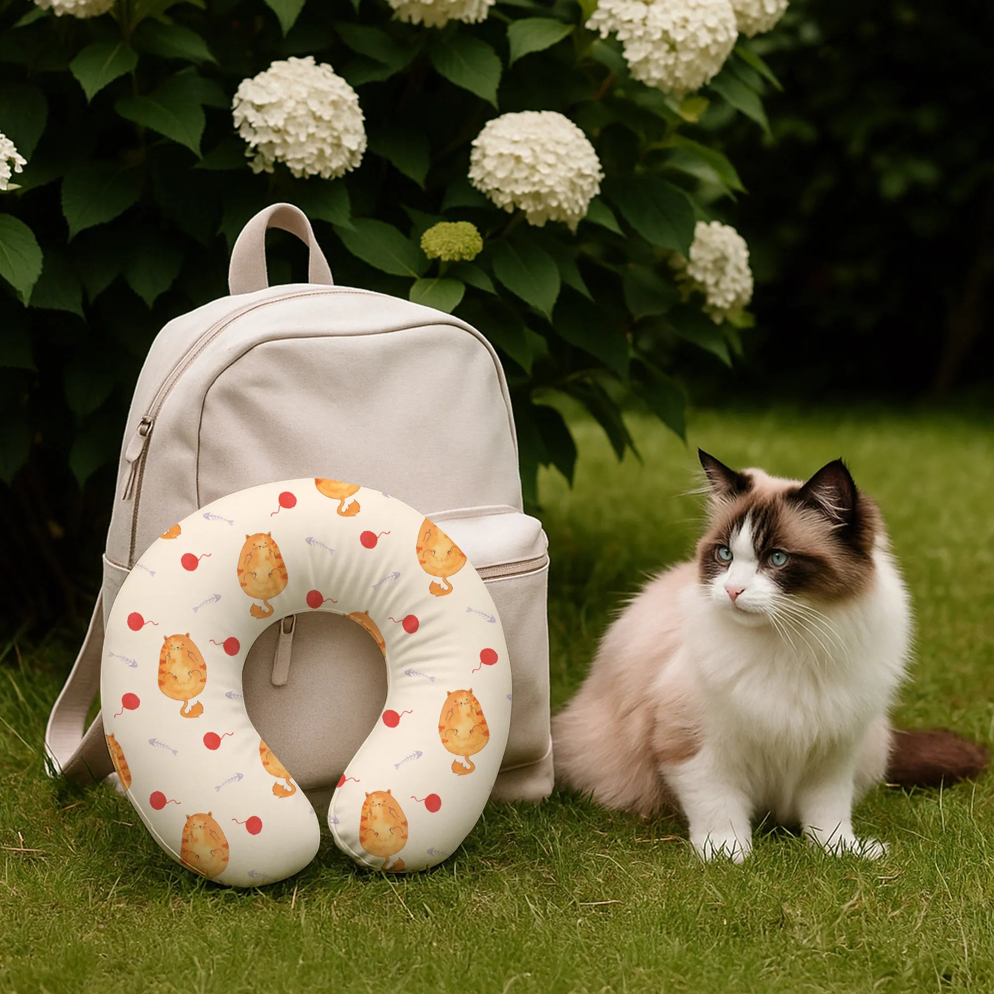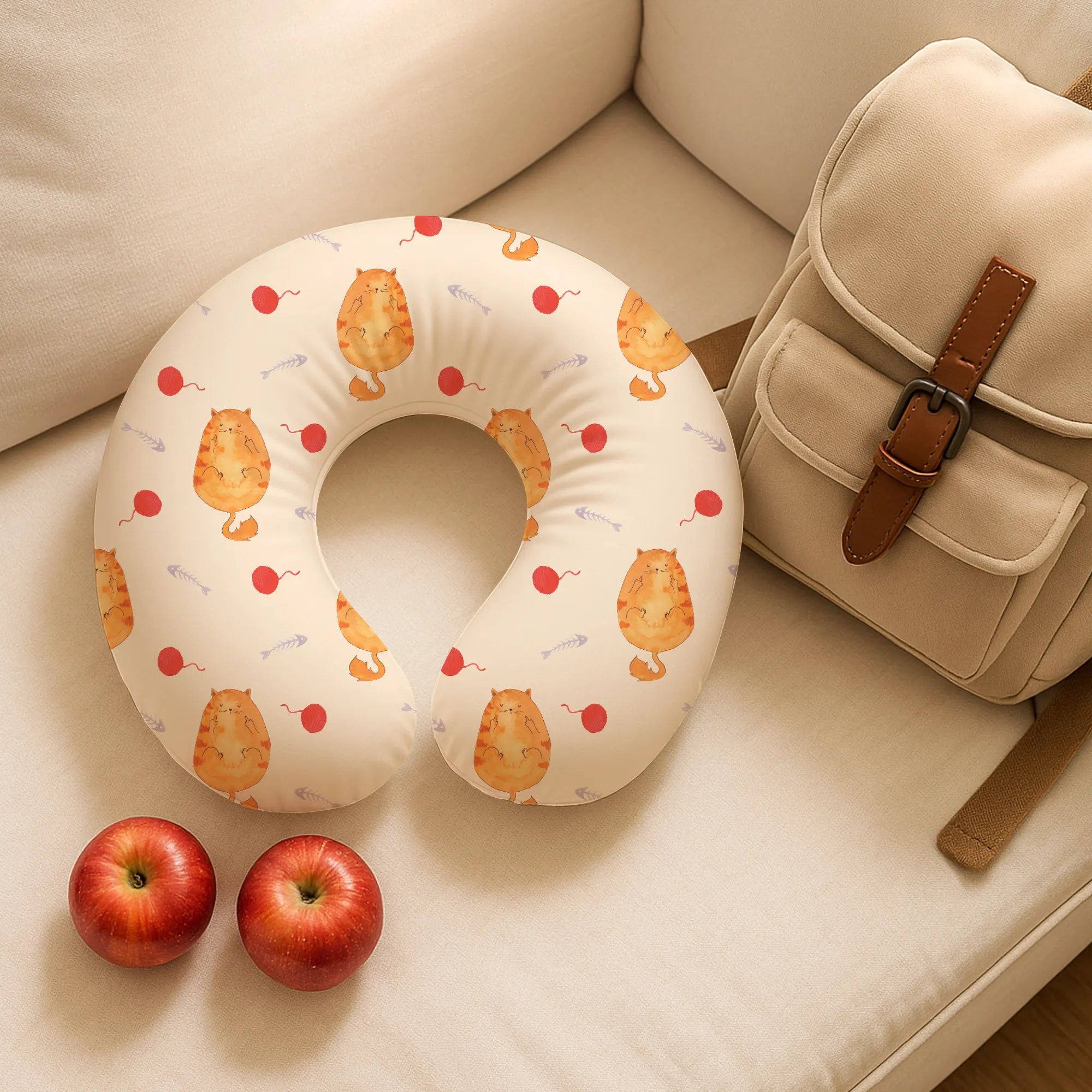 This unique neck pillow from Mr. & Mrs. Panda combines enchanting designs with soothing comfort. Printed with lovingly crafted motifs and patterns, it brings travel spirit and coziness together. The filling and cover are made from 100% plush velvet microfiber, feeling cuddly soft and providing a gentle touch on the skin. Ultra-light and compact, the pillow fits into any backpack or suitcase and accompanies you on planes, trains, or in the car. It is not customizable and is therefore ready to travel immediately. Dimensions: 330 x 330 x 100 mm. Weight: 215 g/m². Special feature: made to order and hand-sewn. A wonderful gift for frequent flyers. Care instructions: Hand wash recommended; alternatively machine wash up to 30°C on a low spin, do not use bleach, do not wring, reshape gently and dry flat.