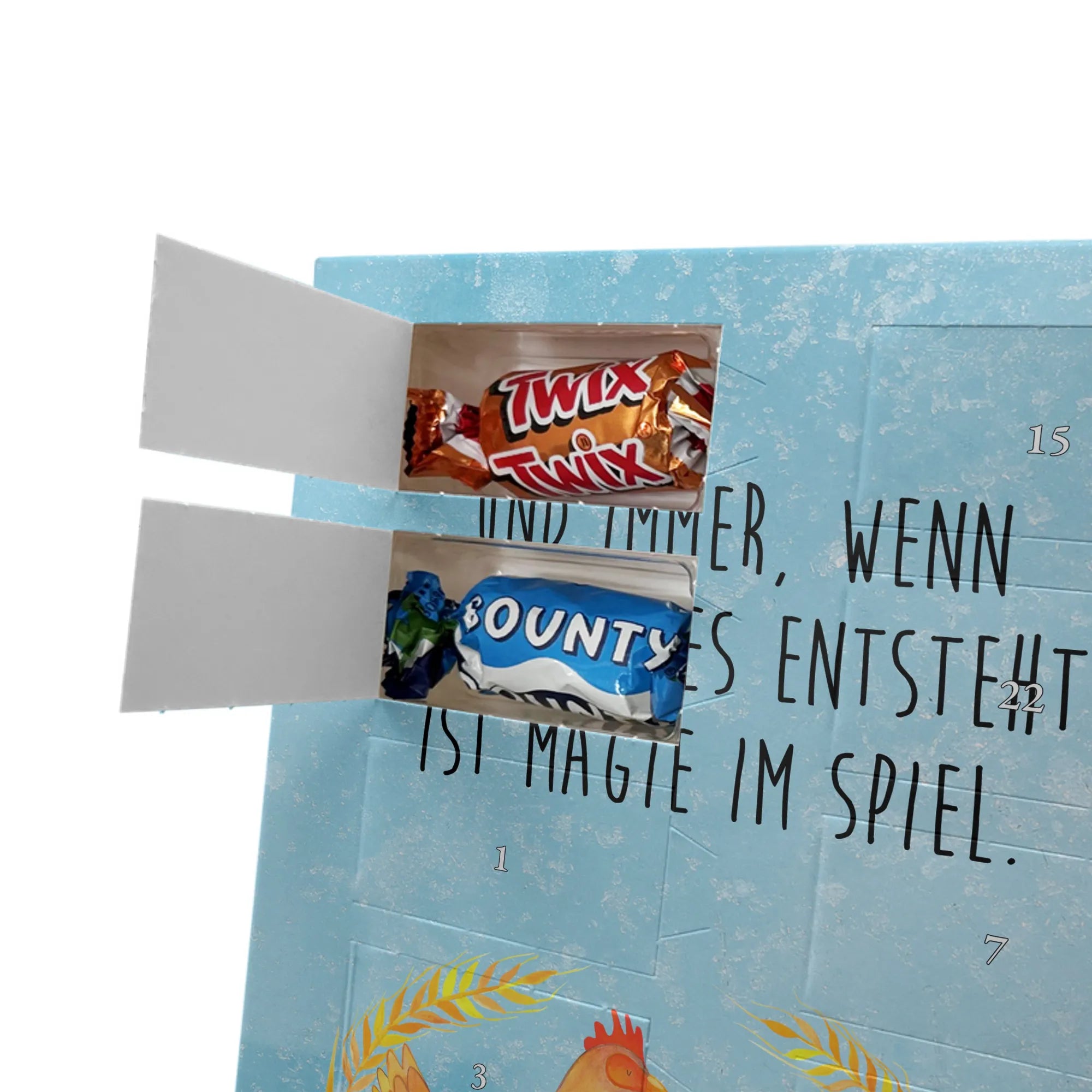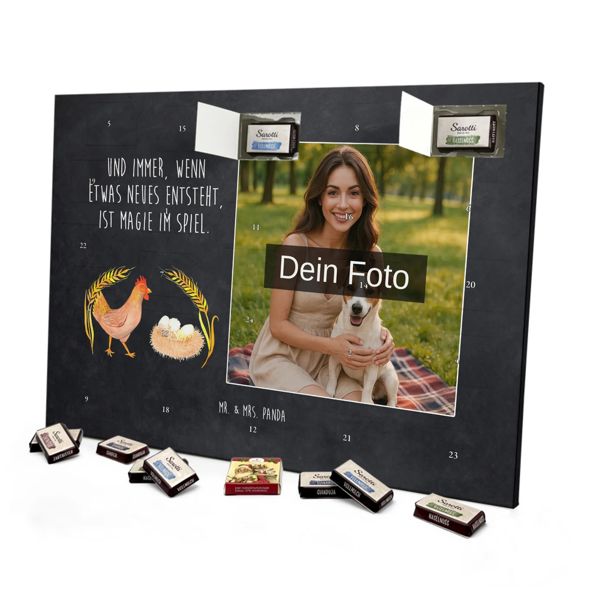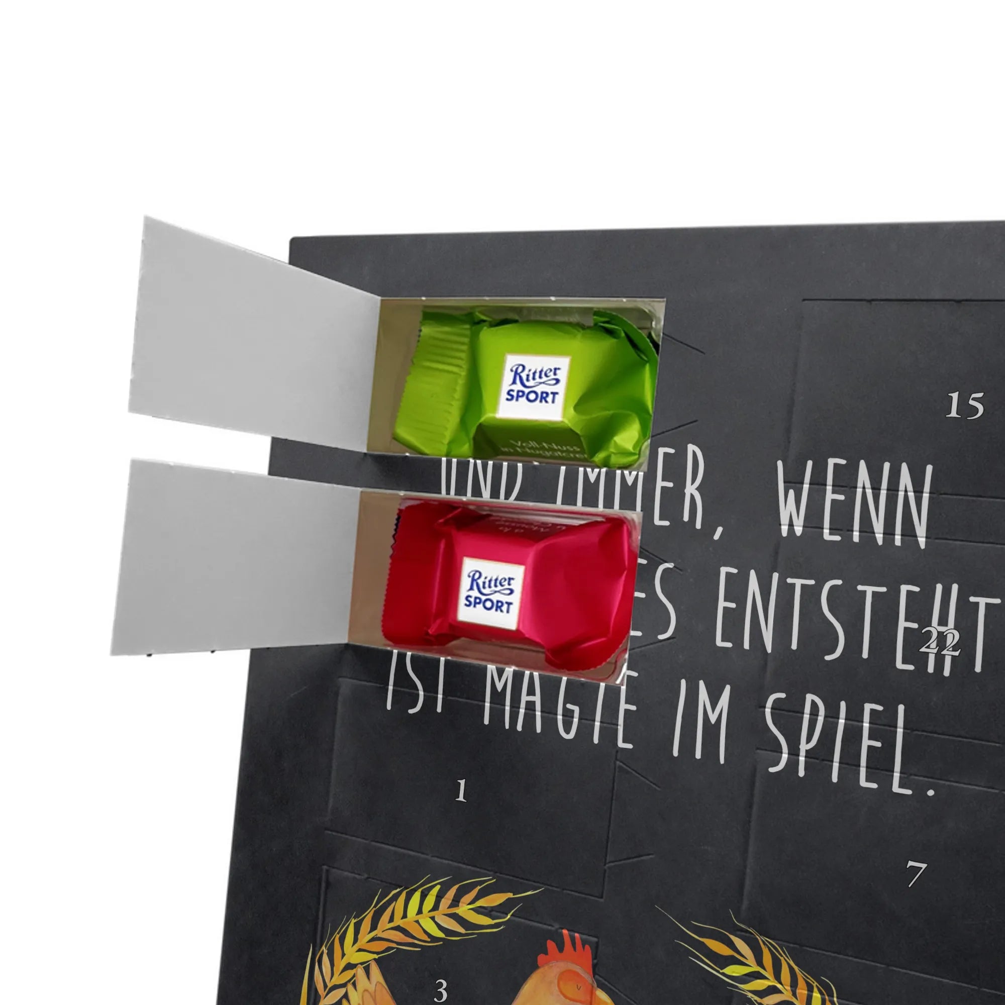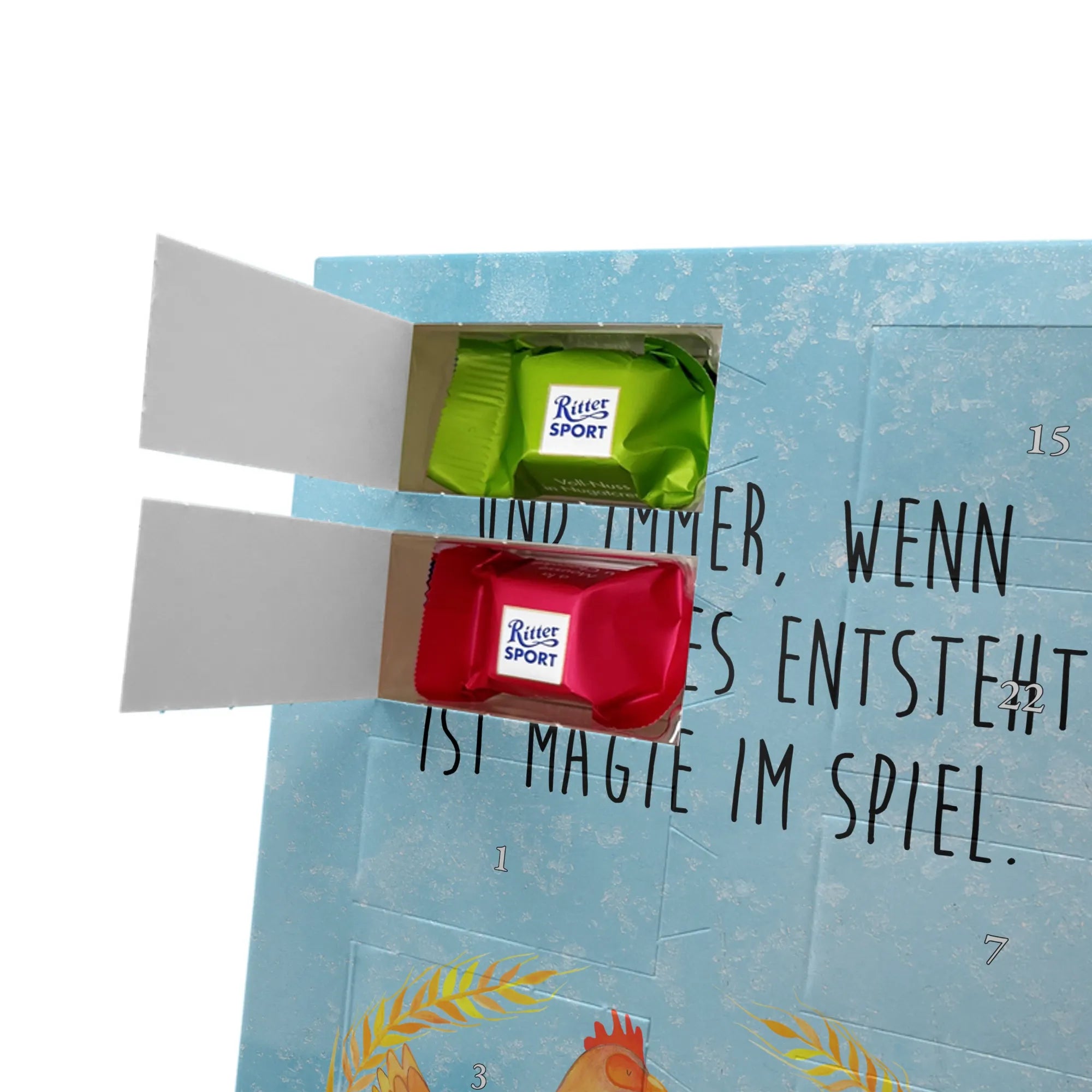 Amidst the golden fields and vibrant flowers of the countryside, our delightful chicken struts confidently, a picture of charm and pride. This motif serves as a tribute to the beauty of country life, reflecting the joys of nurturing and growth. The saying, "Und immer, wenn etwas neues entsteht, ist Magie im Spiel," captures the spirit of transformation and rebirth that resonates throughout nature. Every time that feathery friend lays an egg, it symbolizes hope, potential, and that sprinkle of magic that life is made of. This design inspires motivation, encouraging everyone to embrace their unique journeys and recognize the serendipity that often accompanies new beginnings. Whether it's a bustling farm or a quiet backyard, the magic of life unfolds gently, nudging us to uncover the wonder that awaits within each sunrise.