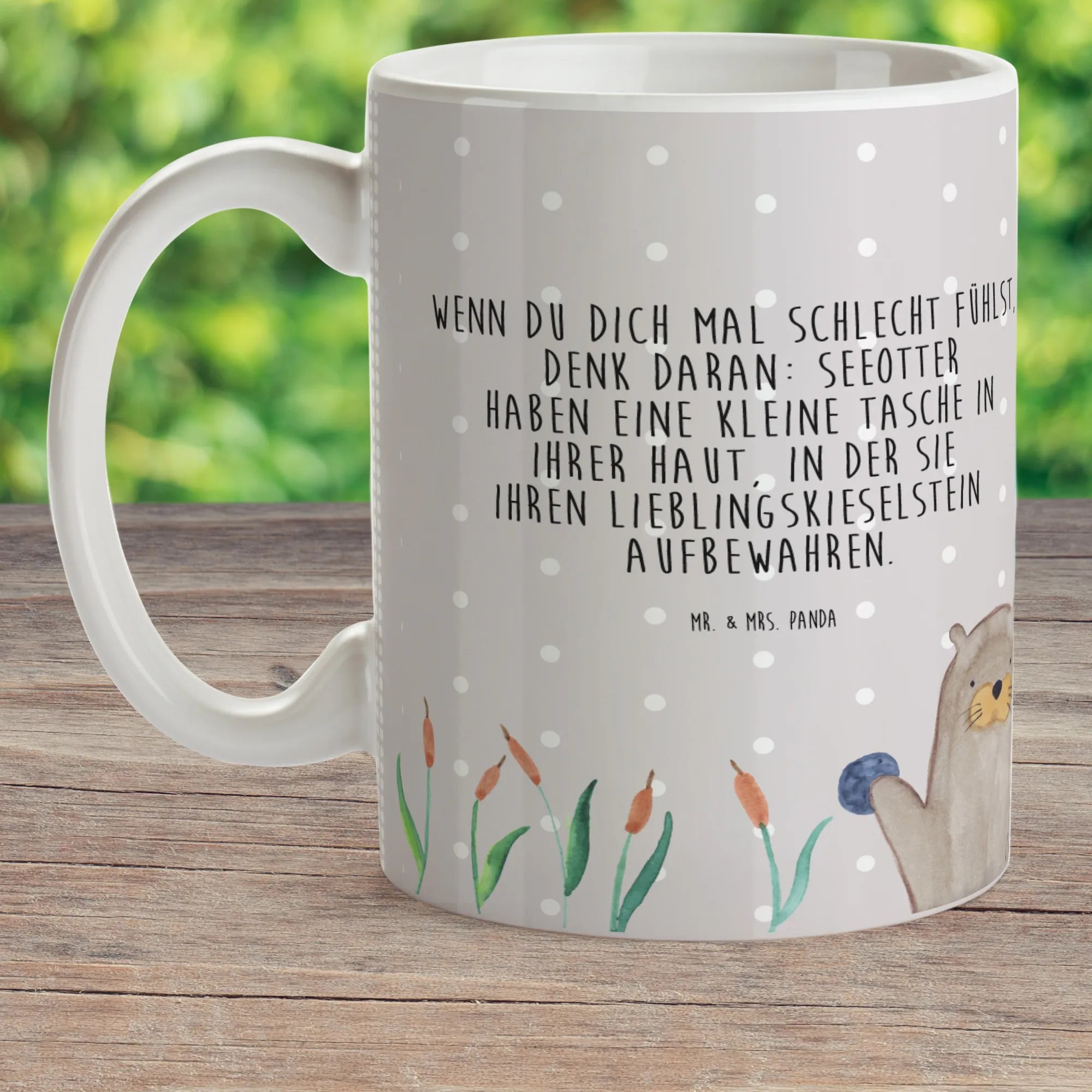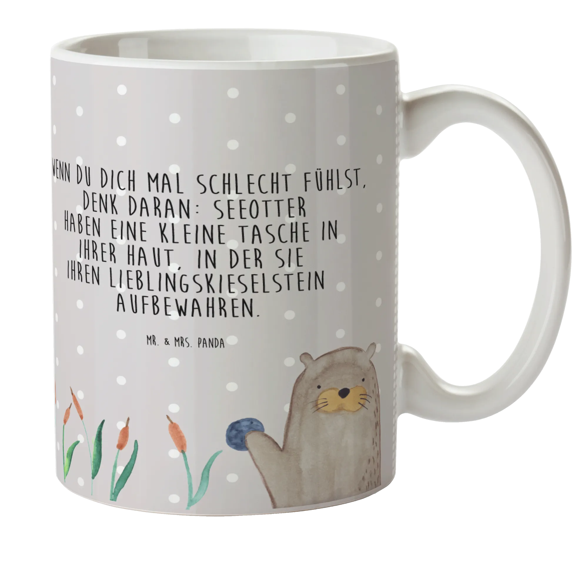 Every sip from this mug is bound to make your child feel like they are in their very own underwater paradise, thanks to its charming design of a cheerful otter holding its favorite pebble. It’s an artistic creation, entirely drawn by the talented Mrs. Panda with love and detail, bringing life to the playful essence of these wonderful water mammals. Each mug has a glossy finish that beautifully displays the vibrant motif of this lovable creature, ensuring it stands out whether it's used at home, at school, or during family camping trips. Its design is not just cute; the motto of 'If you ever feel down, just remember: sea otters have a little pocket in their skin where they keep their favorite pebble' imparts a little wisdom and joy to each drink!