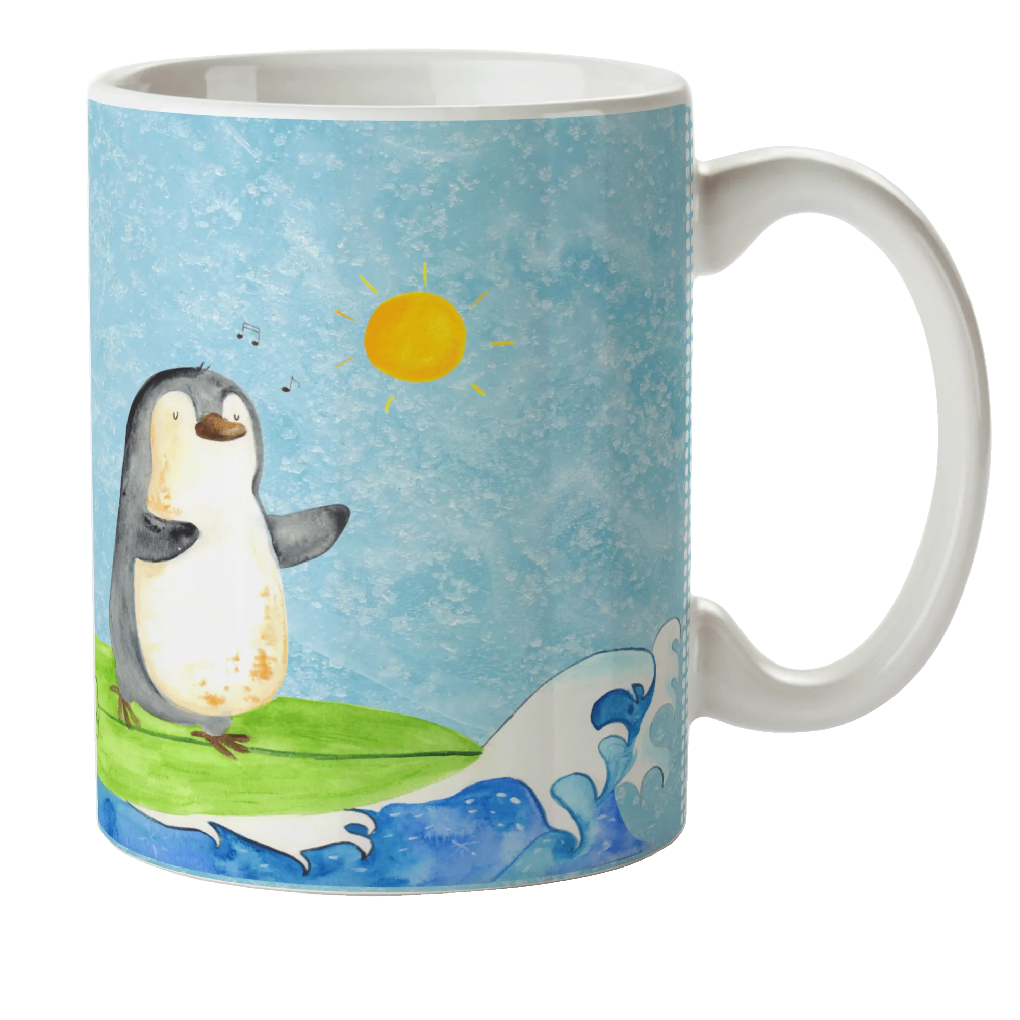 Imagine your child’s face lighting up every time they sip from this exquisite Penguin Surfer cup. Featuring an adorable little penguin riding the waves, this mug captures the essence of fun, adventure, and summer days spent at the beach. Whether it's a refreshing juice, hot cocoa, or even a warm cup of milk, this mug makes every sip a delightful experience.
