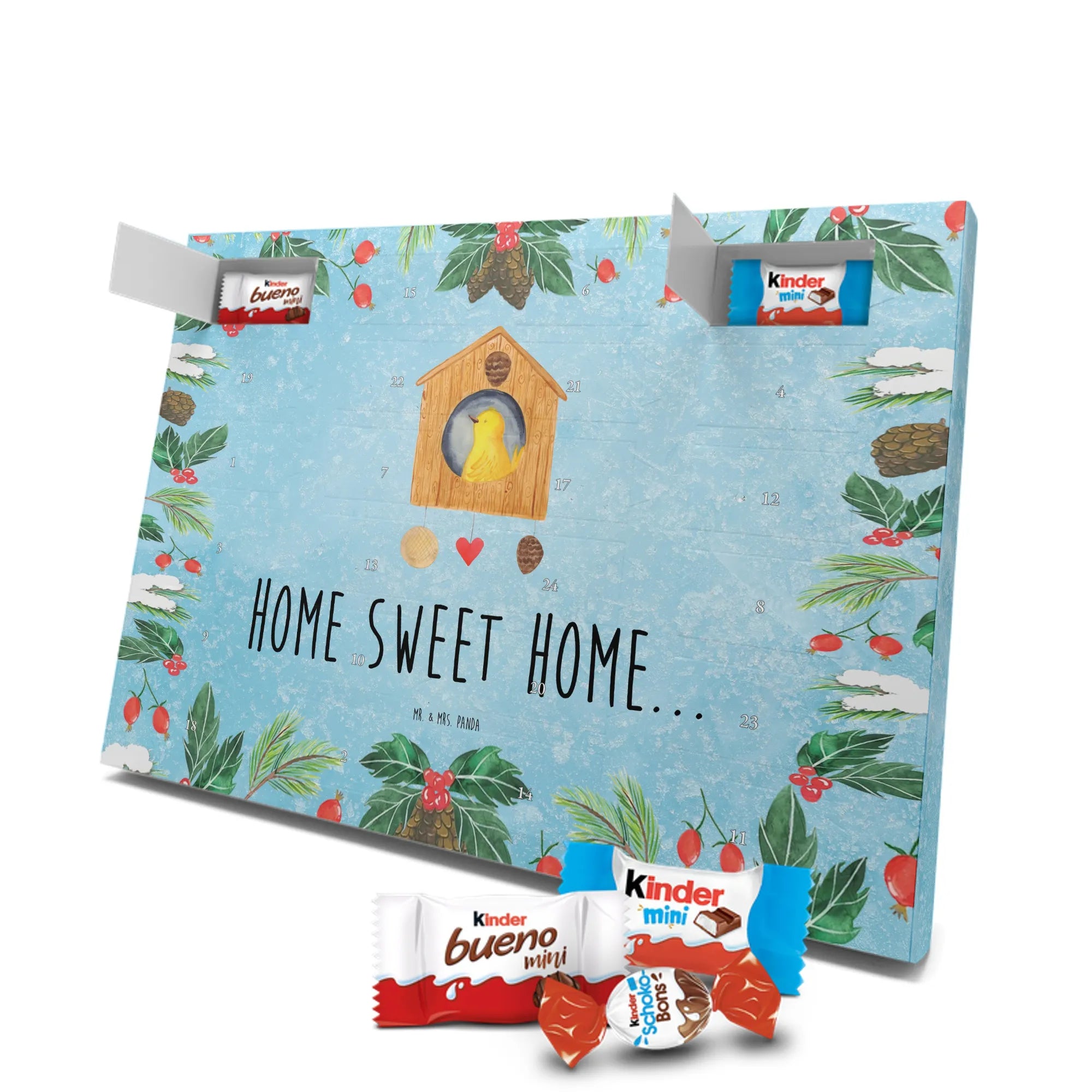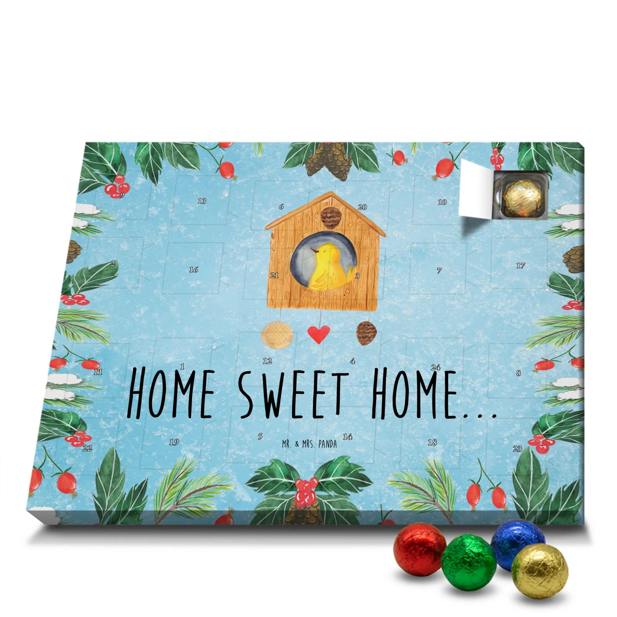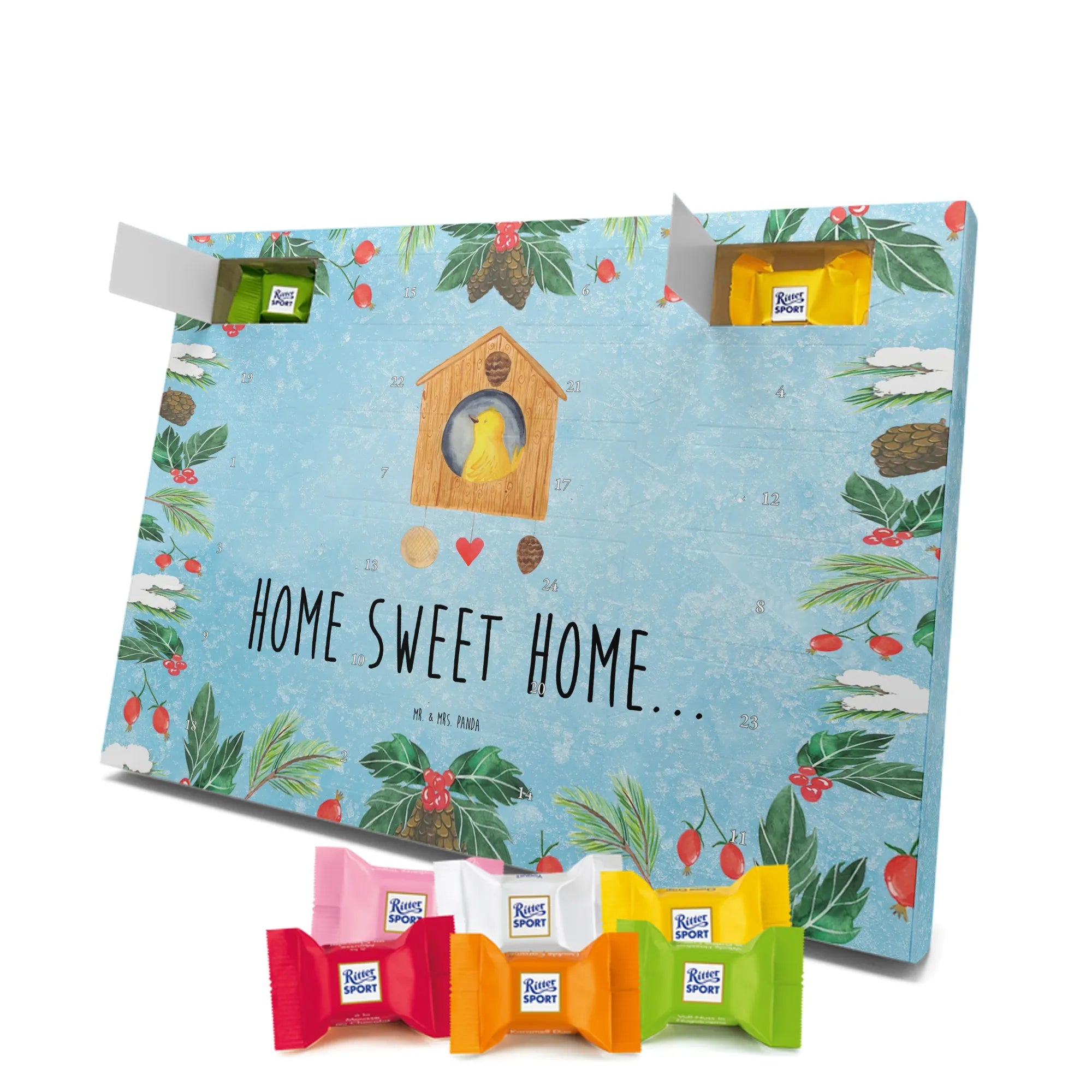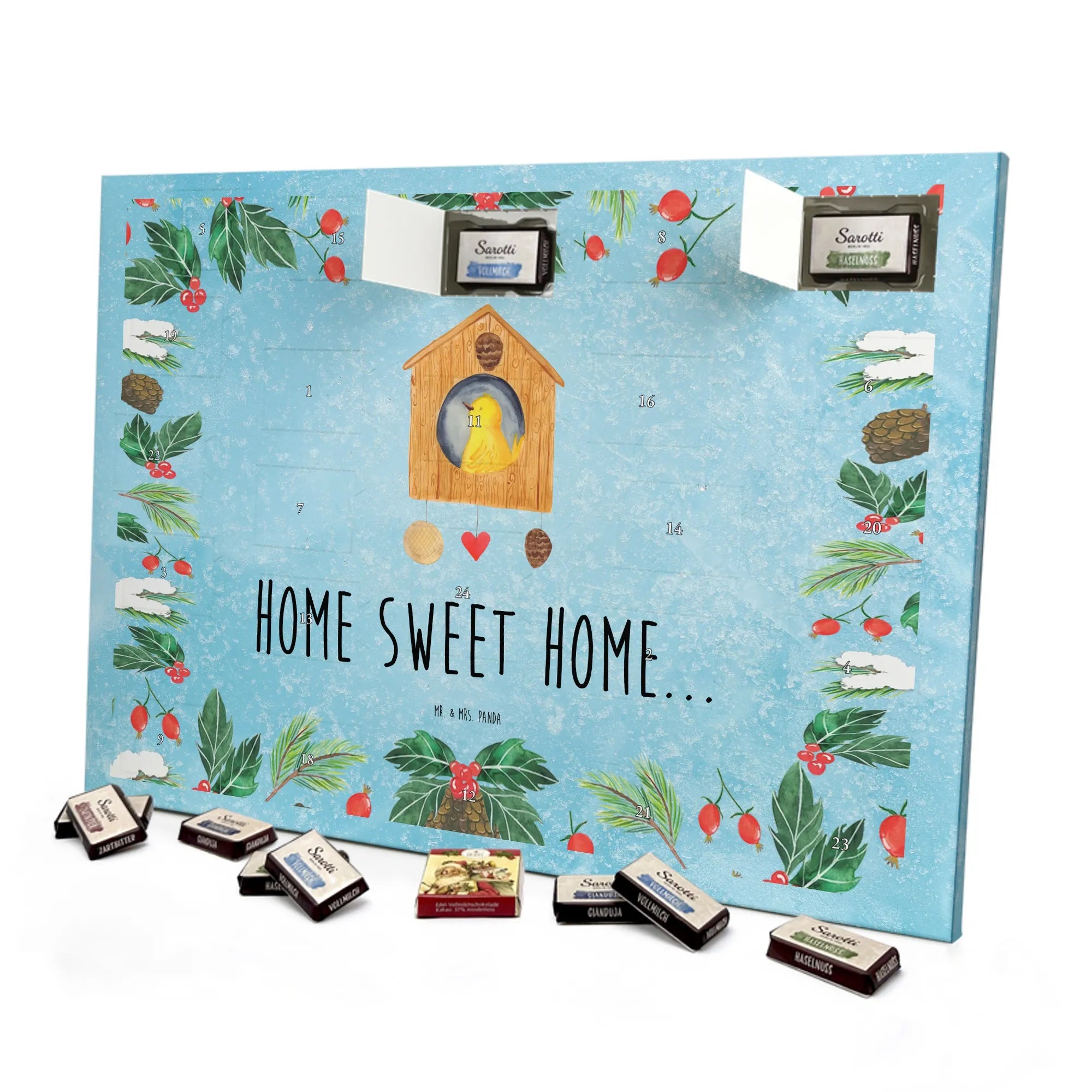Chocolate advent calendar birdhouse Home - Classic - with saying - Ice Blue