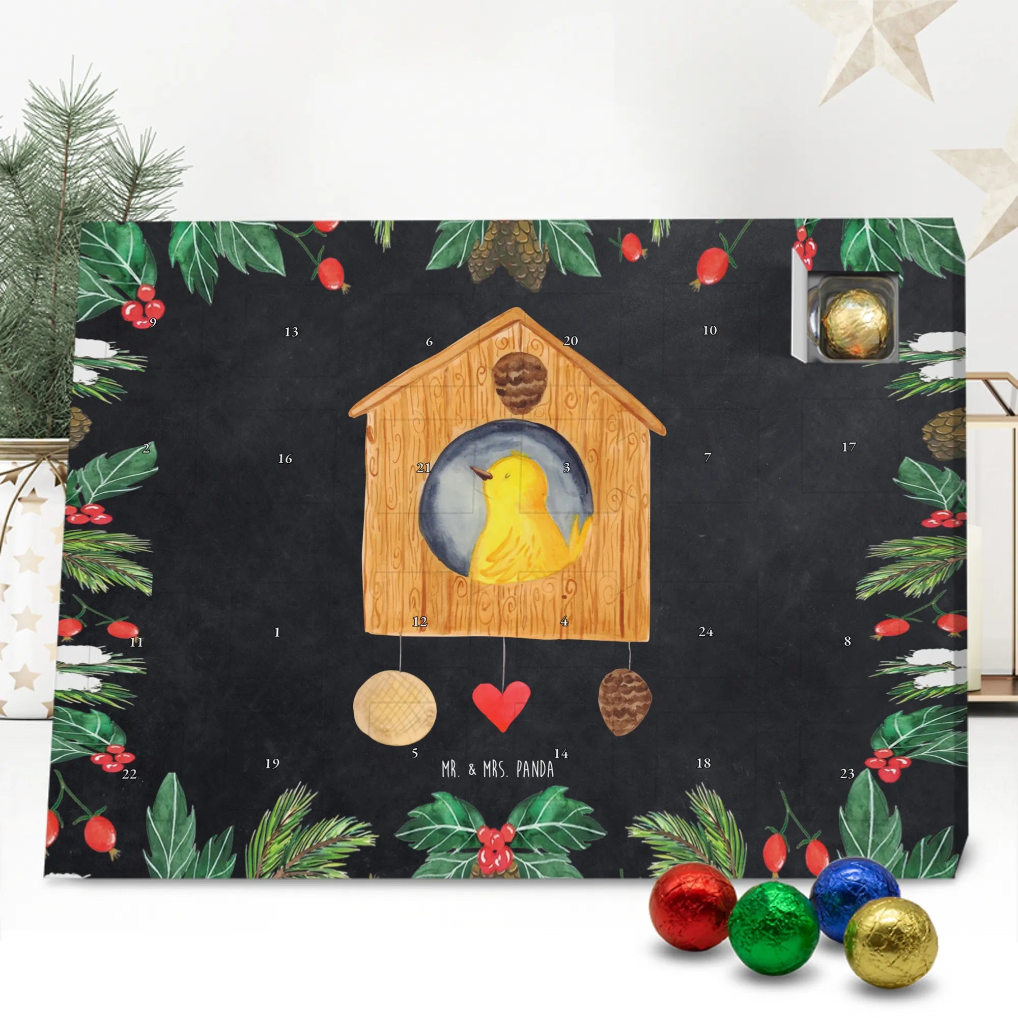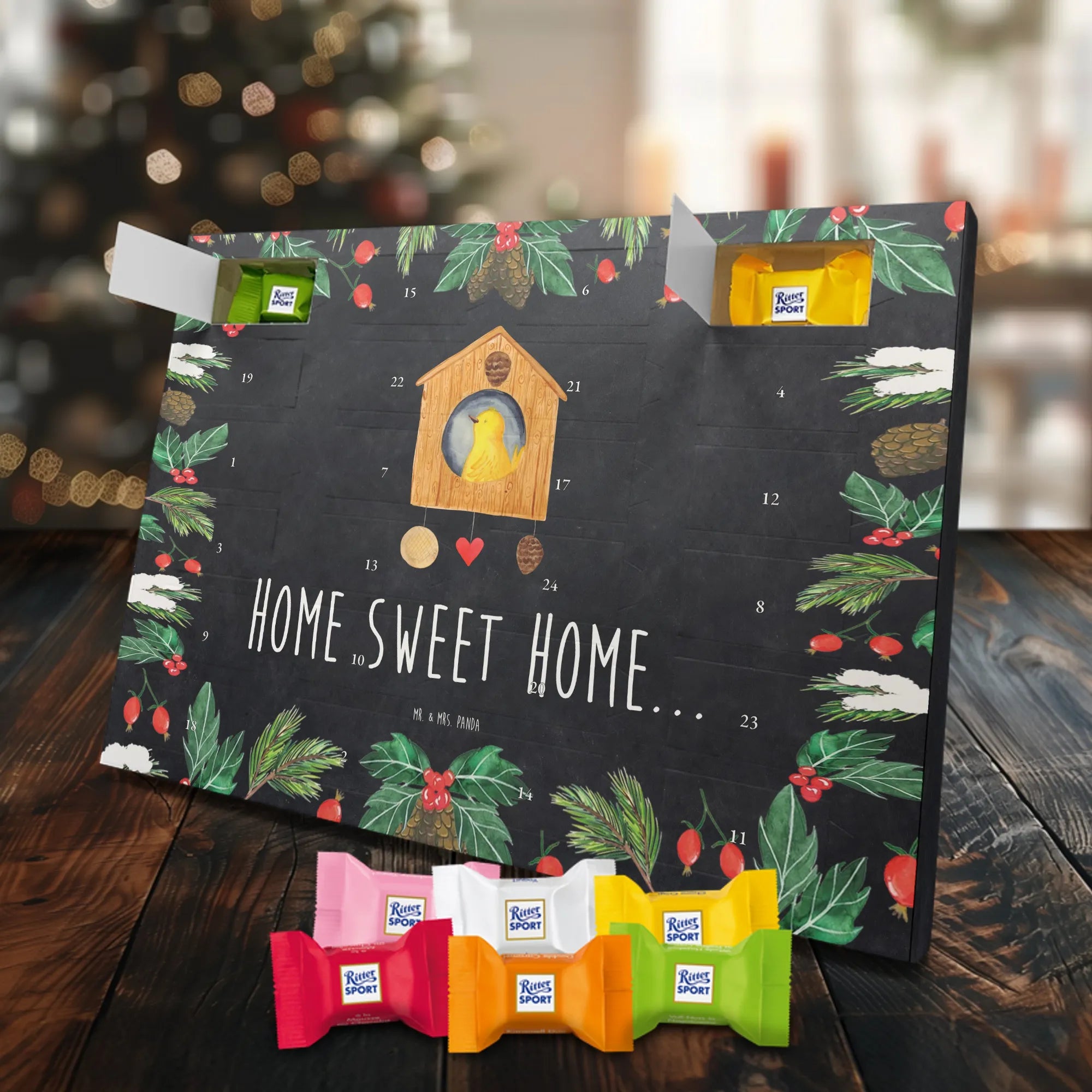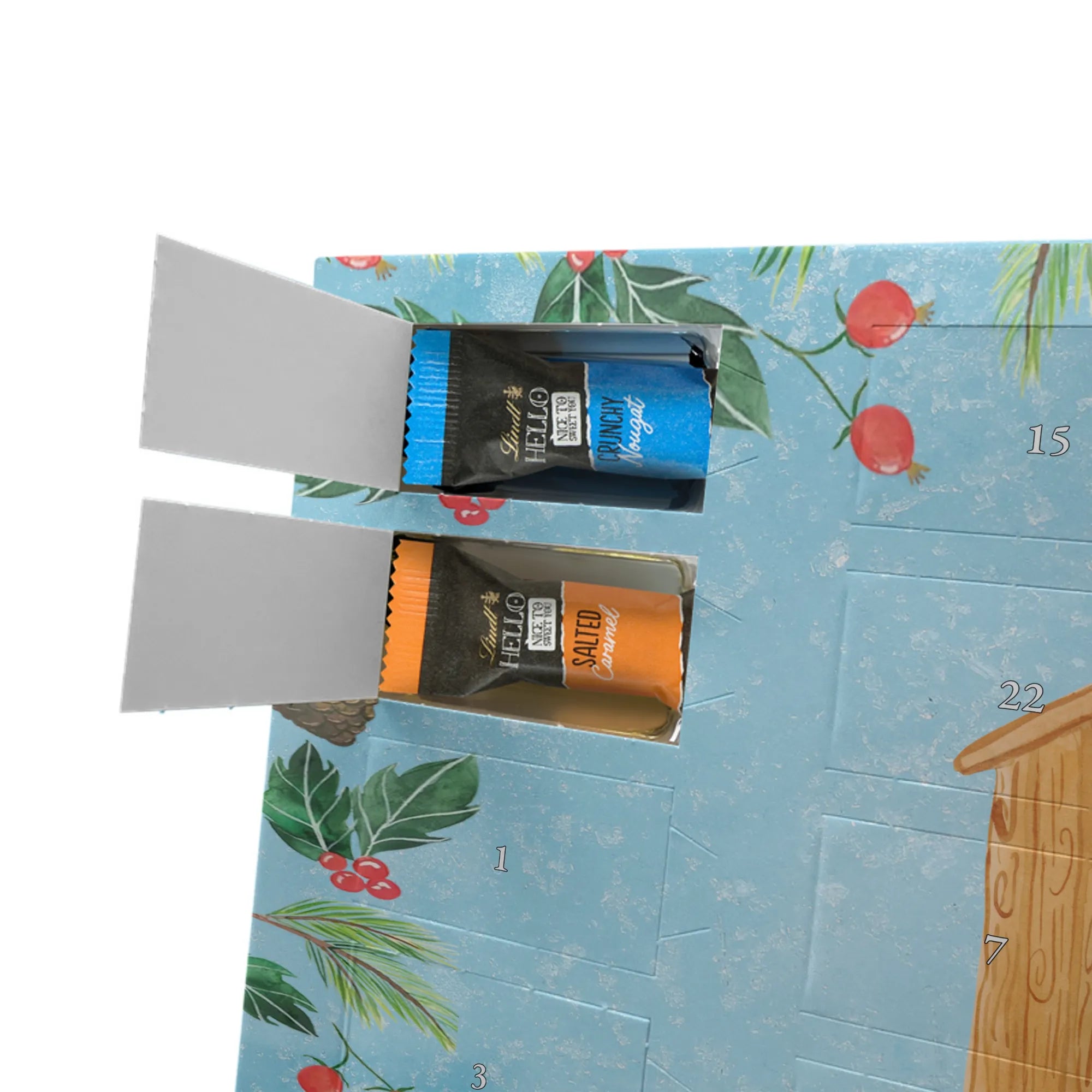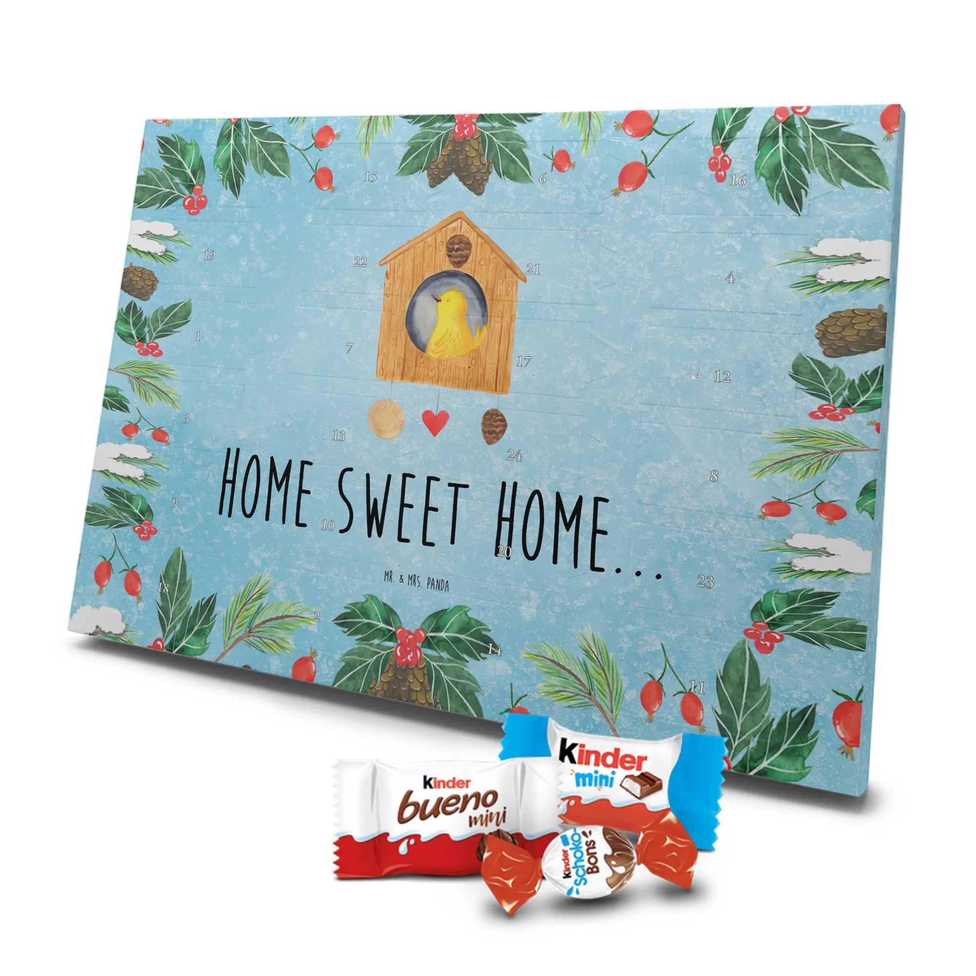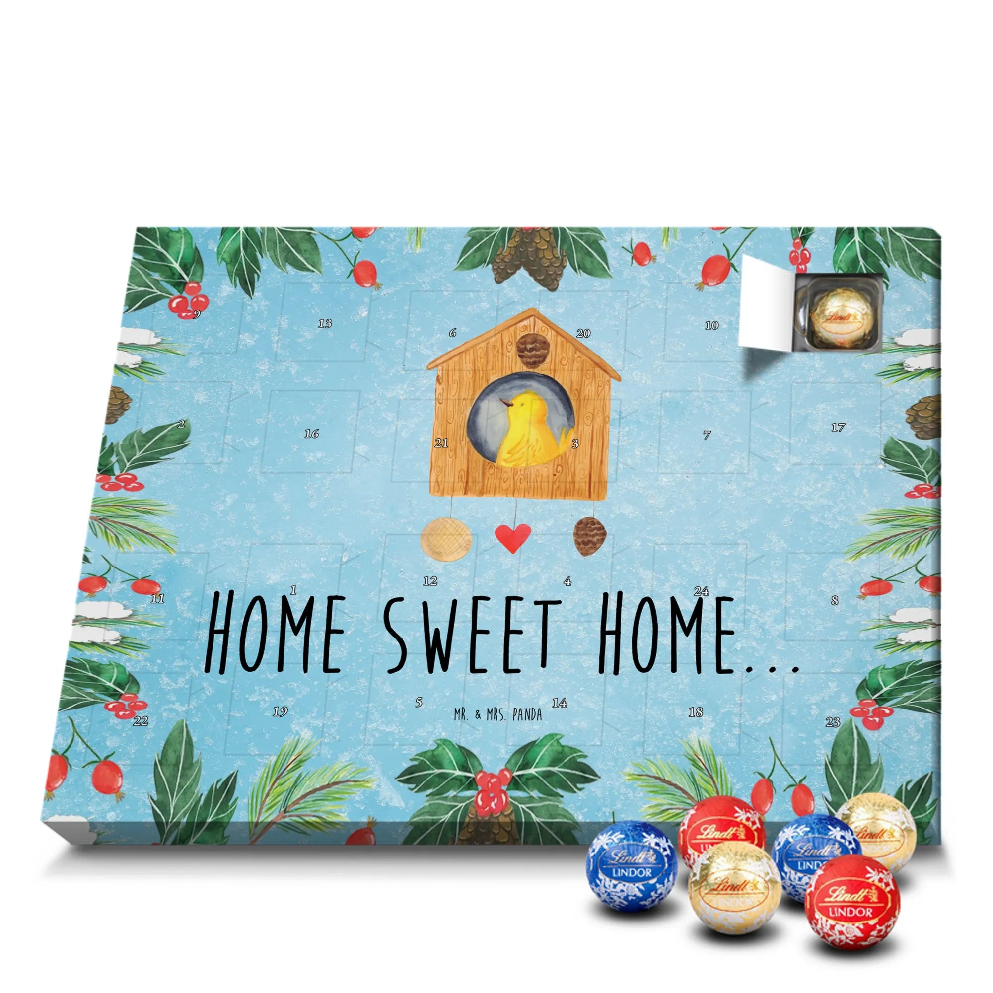 Chocolate advent calendar birdhouse Home - Classic - with saying - Ice Blue