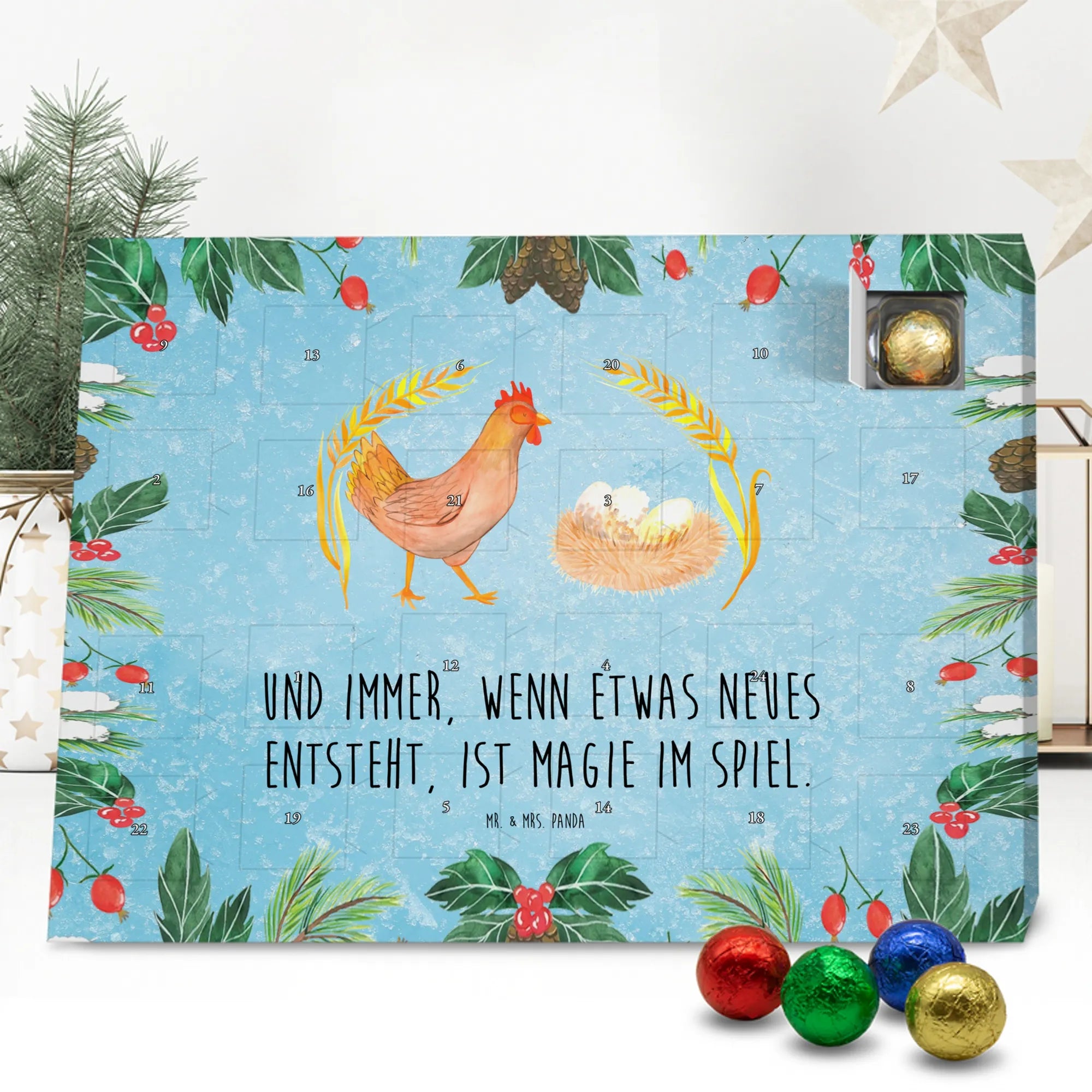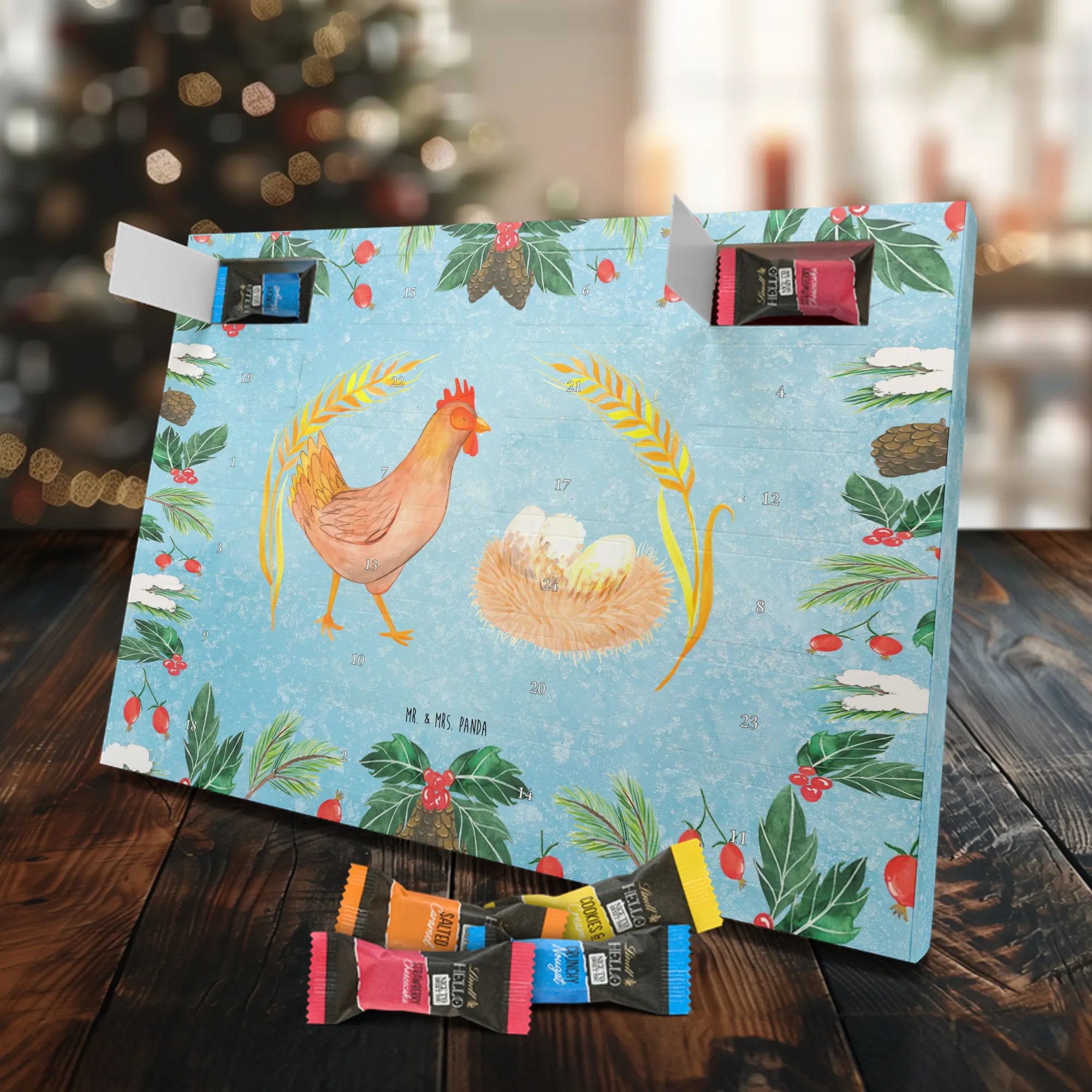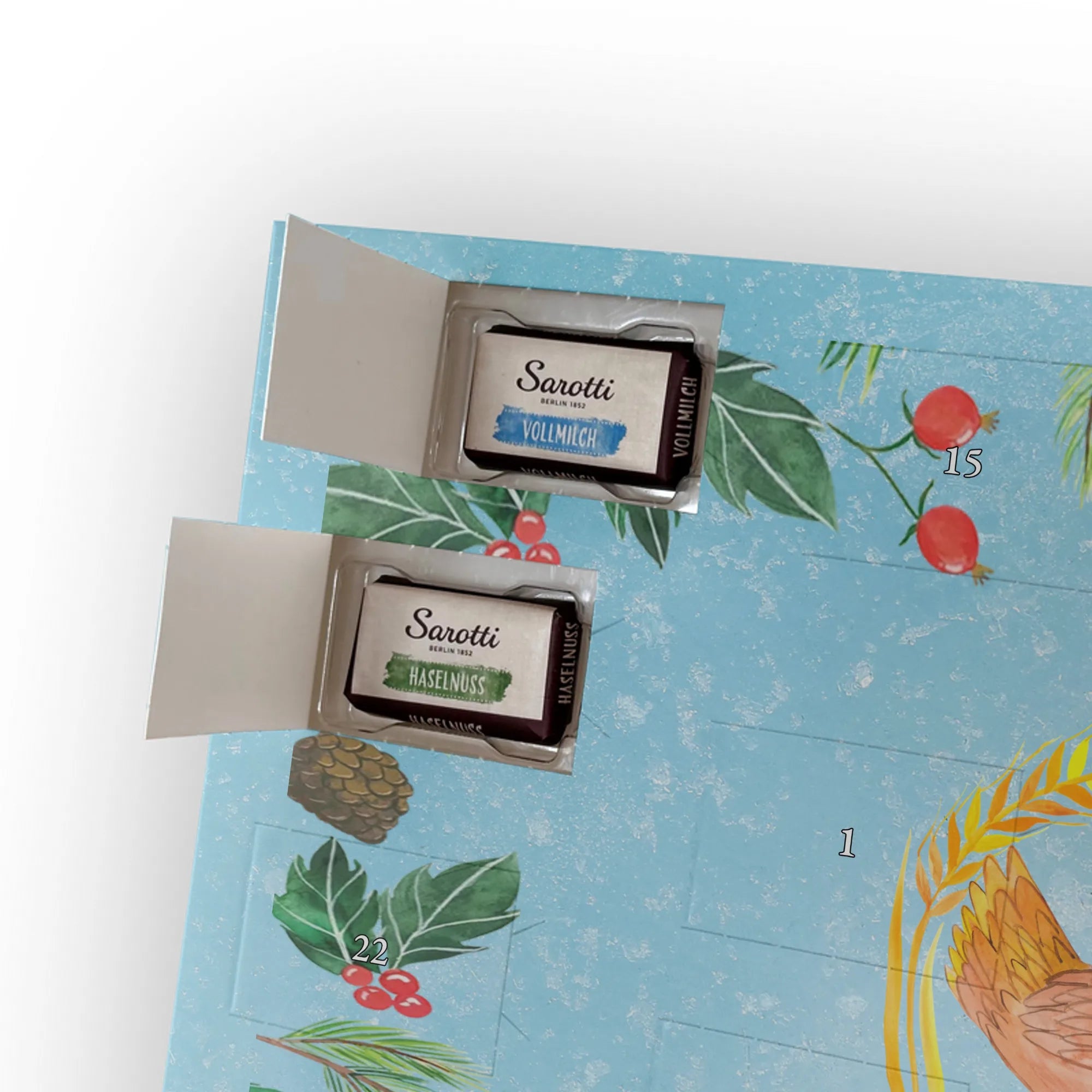 Chocolate advent calendar Chicken Proud - Classic - with saying - Ice Blue