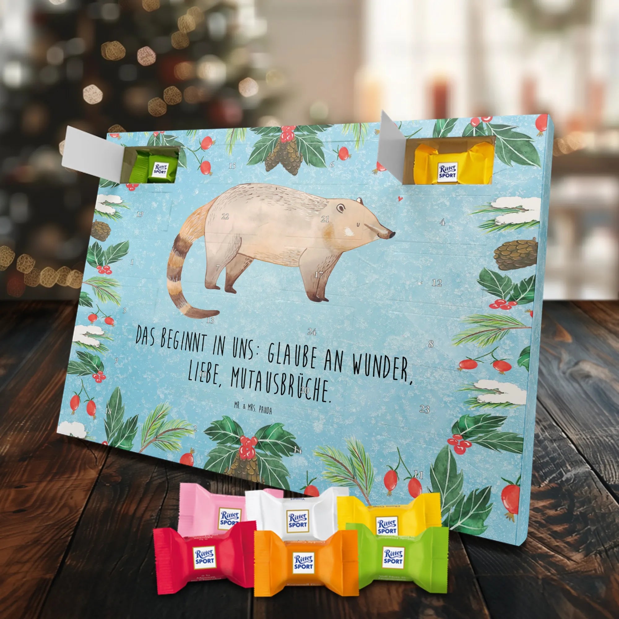 Chocolate advent calendar Coati - Classic - with saying - Ice Blue