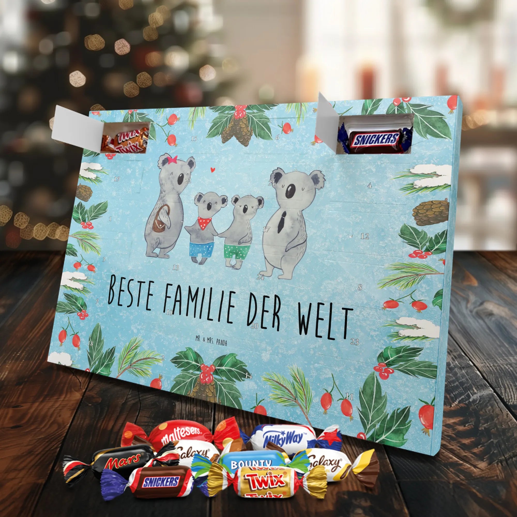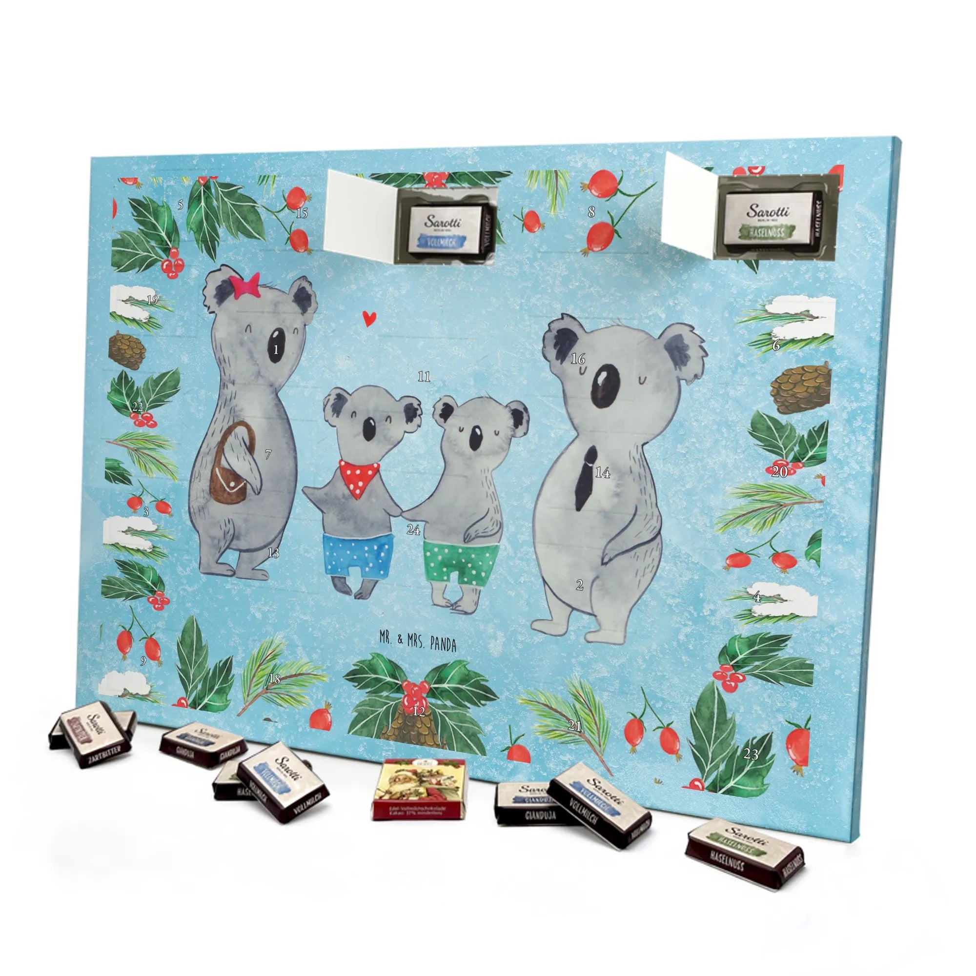 Chocolate advent calendar Koala family with two kids - Classic - with saying - Ice Blue