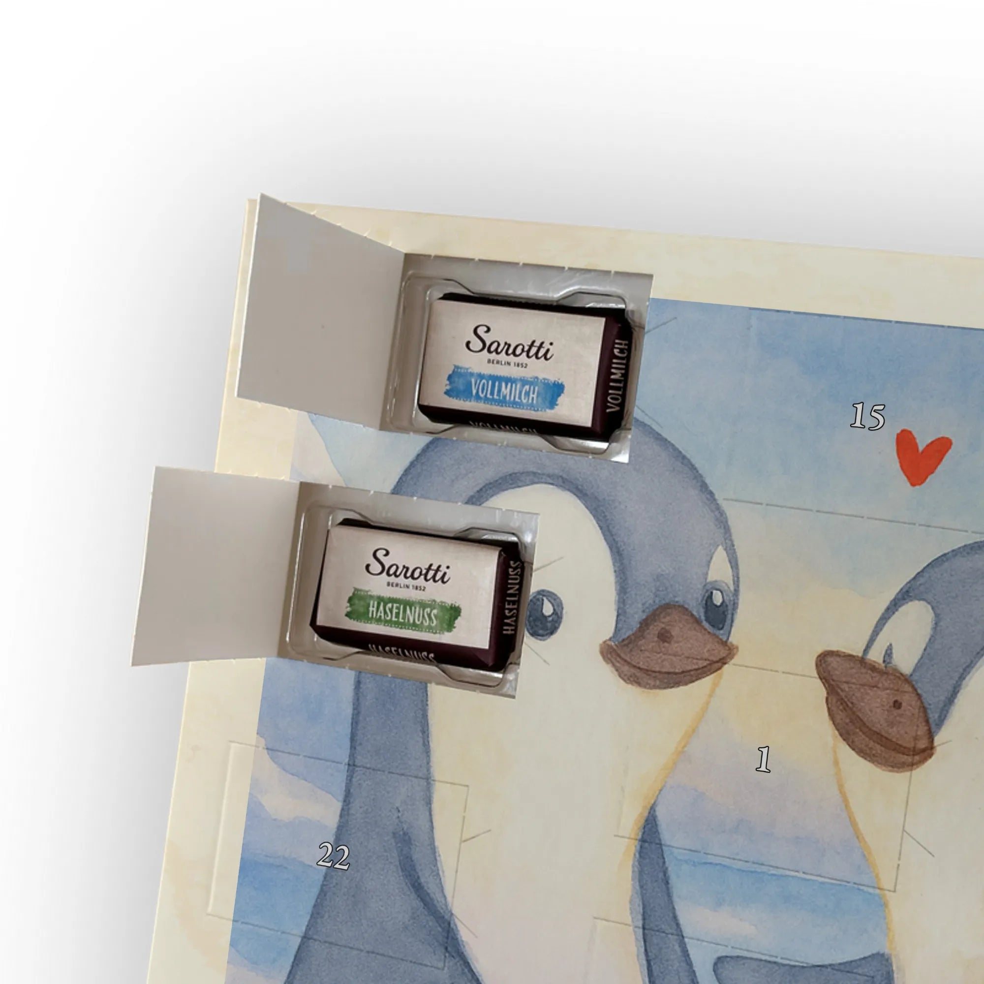 Schoko Adventskalender „Pinguine trösten“ – Ein Liebesgeschenk, das von Herzen kommt.