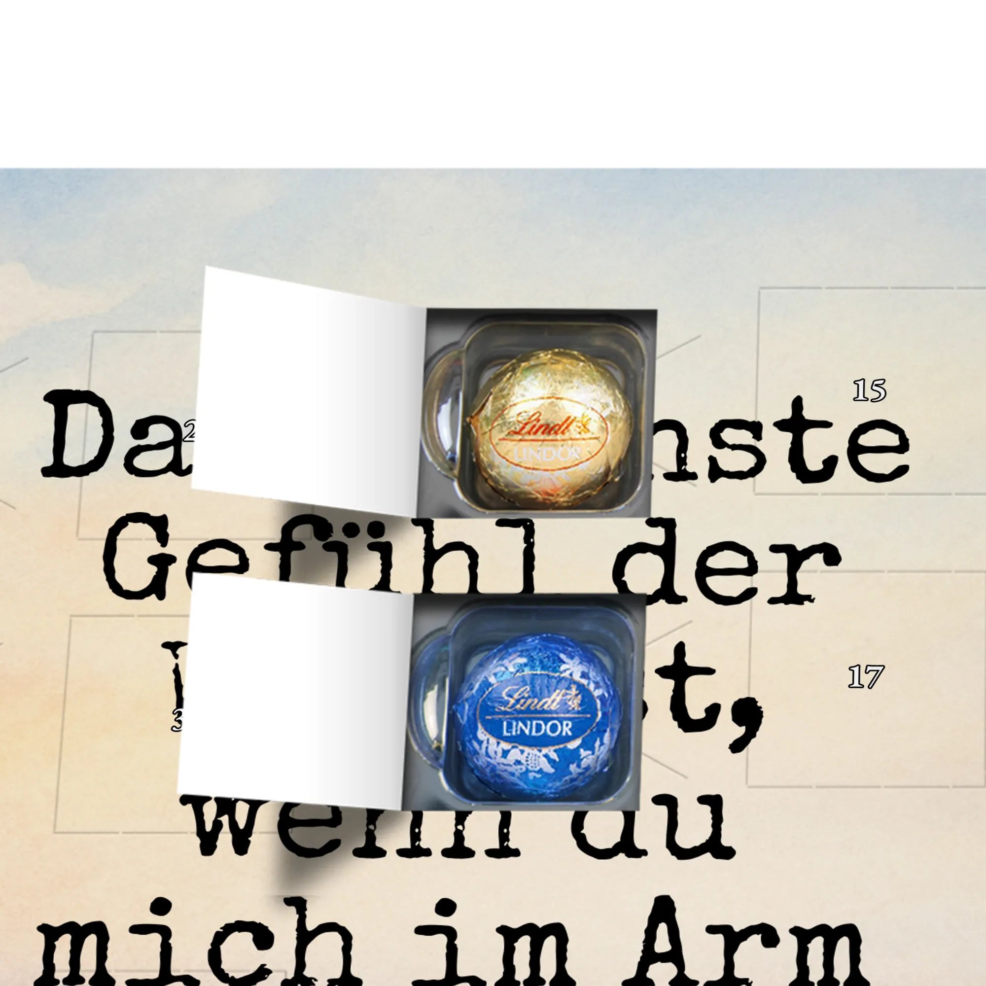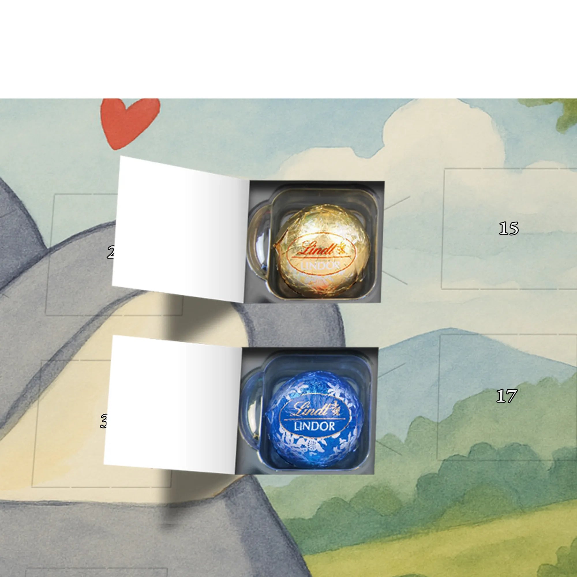 Chocolate advent calendar penguins Cuddle Design - Lindt LINDOR - with saying