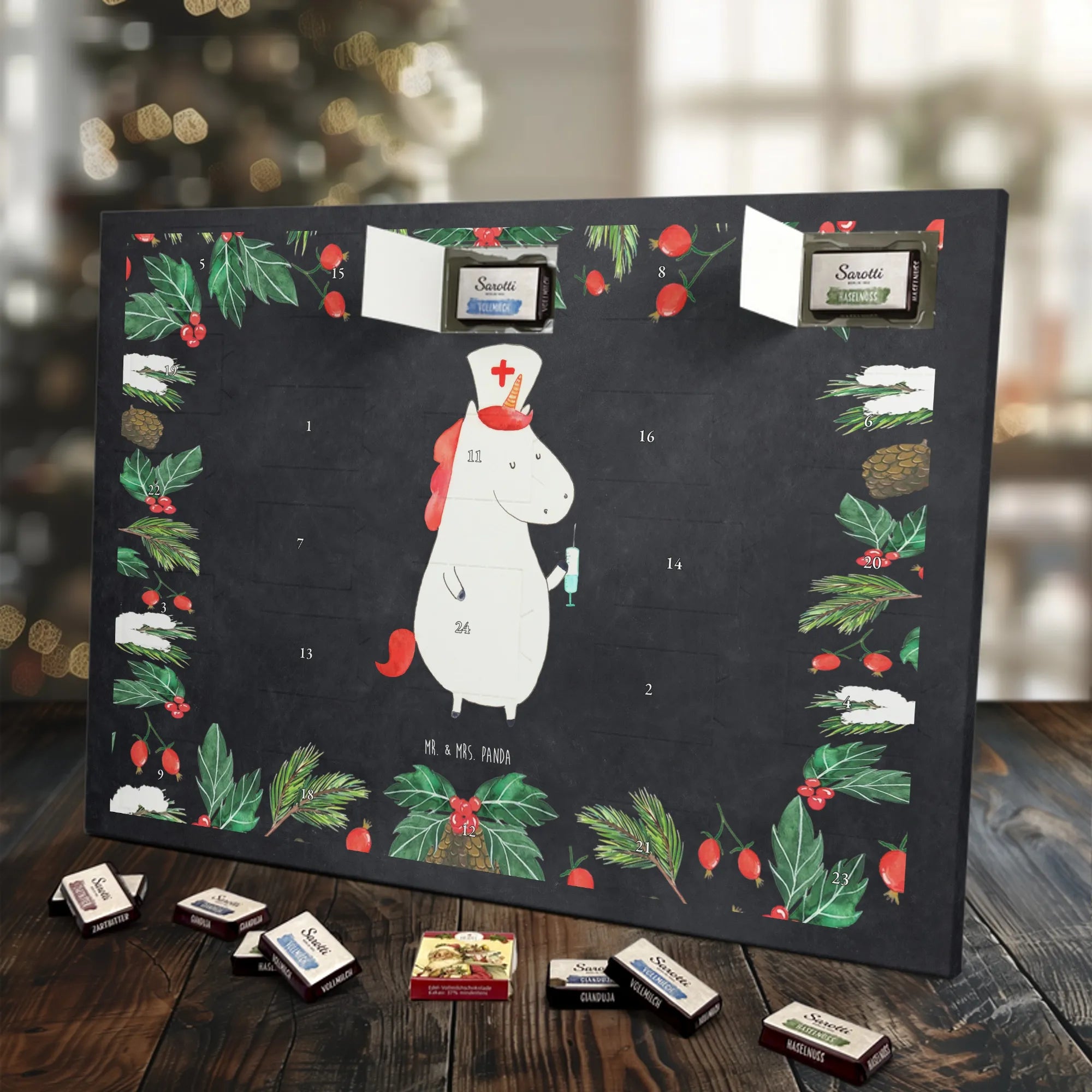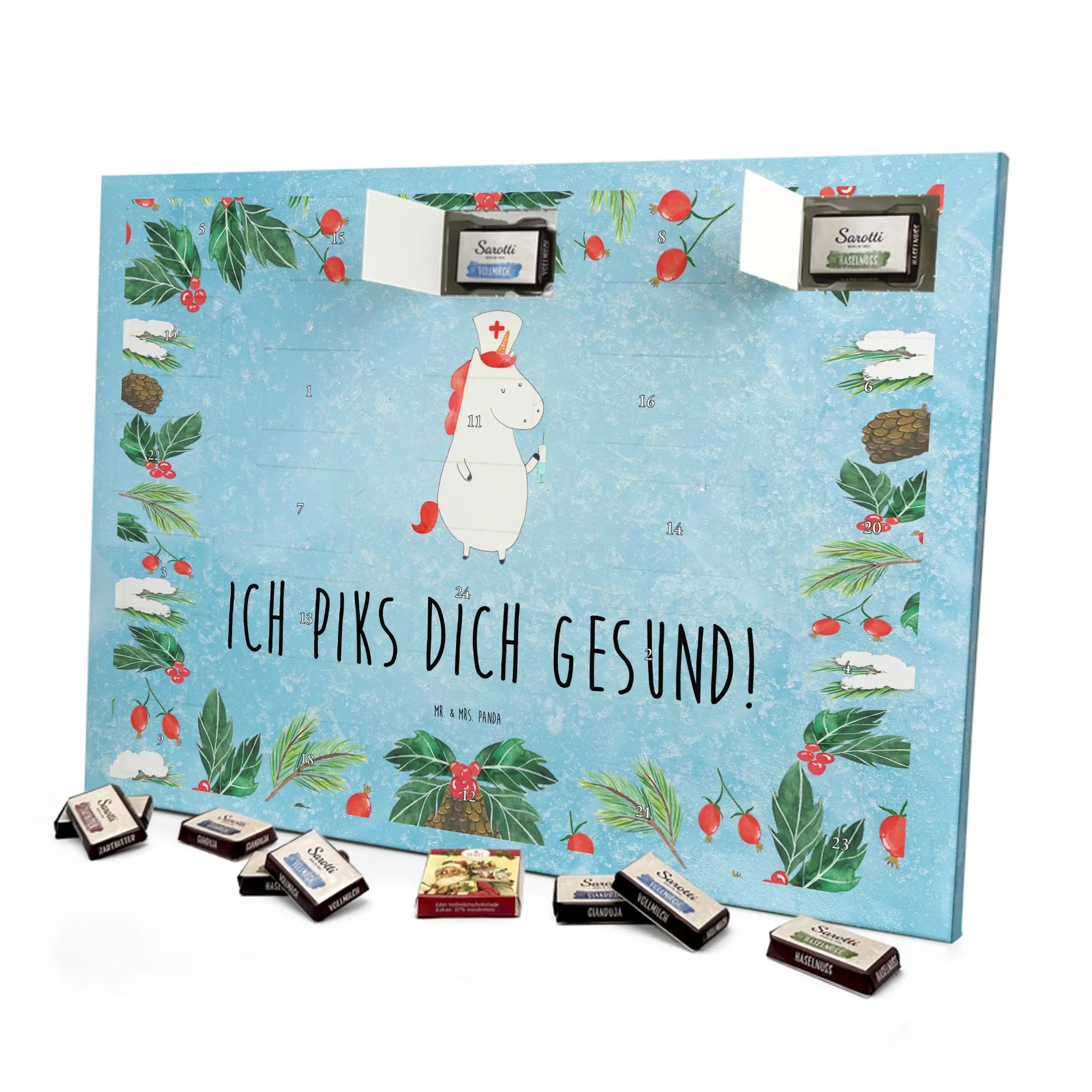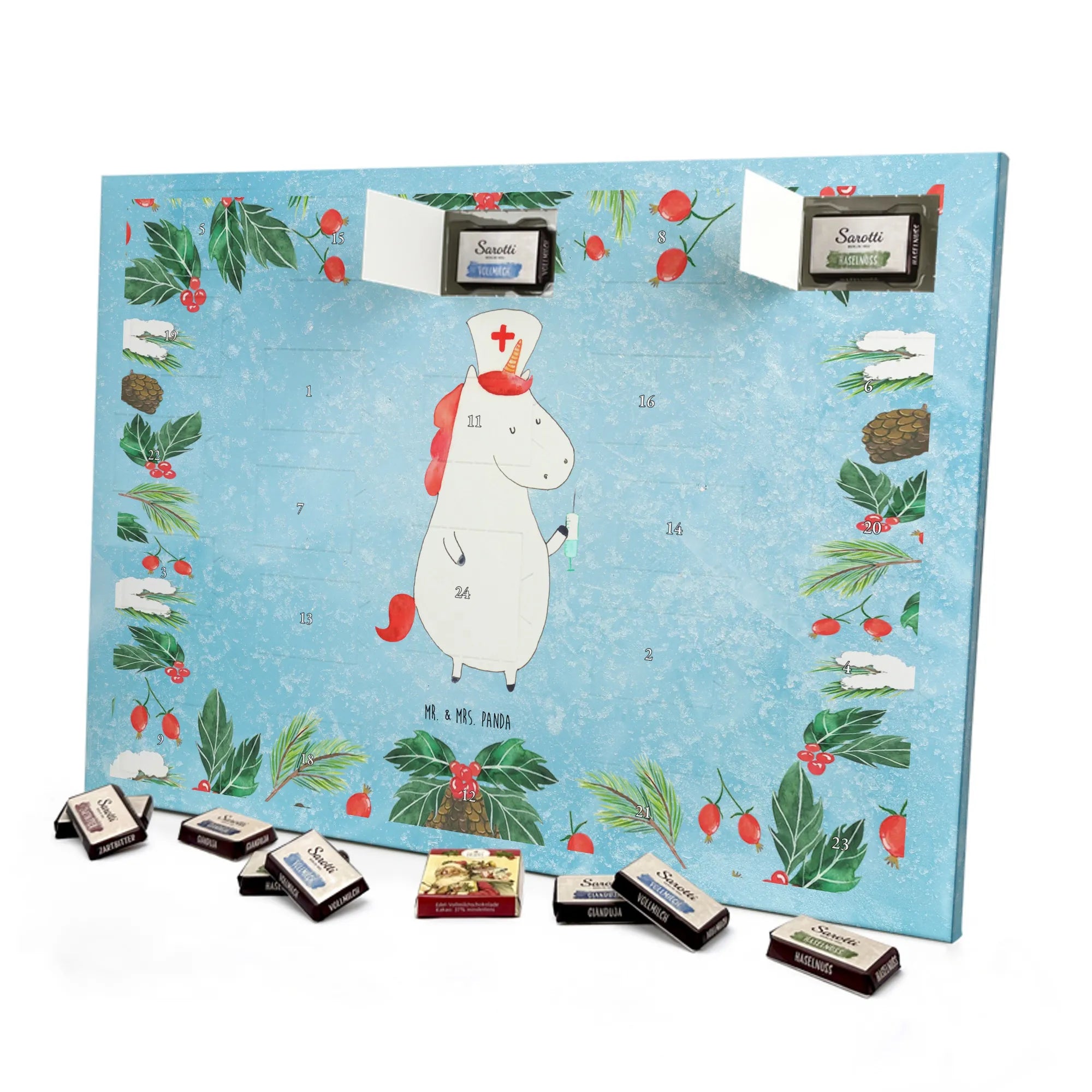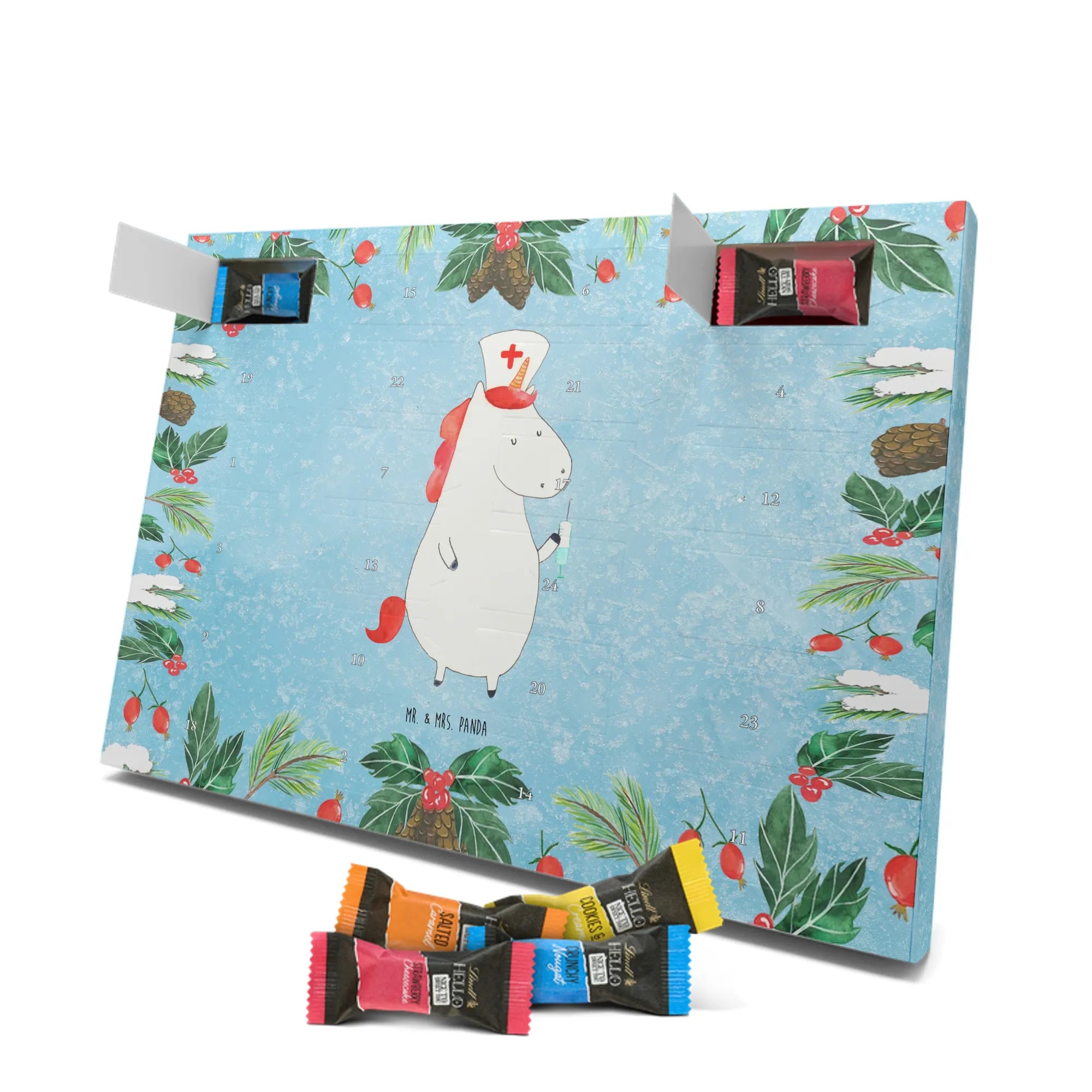 Chocolate advent calendar unicorn Nurse - Classic - with saying - Ice Blue