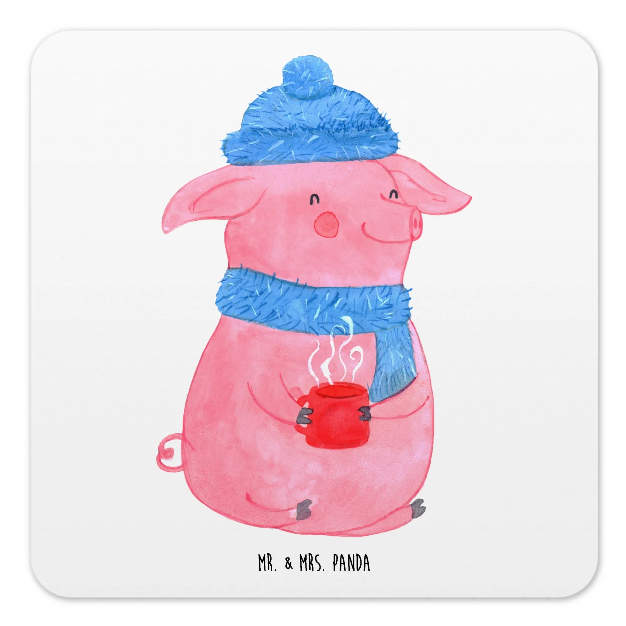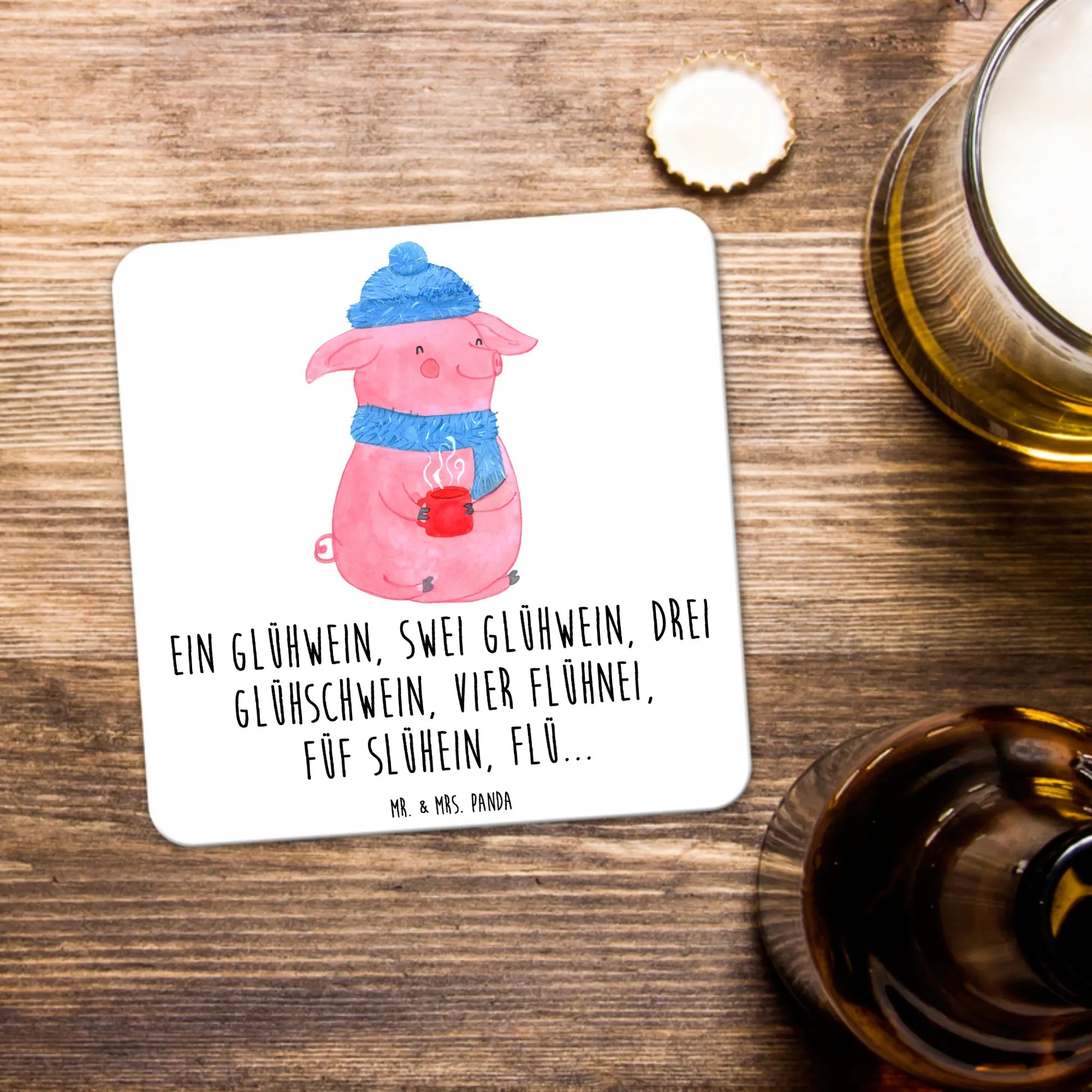 Coaster Set piggy Mulled wine - 15-piece set - with a saying - White