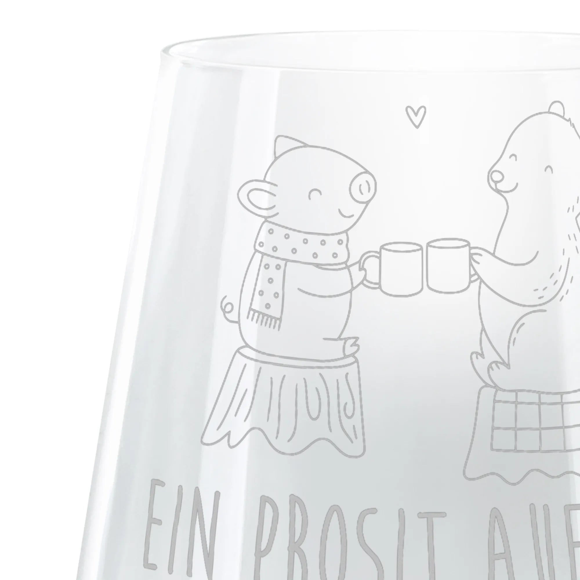 In einem zauberhaften Moment des Miteinanders stoßen unser knuffiges Schweinchen im Schal und der gemütliche Bär mit ihren Tassen an. Auf einem urigen Baumstumpf sitzend, verbindet sie ein kleines Herzchen, das ganz im Zeichen der Freundschaft und der Weihnachtszeit steht. Es ist die perfekte Darstellung des Zusammenhalts in der festlichen Zeit, während sie den Slogan 'Ein Prosit auf das feine Leben!' voll in die Tat umsetzen. Hier wird jeder Schluck zu einem feierlichen Anlass, der die Herzen erwärmt und das Lächeln ins Gesicht zaubert. Ob unter dem Weihnachtsbaum oder bei einem frostigen Abendspaziergang, dieser Entwurf bringt die Freude und das Wohlgefühl der Feiertage in jeder Ecke des Raumes zur Geltung.