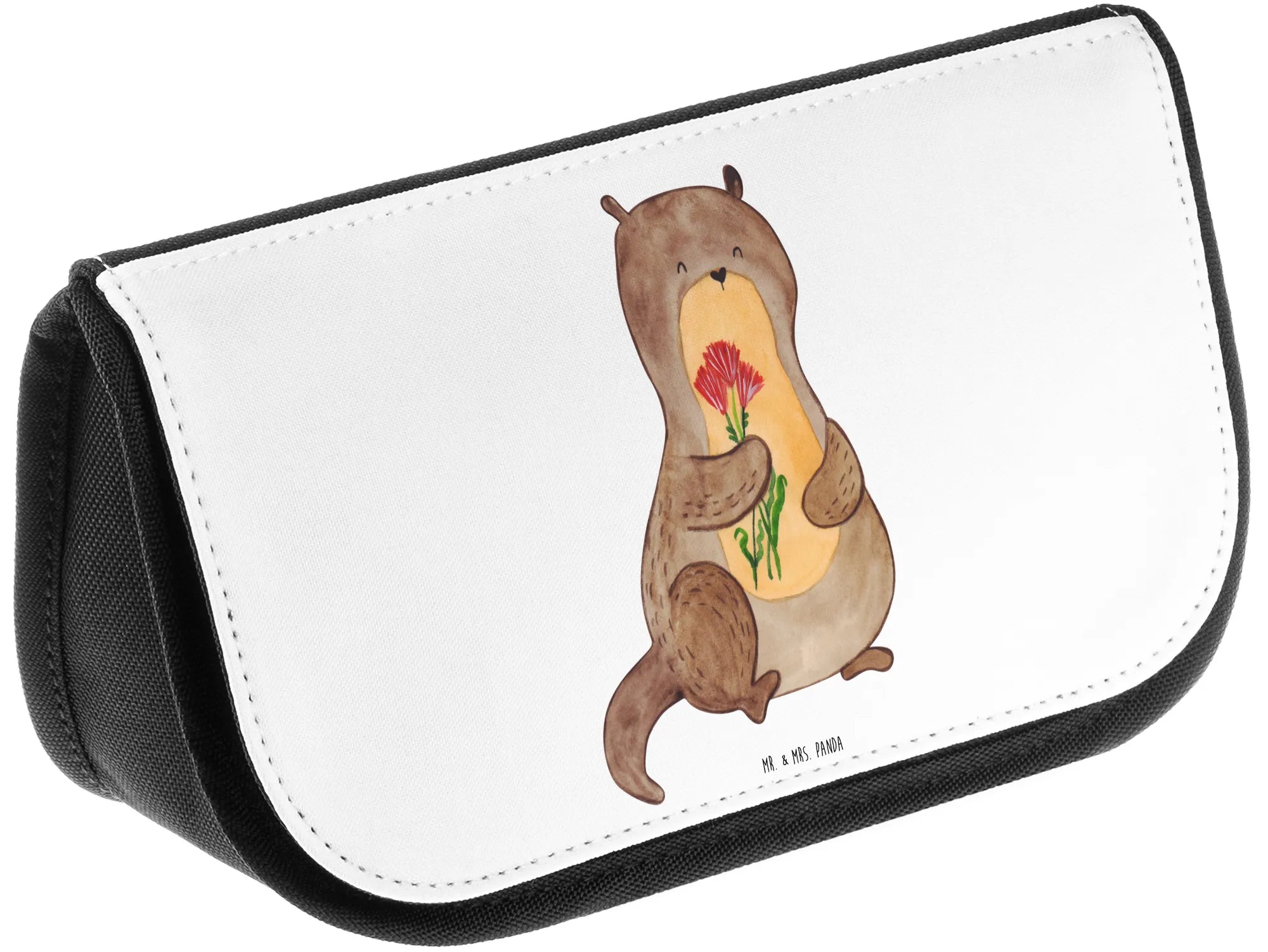 Cosmetics bag otter Bunch of flowers - with saying - Pastel Gray