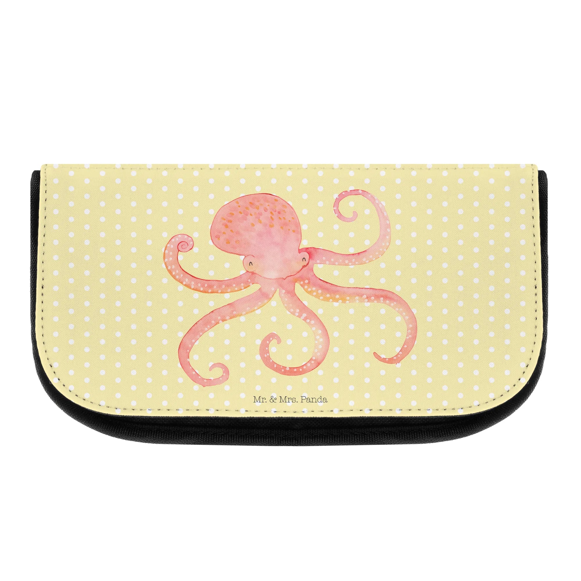 Unsere Kosmetiktasche „Tintenfisch“ aus der Small World Kollektion von Mr. & Mrs. Panda bringt sonnige Stimmung in deinen Alltag. Auf einem pastellgelben Hintergrund winkt ein roter Tintenfisch mit vielen Armen und verbreitet sofort gute Laune. Das Motiv wurde liebevoll von Mrs. Panda aquarelliert und hochwertig auf die Frontseite gedruckt.