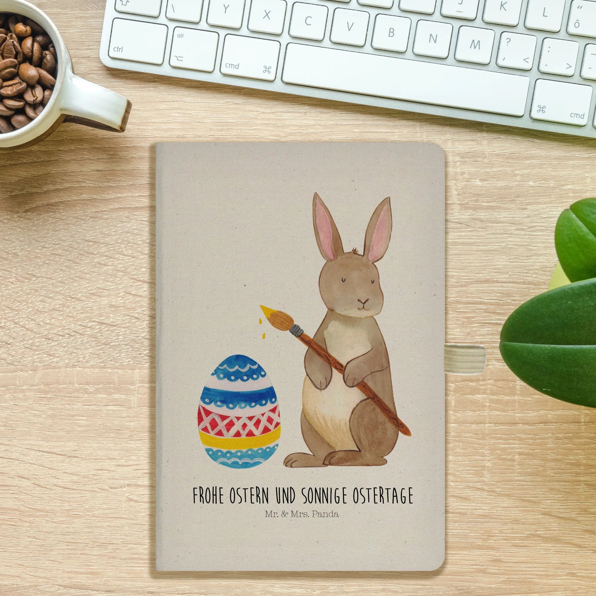 Cotton notebook Hare painting eggs - DIN A5 Cotton Notebook - with saying