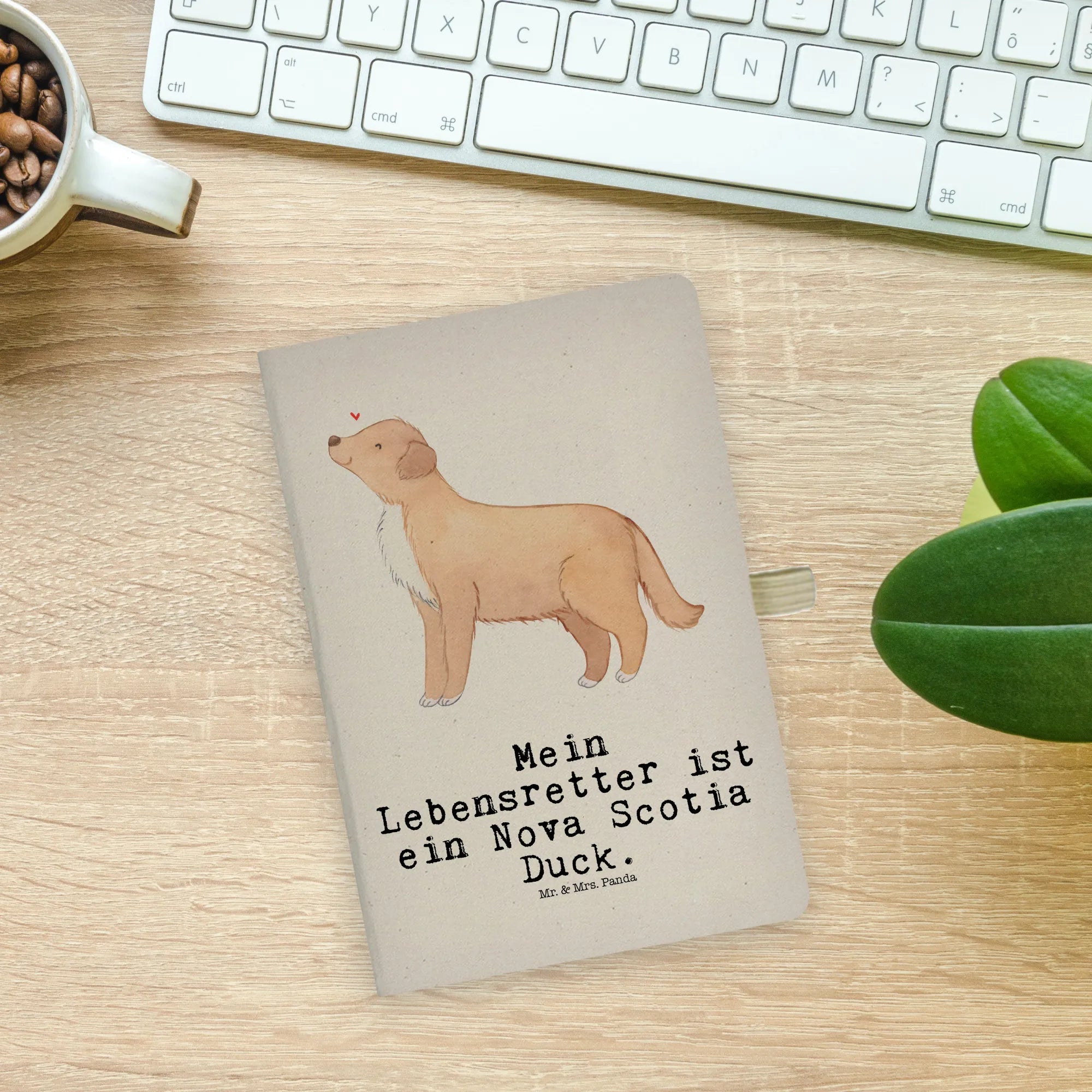 Dein neuer Lieblingsbegleiter für alle Gedanken und Abenteuer: Das DIN A5 Baumwoll Notizbuch „Nova Scotia Duck Lebensretter“ von Mr. & Mrs. Panda verbindet niedliche Gestaltung mit praktischen Details. Auf dem Cover begrüßt dich ein freundlicher Nova Scotia Duck Tolling Retriever in sanften Beige- und Brauntönen – begleitet vom liebevollen Spruch „Mein Lebensretter ist ein Nova Scotia Duck.“
