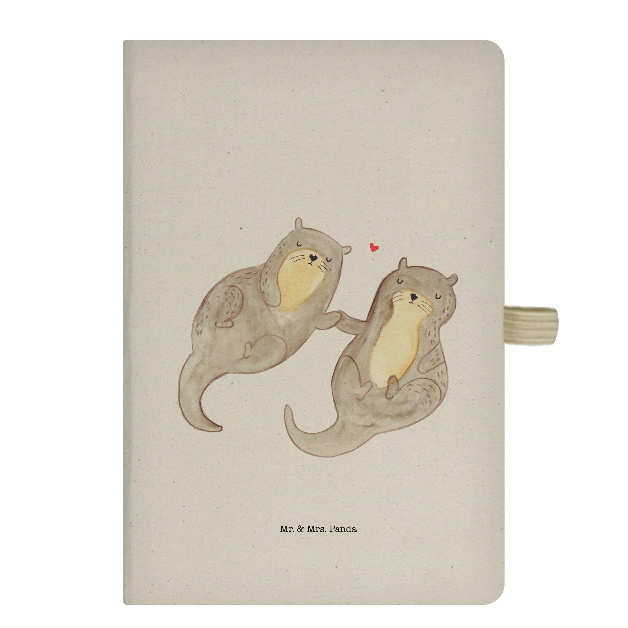 Introducing the heartwarming Cotton Notebook featuring our adorable design of otters holding hands. This lovely addition to the Mr. & Mrs. Panda collection captures a sweet moment of two otters floating serenely in the water, symbolizing love and companionship. Perfect for those who adore these charming aquatic mammals, this notebook not only serves as an ideal vessel for your thoughts, sketches, and dreams but also shines as a delightful gift for any otter lover in your life.