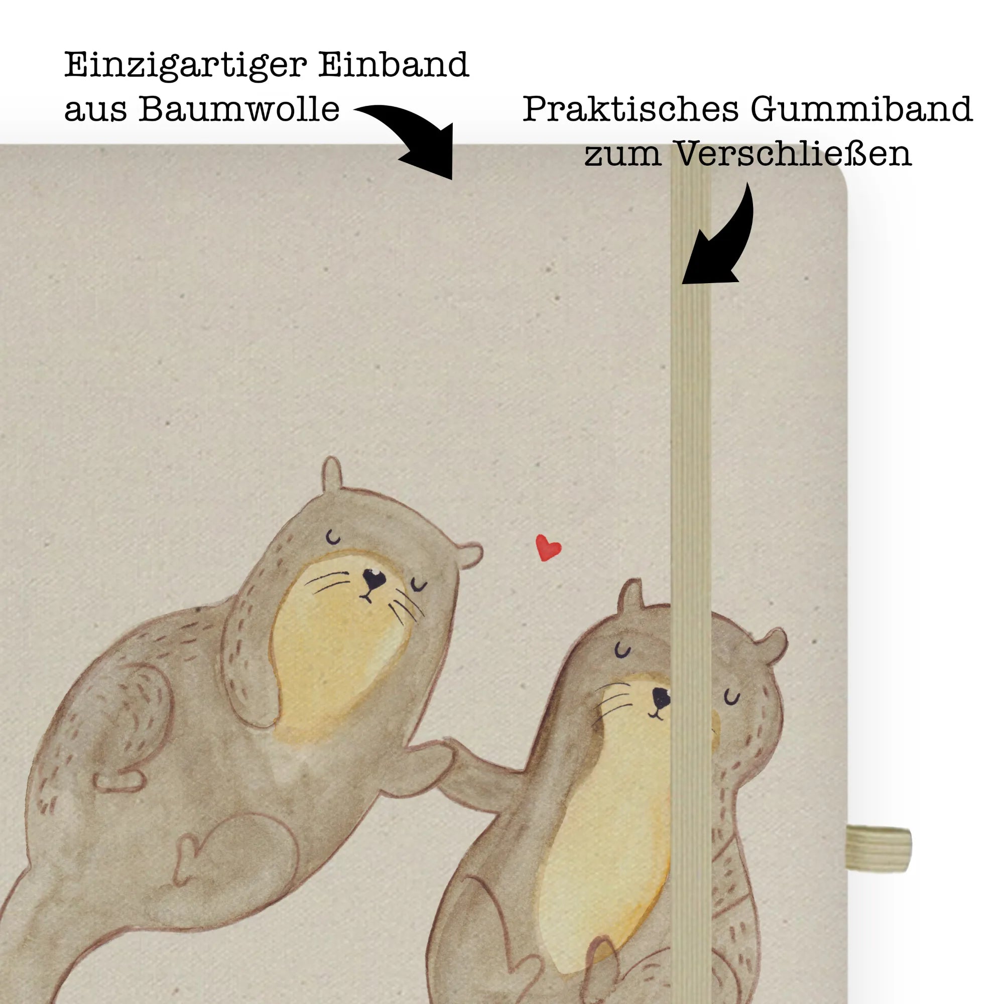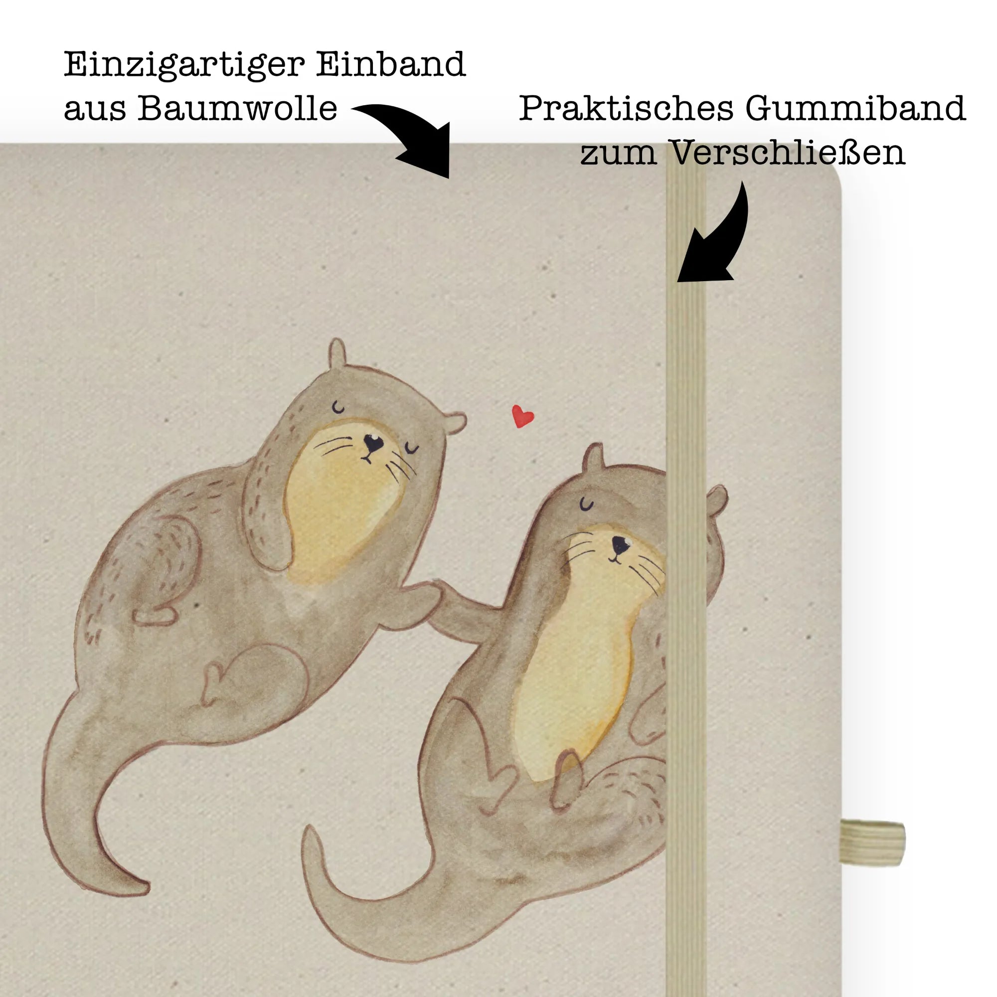Cotton notebook otter holding hands - DIN A5 Baumwoll Notizbuch - with saying