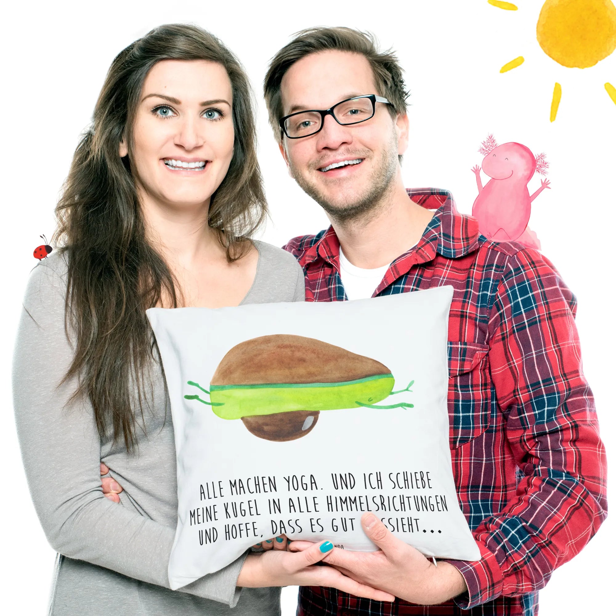 Perfect for those who find peace in plant-based living, our cushion showcases a delightful motif of our adorable avocado attempting to master the art of yoga. It’s not just a cushion; it’s a conversation starter! Ideal for vegans, health enthusiasts, or anyone who simply appreciates a good laugh while lounging. The motif captures the humorous side of trying new things—even if it means just ‘flailing around’ on days when you feel less than graceful.