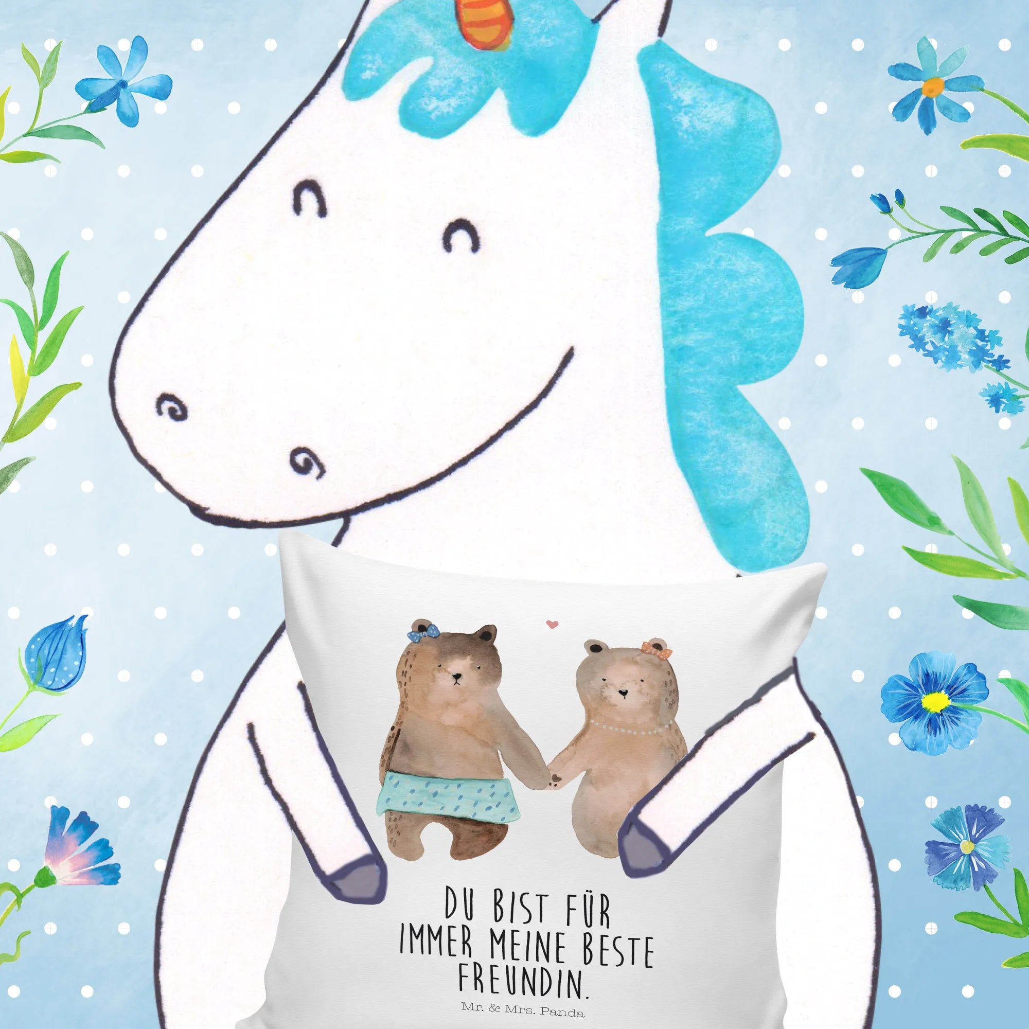 The adorable design features two sweet bear friends holding hands—an emblem of unwavering friendship and love. Whether you're celebrating a birthday, making a special occasion even more memorable, or just want to surprise your best buddy, this pillow showcases your affection perfectly.