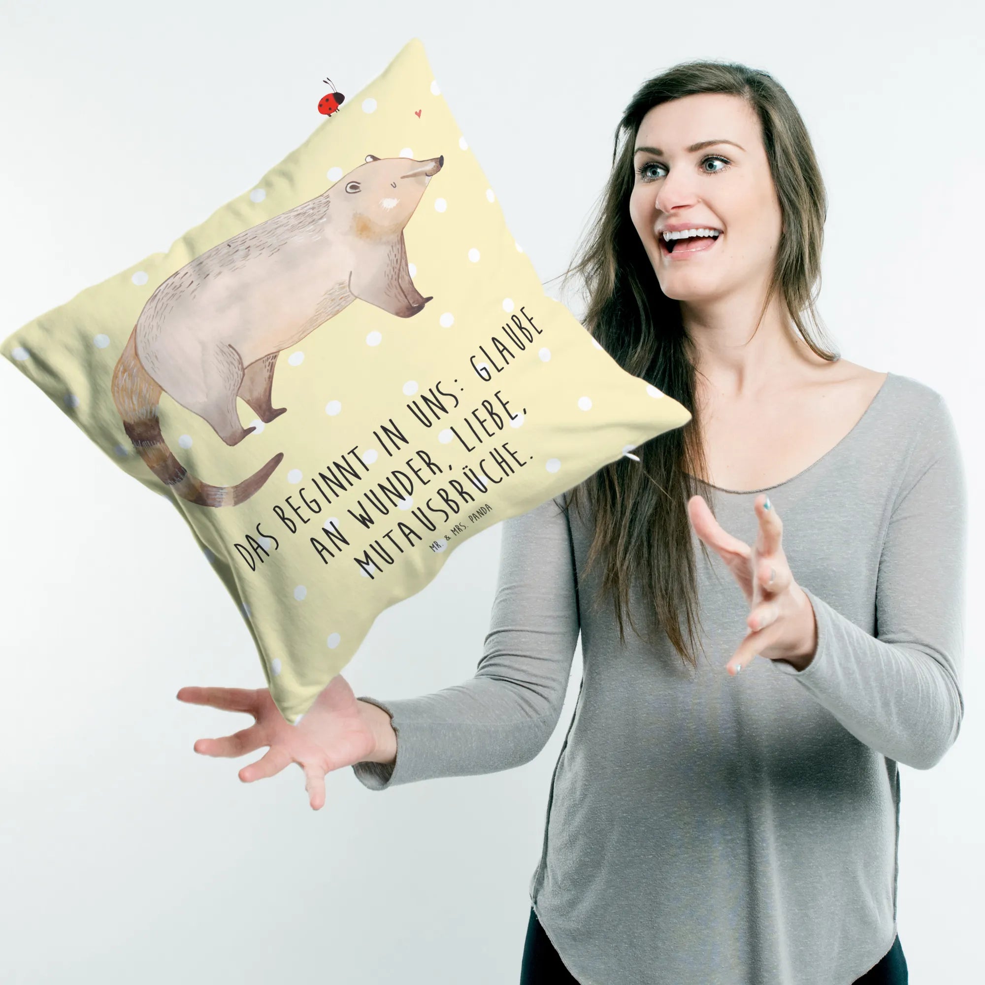 Decorating with cushions is a fabulous way to express your personality and style. The Cushion Coati, with its playful motif and uplifting vibes, easily brightens up any room. Pair it with your existing home decor or let it stand out as a conversation starter.