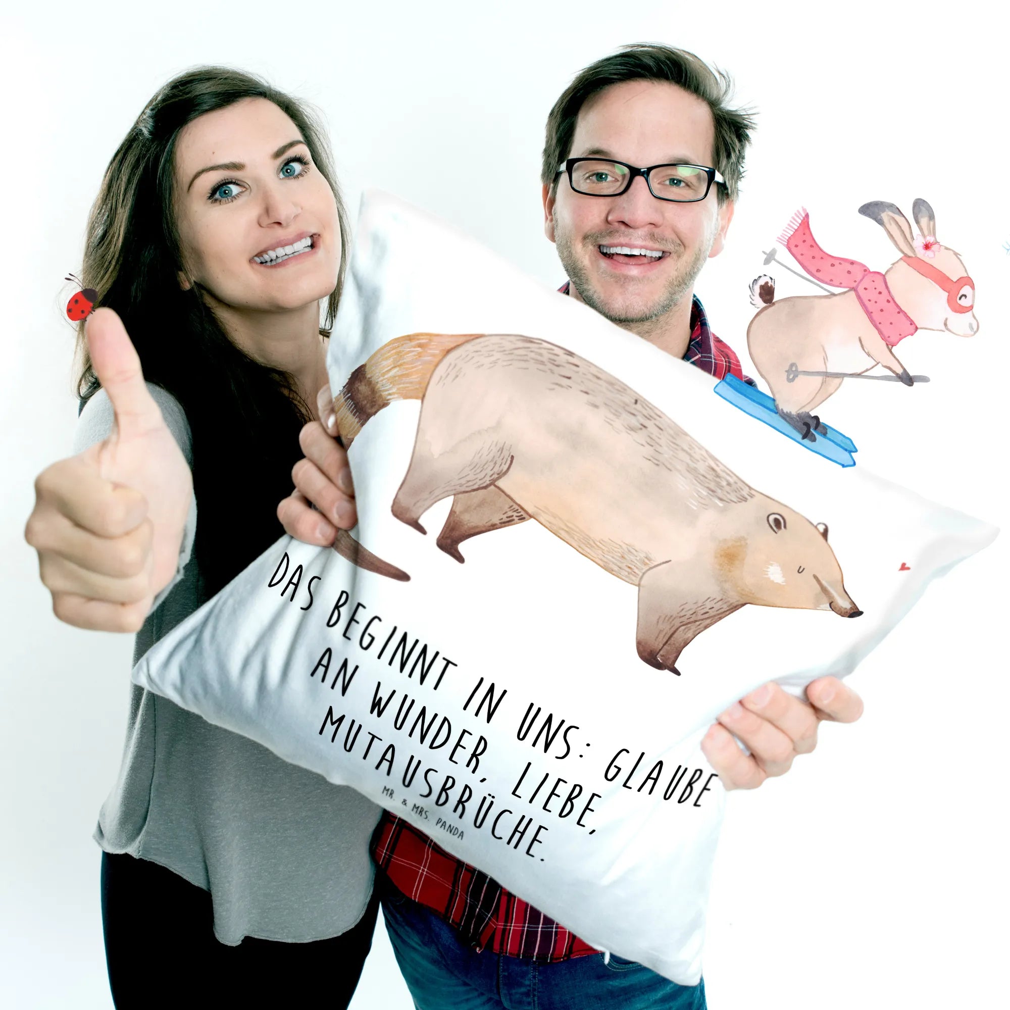 Spice up your home décor with our enchanting Mr. & Mrs. Panda cushion! Sized at 400 mm x 400 mm (16 inch x 16 inch), it’s formed from ultra-soft microfiber that feels plush against your skin. Adorned with lovely prints and uplifting sayings, this cushion is a delightful complement to any sofa, armchair, or bed. The removable filling allows for hassle-free care; just unzip, and toss the cover into the washing machine at 30° C for an easy refresh. This delightful piece not only adds beauty to your space but also invites warmth and comfort to your life. Whether you're reading, relaxing, or socializing, this cushion is the perfect companion for cozy moments. Brighten up your living area with the whimsical charm of Mr. & Mrs. Panda!