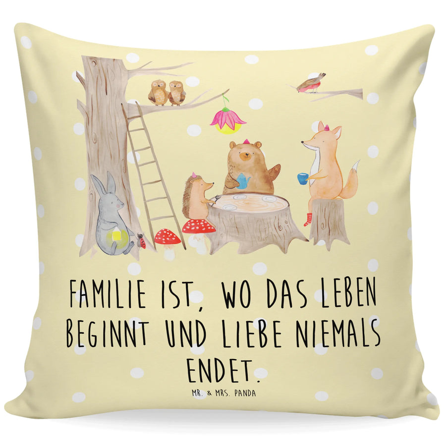 Cushion forest animals picnic - with saying - Yellow Pastel