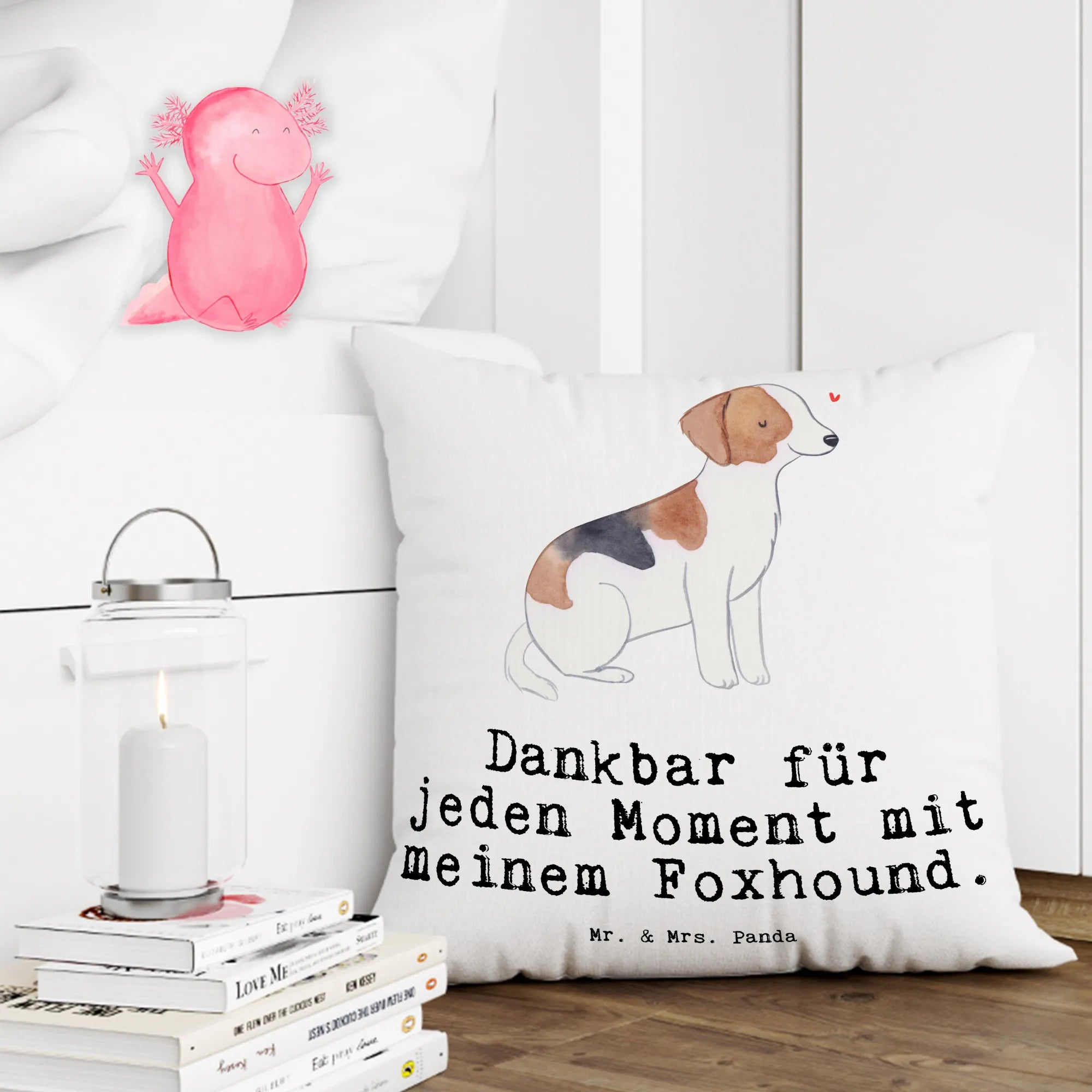 Meet our lovely 'Foxhound Moment' motif, a sweet tribute to the amazing bond between humans and their Foxhounds. This cheerful design features a stylized drawing of a Foxhound, sitting upright and attentive, showcasing its distinct white coat adorned with light and dark brown patches. This dog isn't just any ordinary hound; its friendly and calm demeanor reflects the joy and companionship that these incredible animals bring into our lives. The phrase, 'Dankbar für jeden Moment mit meinem Foxhound,' truly captures the essence of gratitude for every shared experience. From those playful runs at the park to quiet moments snuggled on the couch, every second is a gift. Celebrate your Foxhound's unique personality and all the adventures that come with it, because every tail wag tells a story.