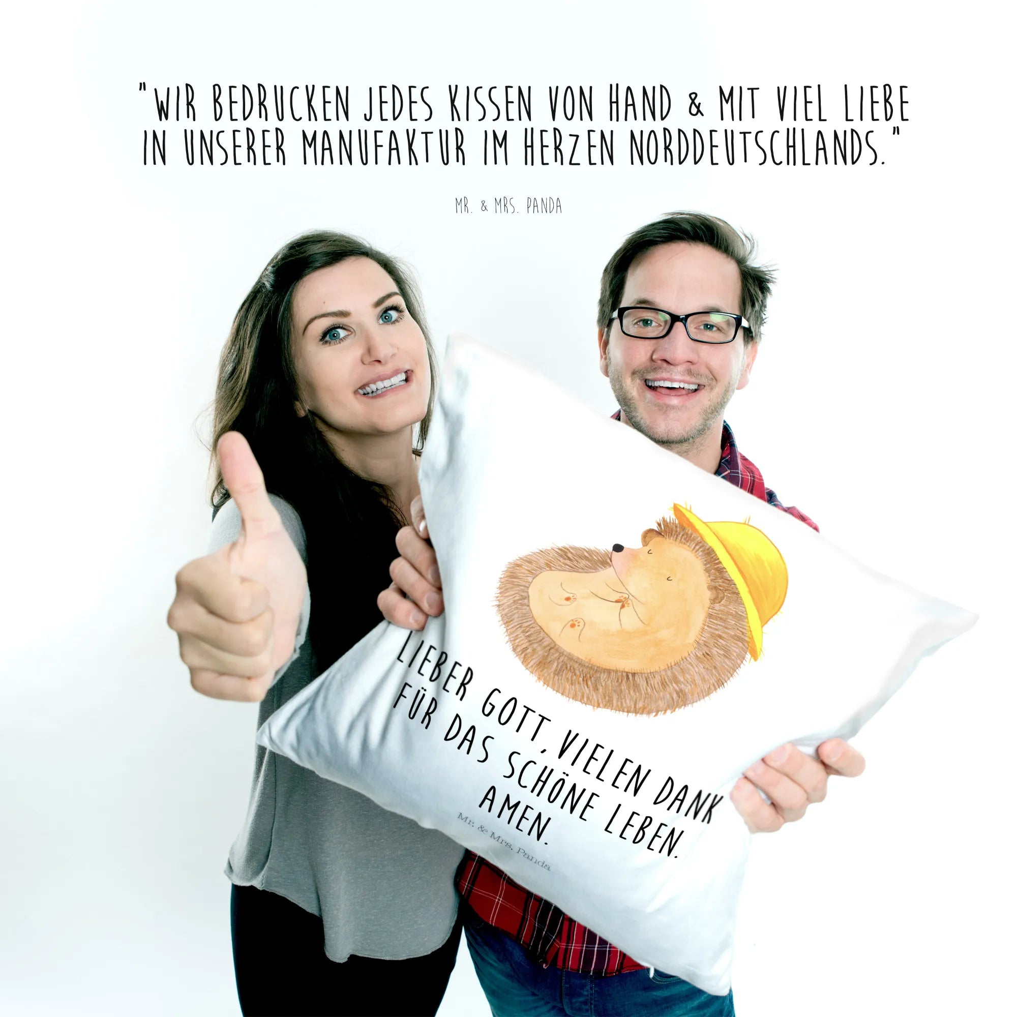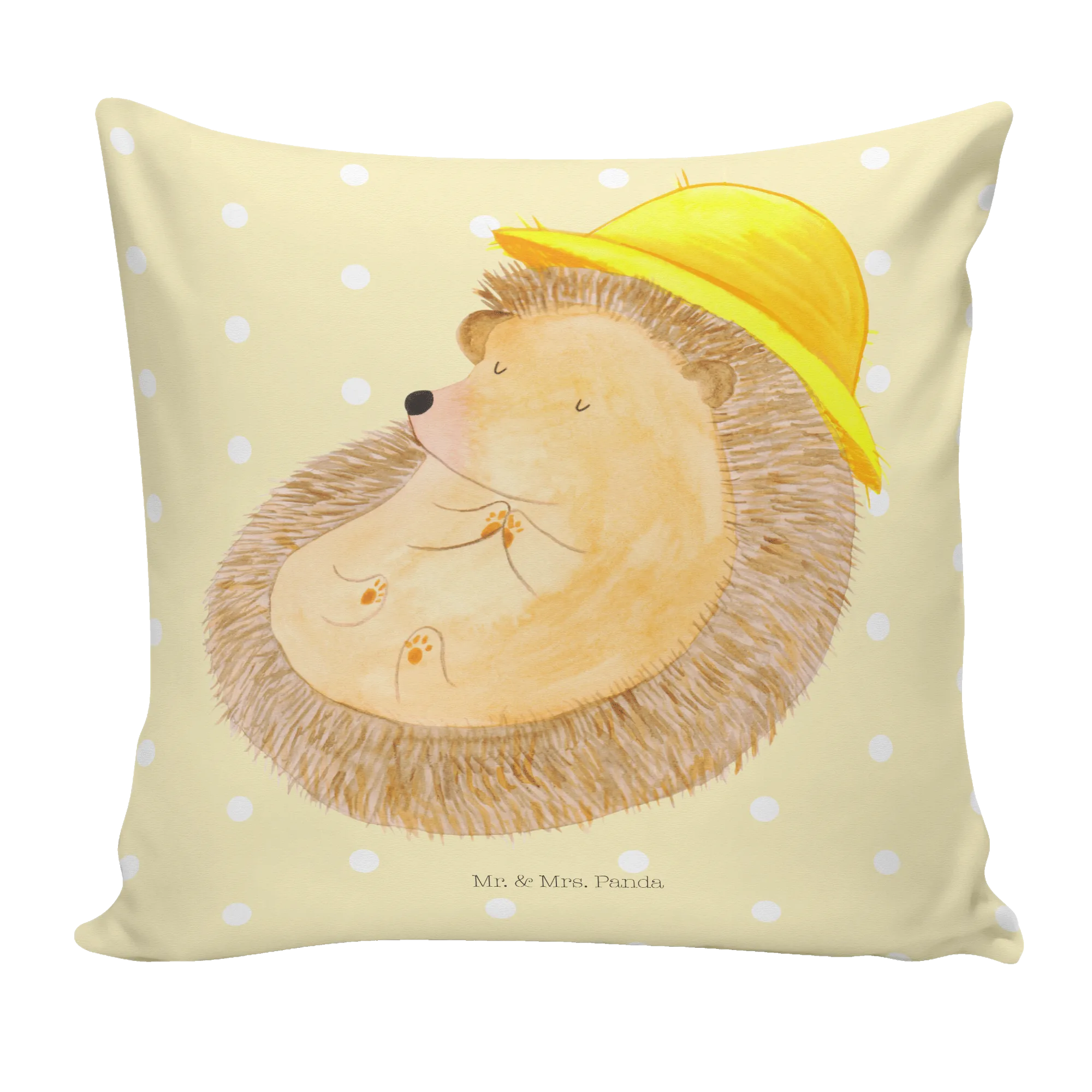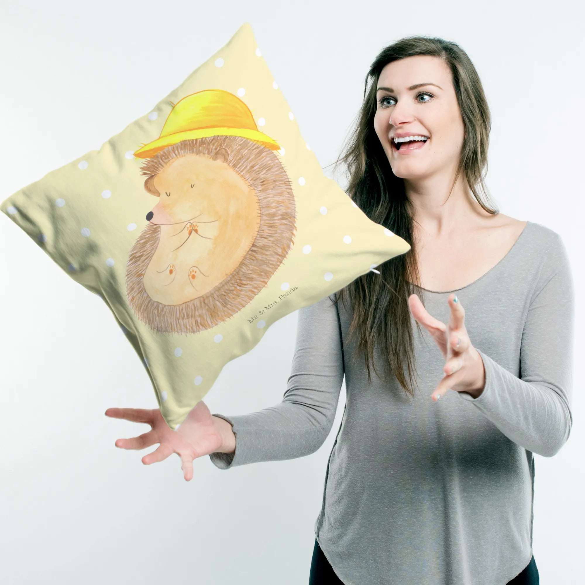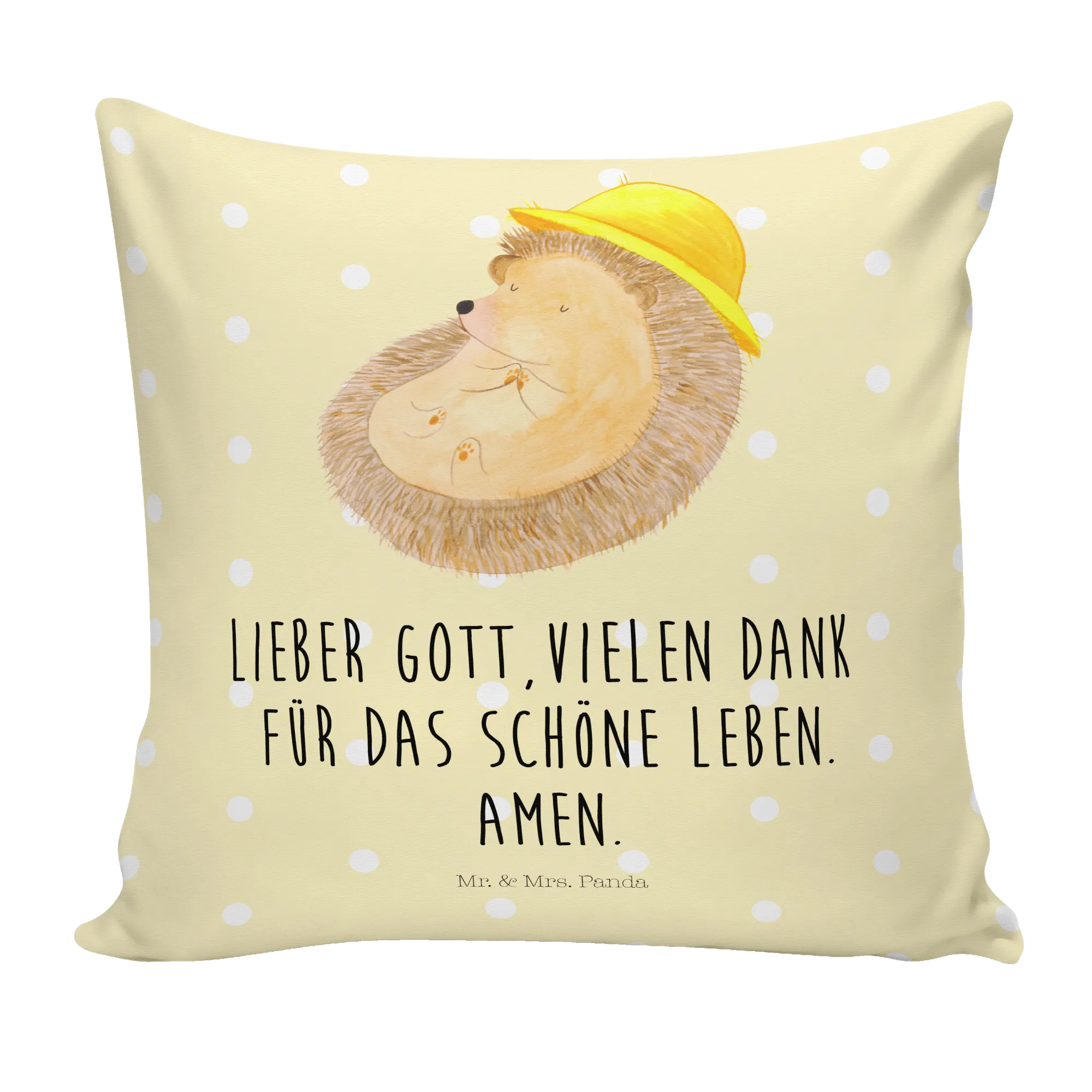 Cushion Hedgehog Pray - with saying - Pastel Yellow