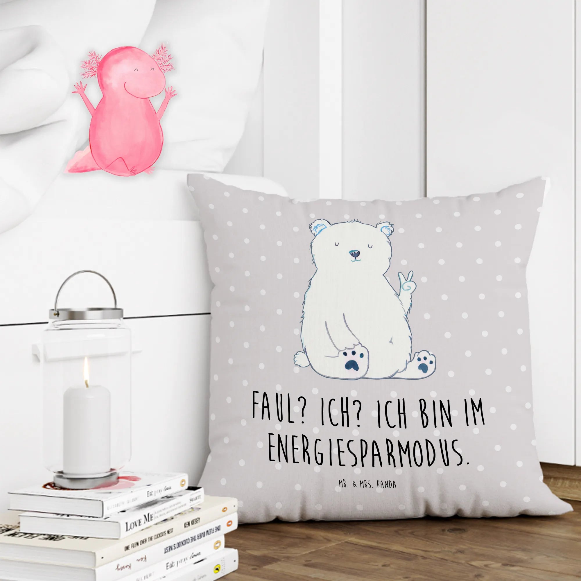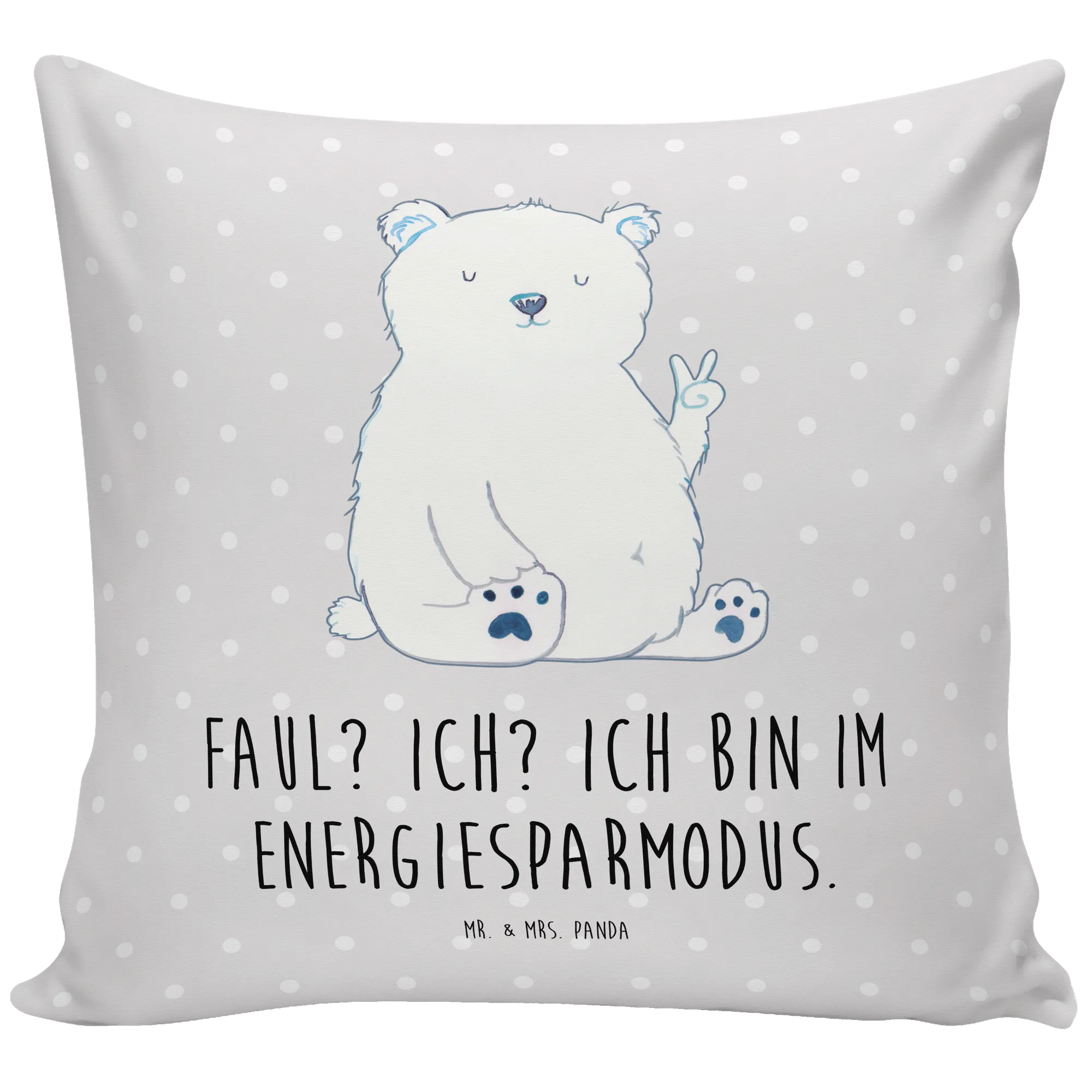 Cushion Icebear Lazy - with saying - Pastel Gray