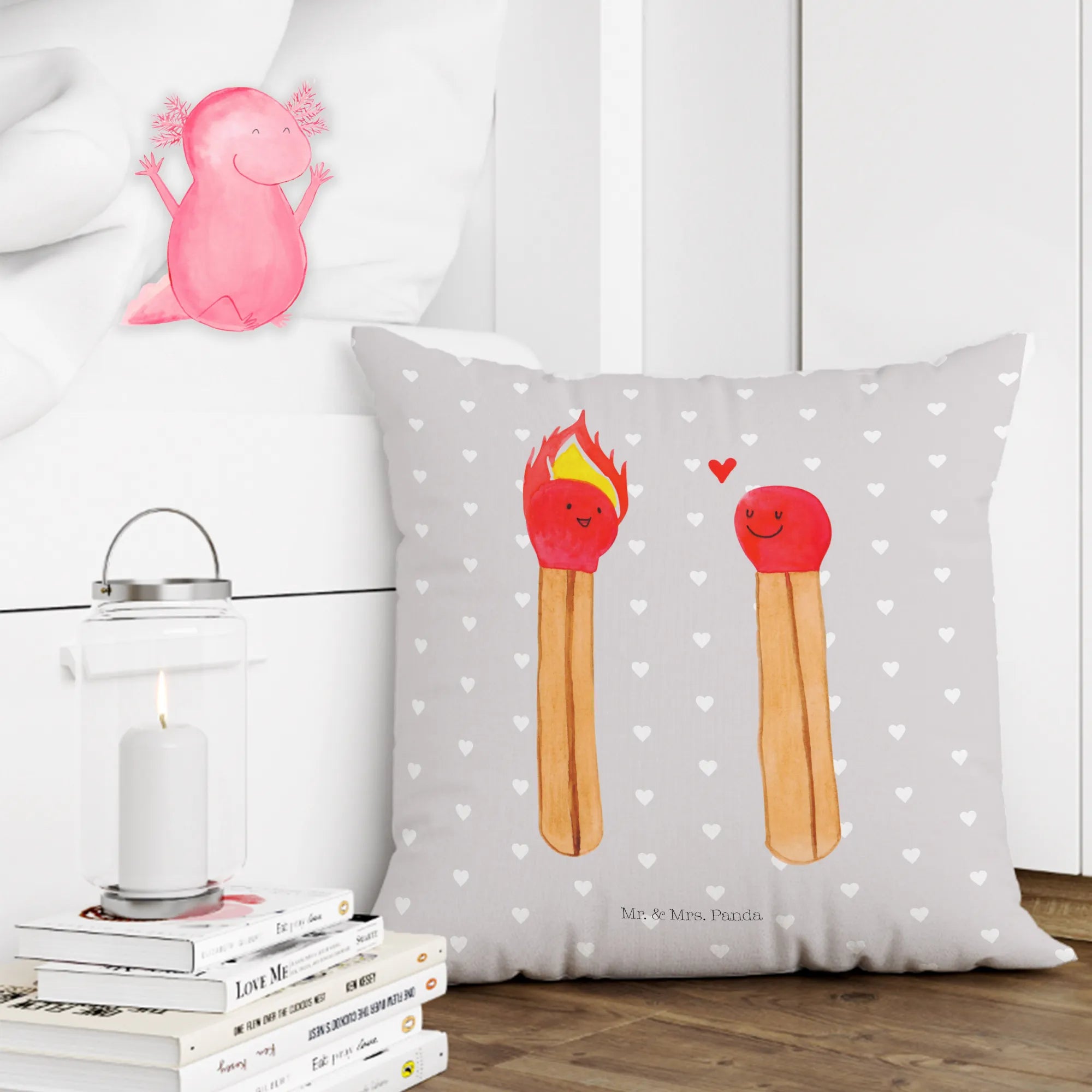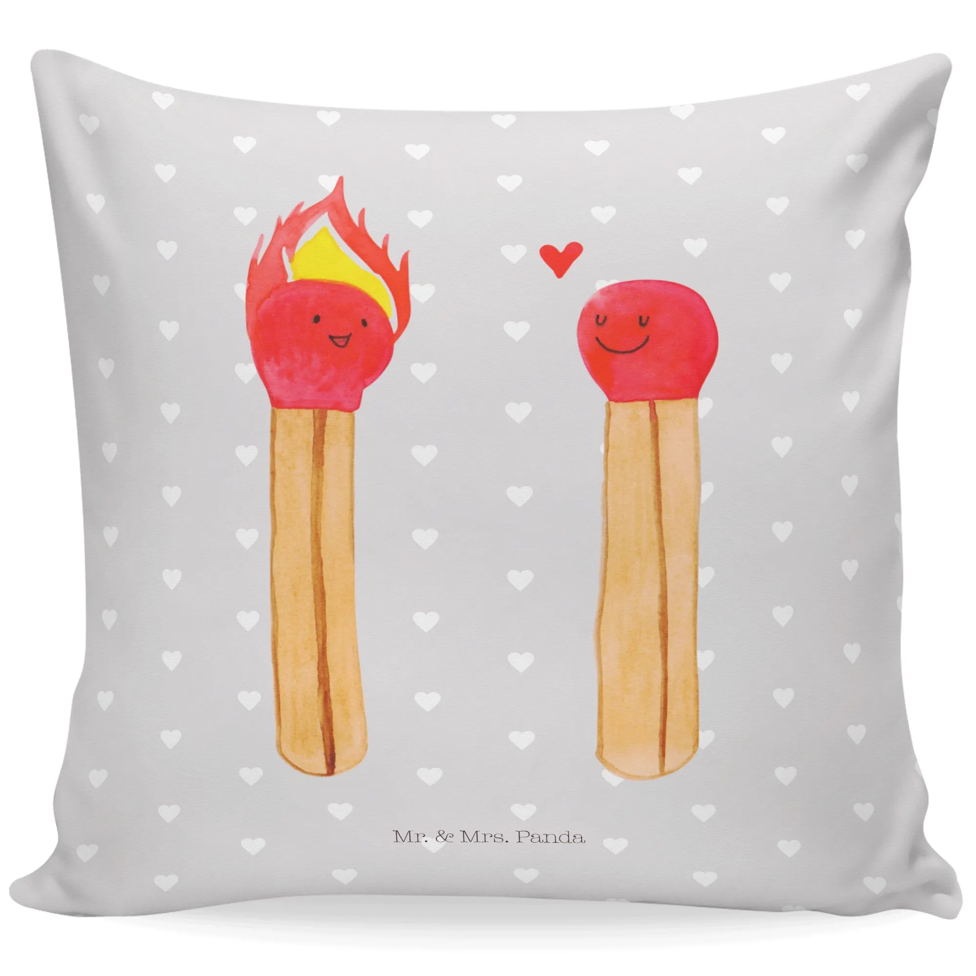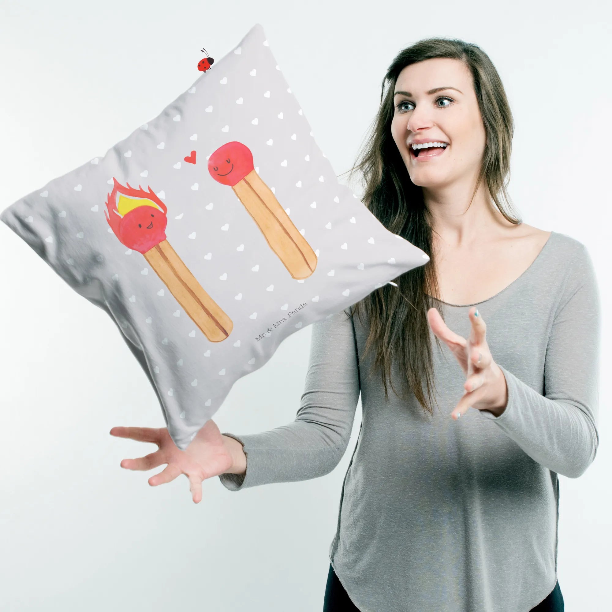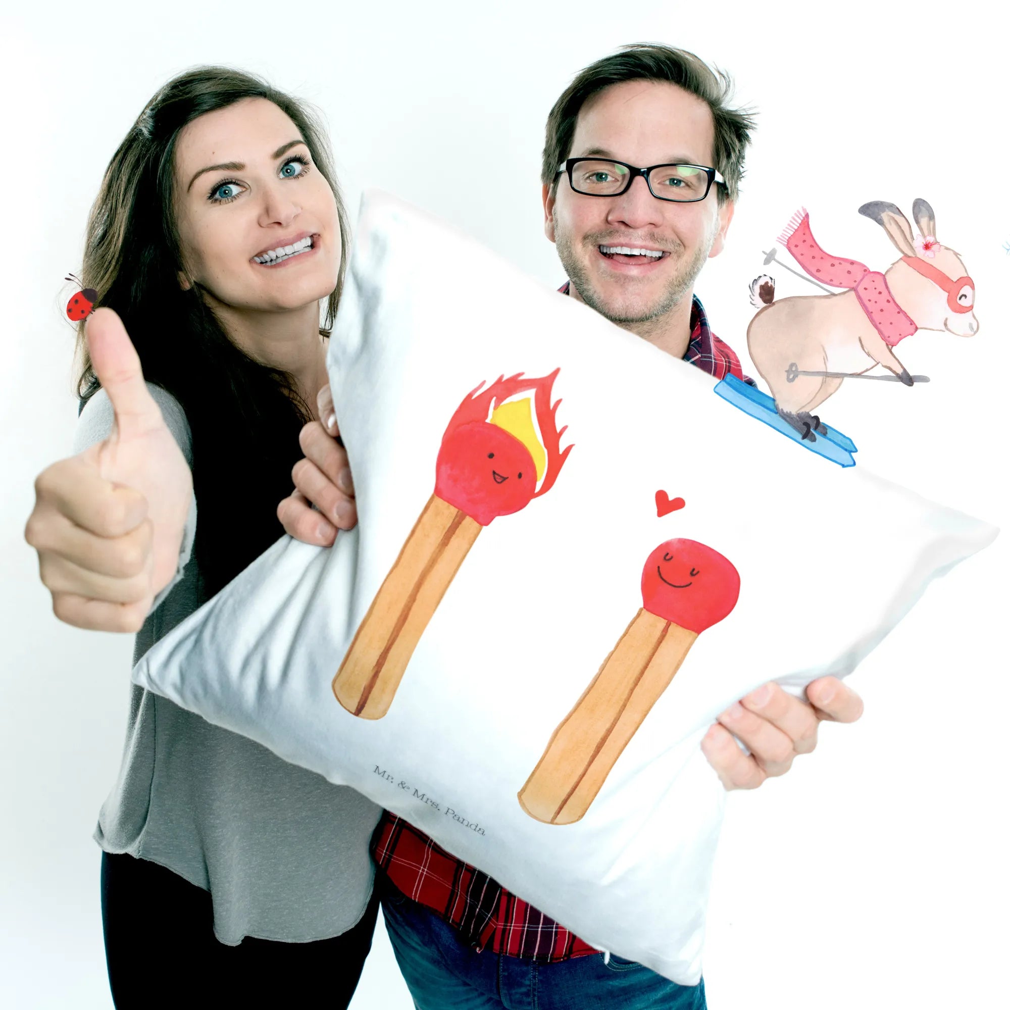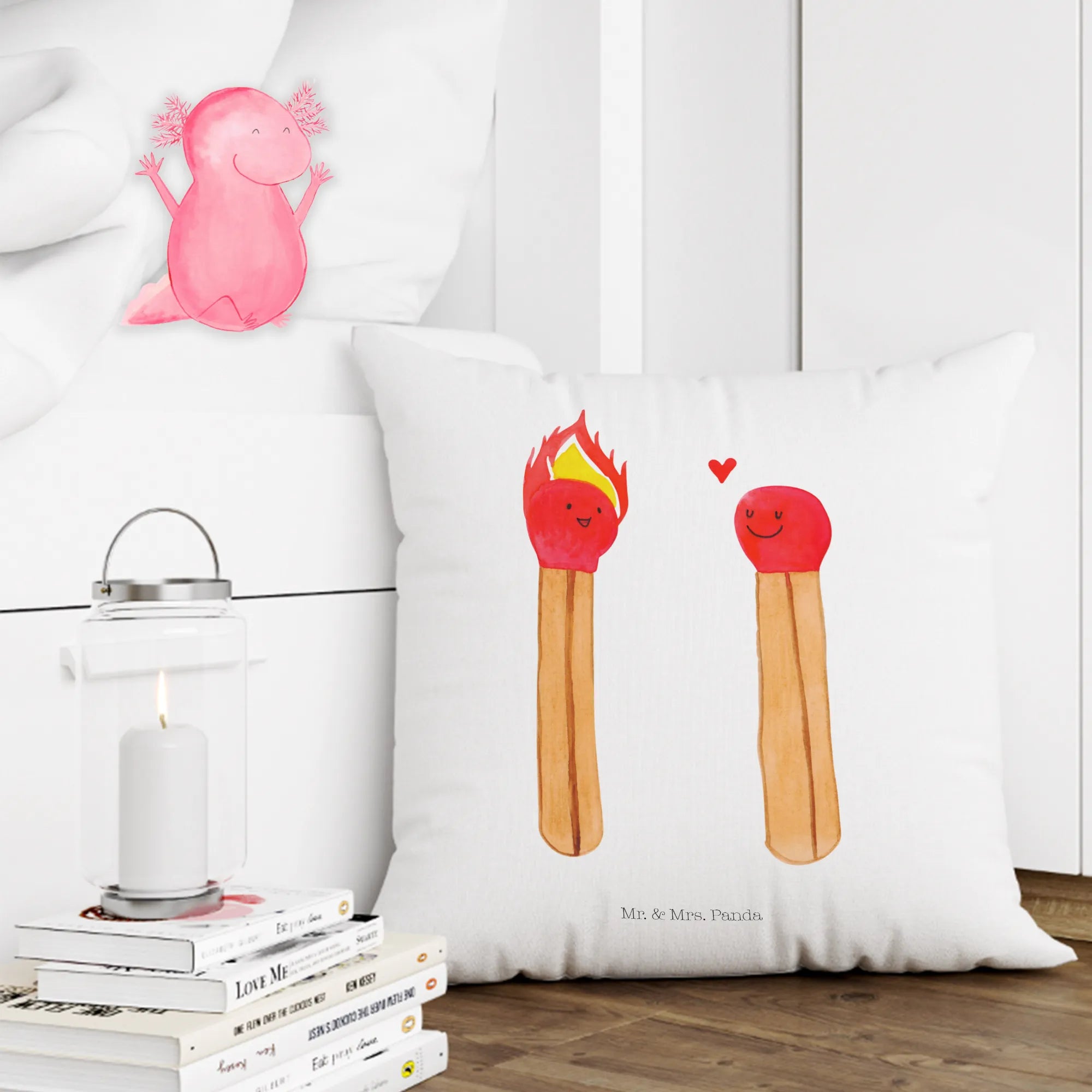 Introducing the perfect gift for couples in love, the "Matches" cushion from the Love collection by Mr. & Mrs. Panda! This adorable cushion features an enchanting illustration of two charming matches – one happily lit, radiating warmth and joy, while the other, equally cheerful but unlit, signifies companionship and togetherness. Nestled between them is a heart, showcasing their bond in the cutest way possible!