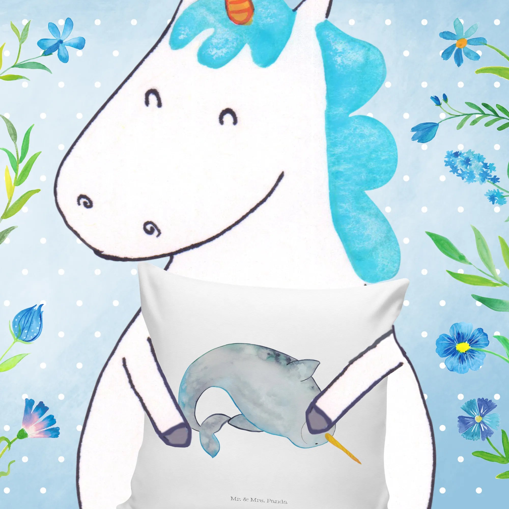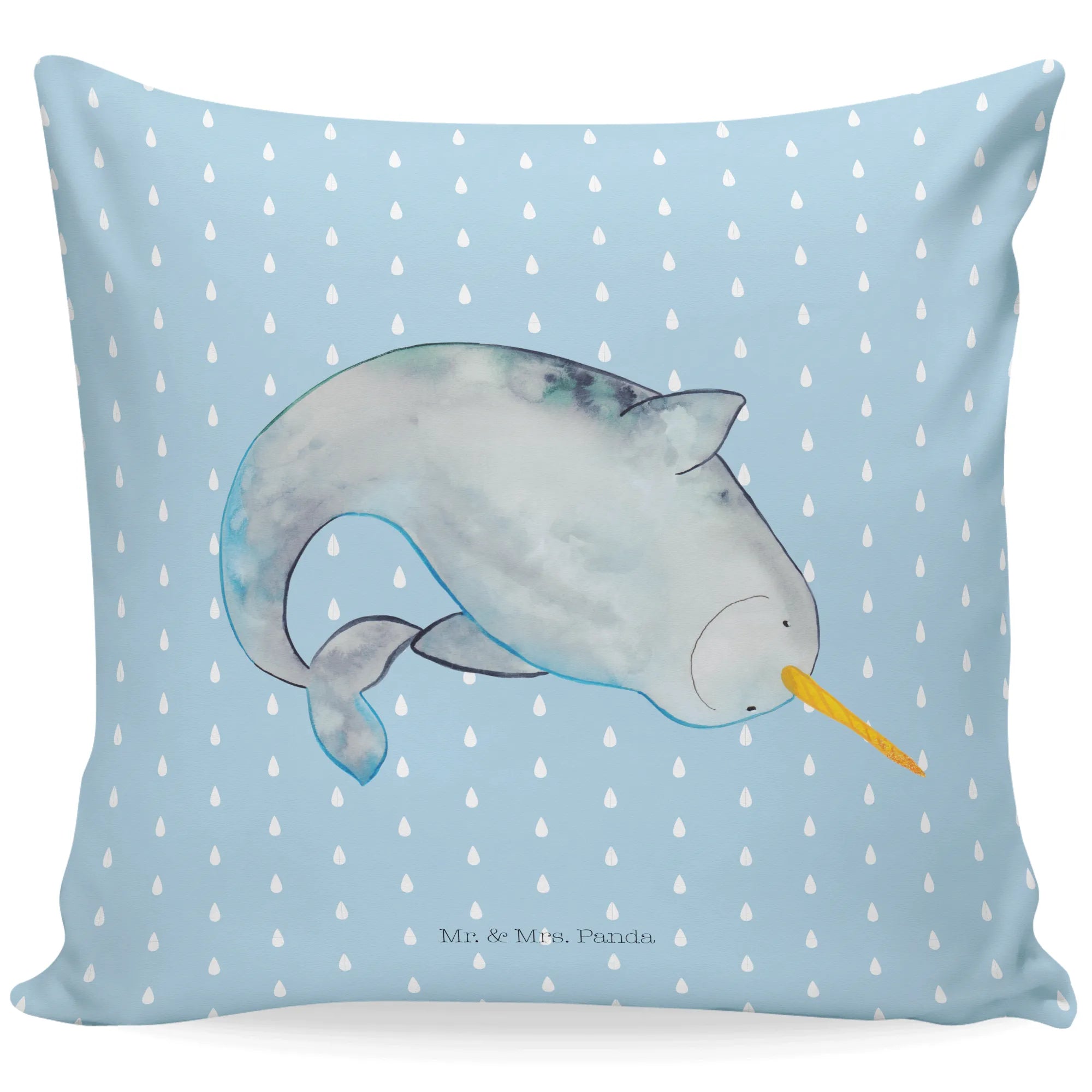 Introducing the delightful Narwhal Cushion from the charming Marine Animals collection by Mr. & Mrs. Panda! 🐳 This adorable cushion features a lovingly crafted illustration of a narwhal, complete with its distinctive long, straight tusk and enchanting blue and gray skin tones. The design is not only whimsical, but it also has a soft, watery quality that brings a touch of the ocean right into your home.