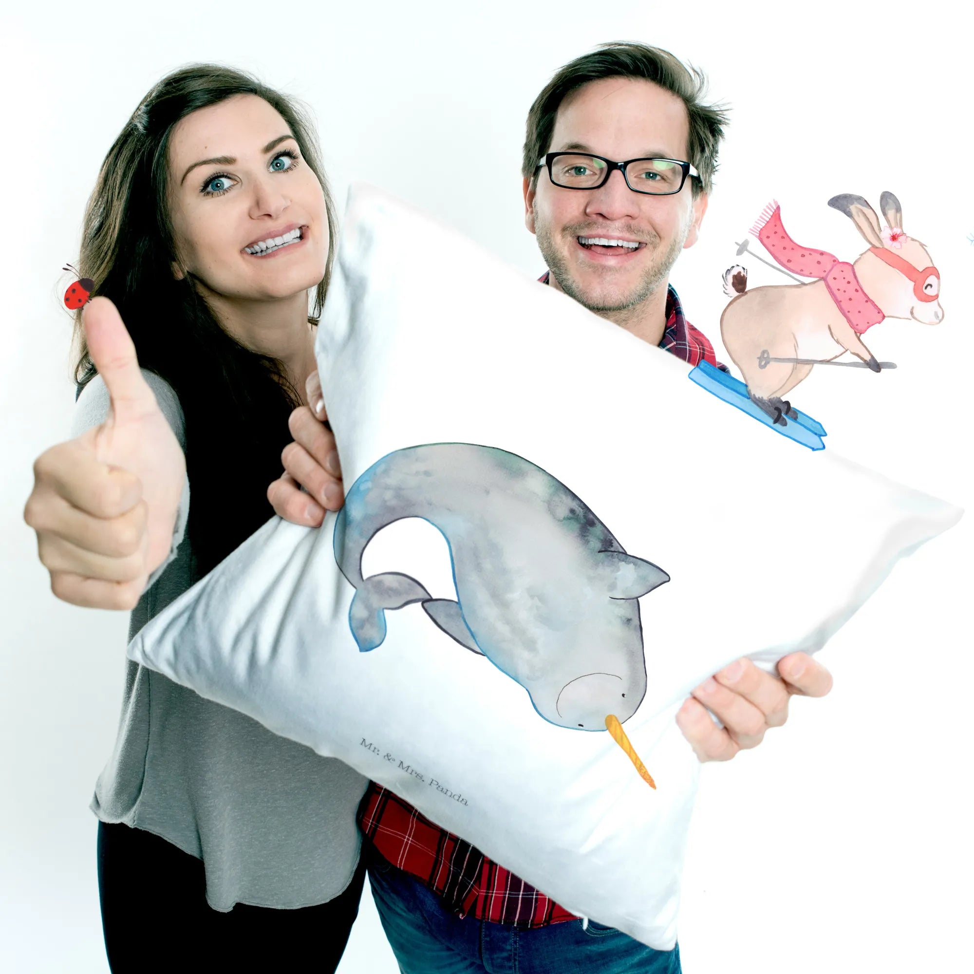In summary, the Mr. & Mrs. Panda Narwhal Cushion is much more than just a pillow; it's a heartfelt gift that evokes the beauty of the sea and brings warmth and delight into any living space. Make a splash in your home or someone else's with this charming accent piece that is perfect for any casual or coastal setting!