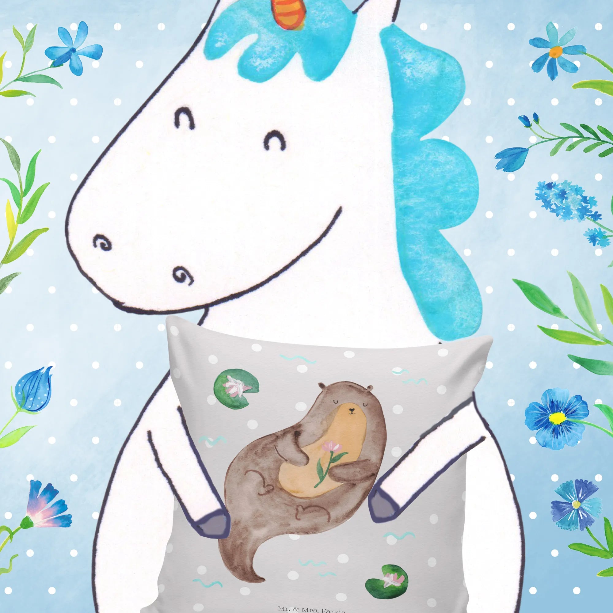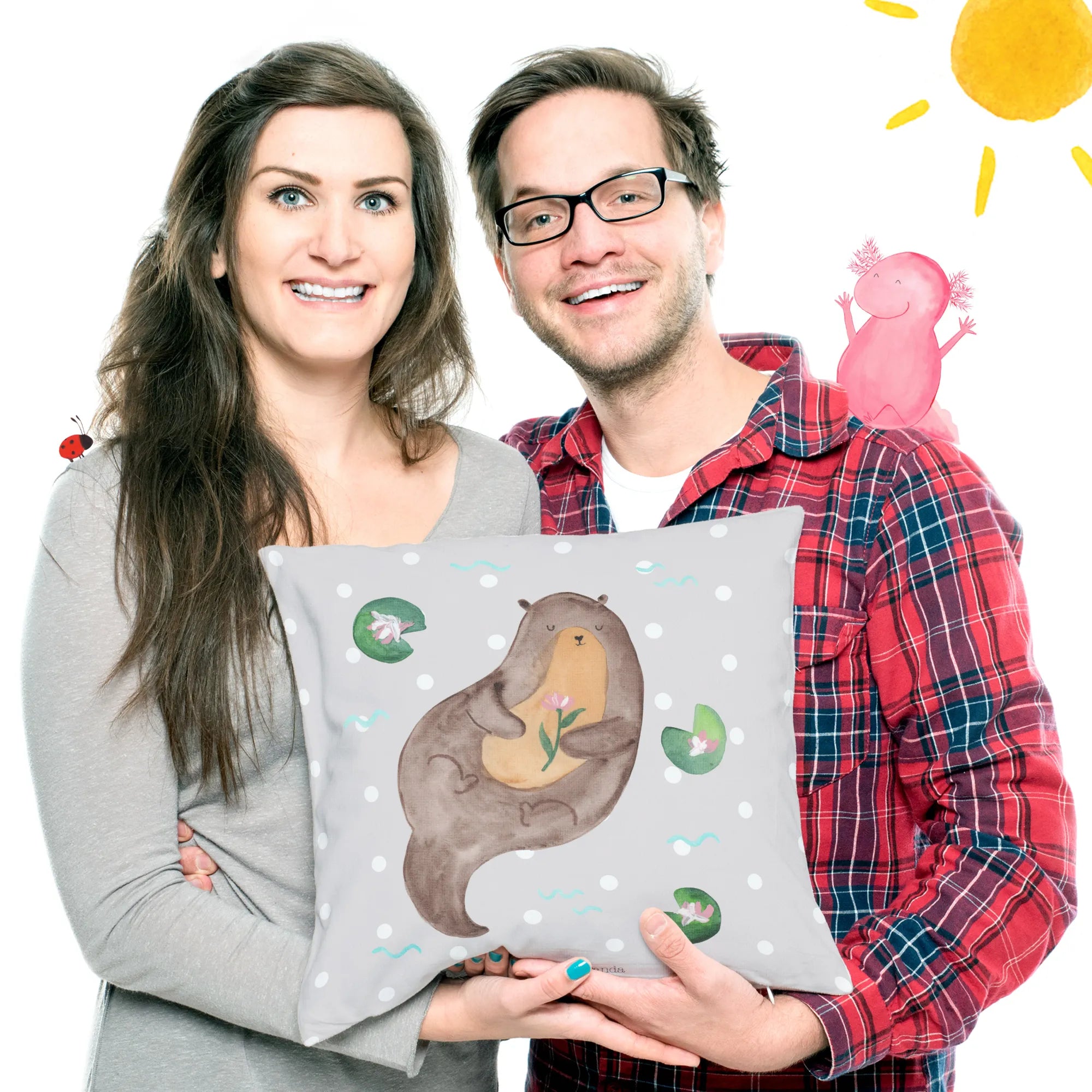 Cushion otter Water Lily - with a saying - Grey Pastel
