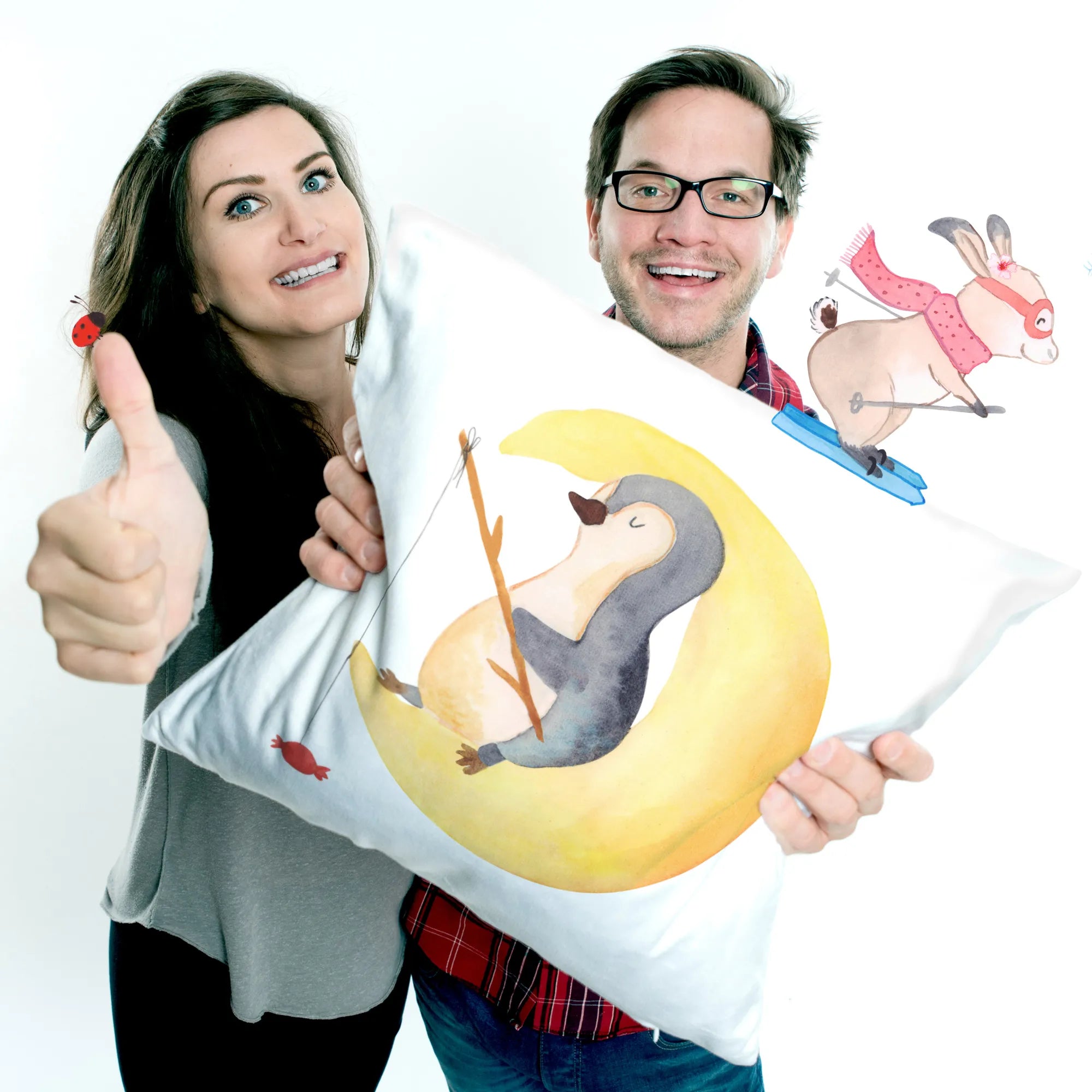 The Penguin Collection by Mr. & Mrs. Panda is a special range filled with endearing penguin motifs and joyful sayings, all hand-drawn with love. Each piece in the collection breathes a sense of wonder and creativity into any room, making it a delightful addition to home decor. The Penguin Moon Cushion without text adds a gentle touch of whimsy that complements any room theme, be it cozy winter decor or casual summer vibes.