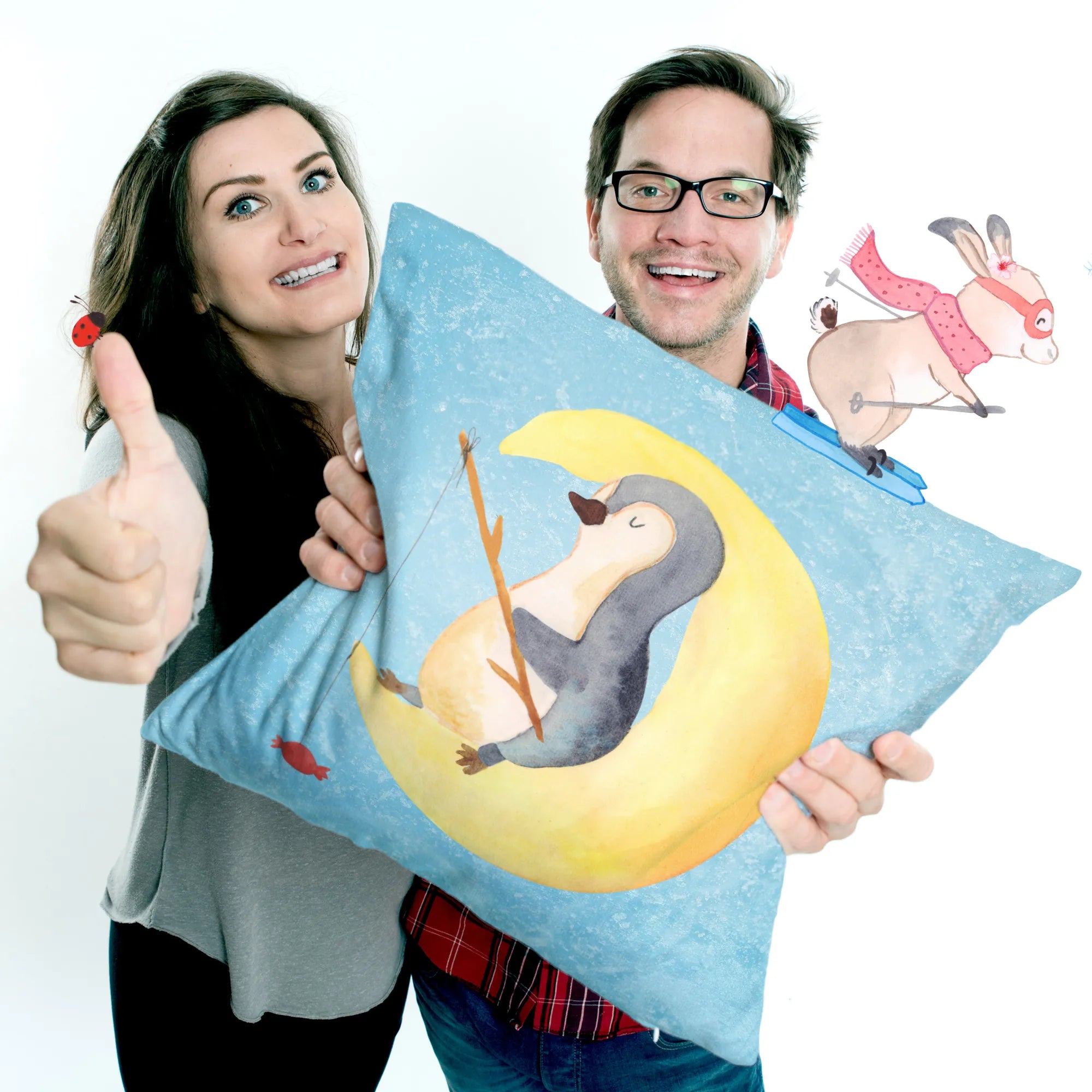 This delightful cushion features a charming motif of a sweet penguin cozily resting on a crescent moon, casting dreams over bedtime stories as it fishes for stars with a candy on its line. Perfect for anyone who adores these adorable birds or simply wants to bring a little magic into their lives, this cushion is sure to be an instant hit!