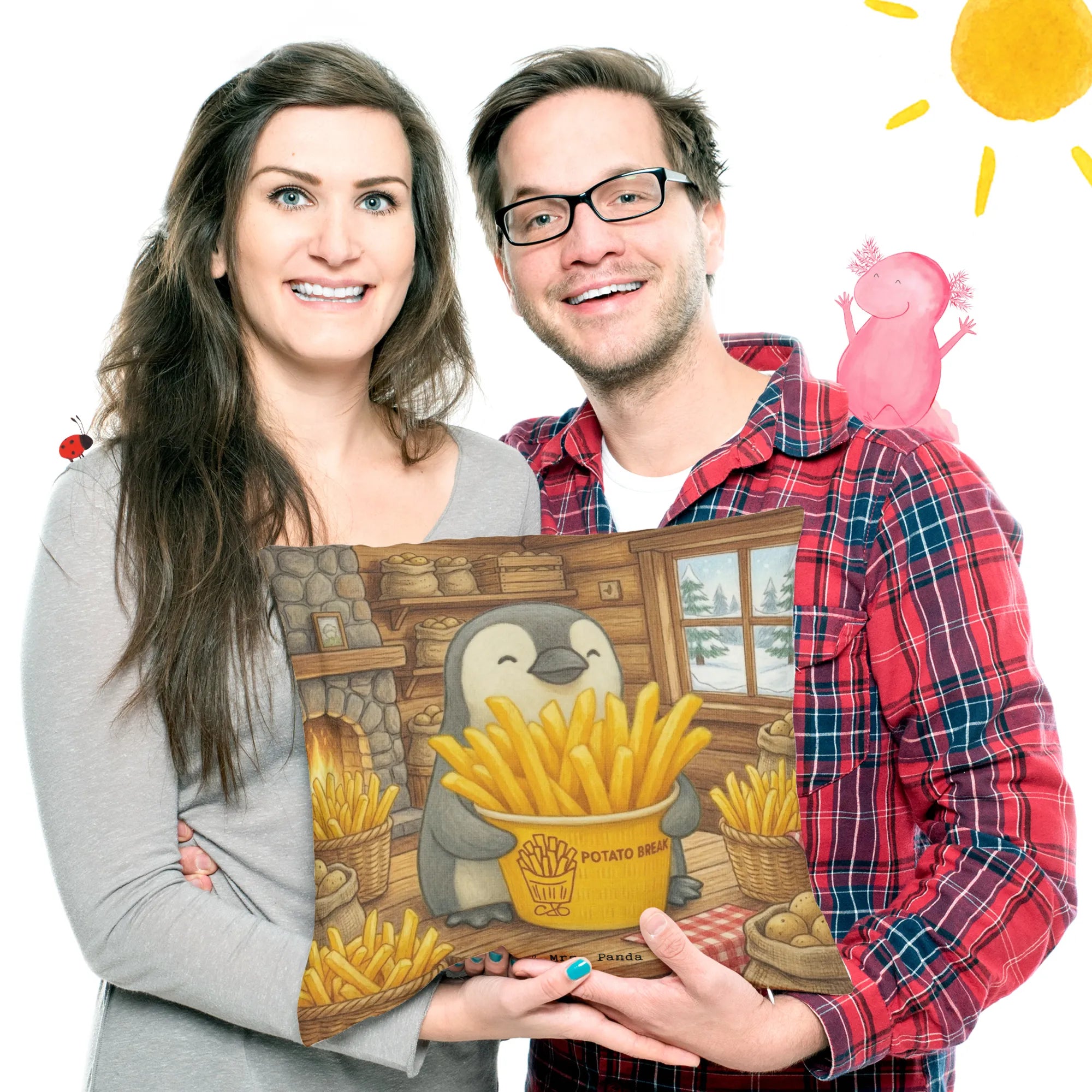Spice up your home décor with our enchanting Mr. & Mrs. Panda cushion! Sized at 400 mm x 400 mm (16 inch x 16 inch), it’s formed from ultra-soft microfiber that feels plush against your skin. Adorned with lovely prints and uplifting sayings, this cushion is a delightful complement to any sofa, armchair, or bed. The removable filling allows for hassle-free care; just unzip, and toss the cover into the washing machine at 30° C for an easy refresh. This delightful piece not only adds beauty to your space but also invites warmth and comfort to your life. Whether you're reading, relaxing, or socializing, this cushion is the perfect companion for cozy moments. Brighten up your living area with the whimsical charm of Mr. & Mrs. Panda!