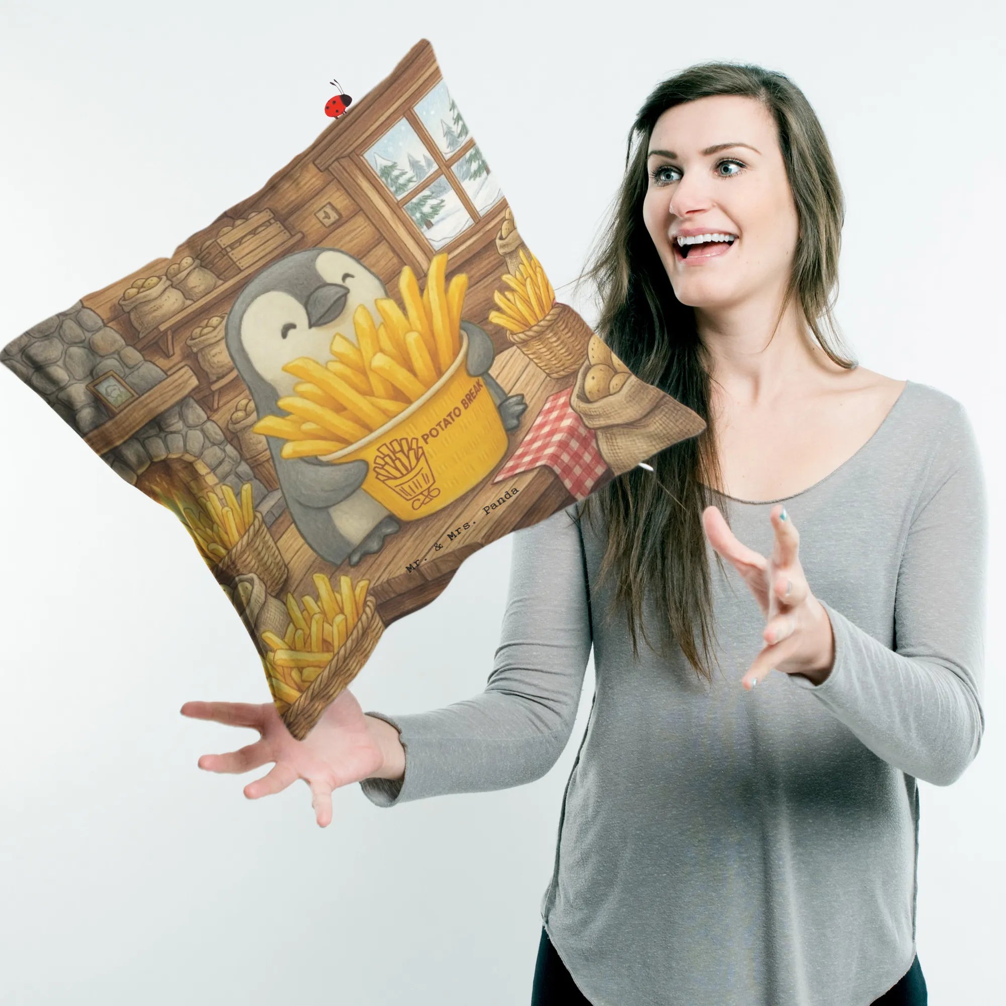 Cushion Pinguin Pommes Eimer Design