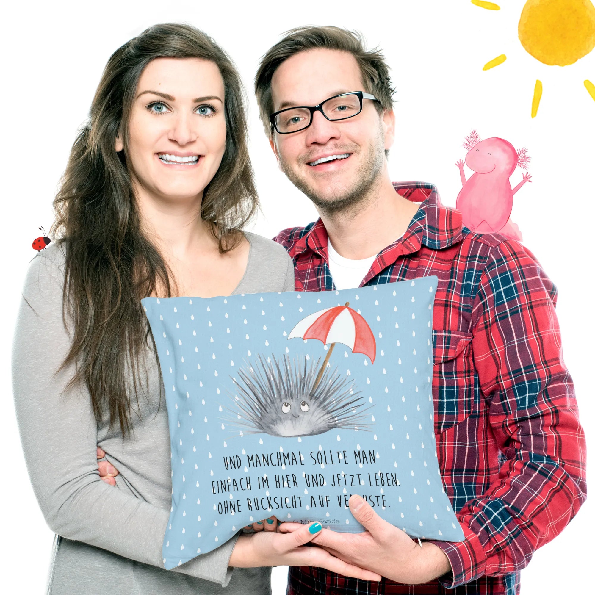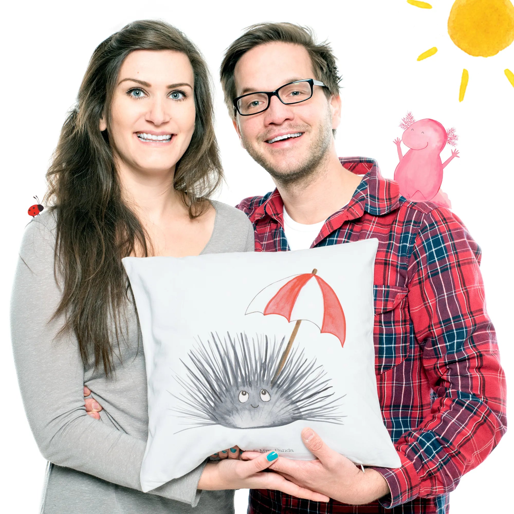 In terms of maintenance, simply wash the cover in cold water (up to 30°C), ensuring the colors stay vibrant and fresh for years to come. Soft, fluffy, and bursting with character, this cushion is more than just an accessory; it's about creating moments of joy and love in your every day. Bring home the magic of the ocean with the Mr. & Mrs. Panda Sea Urchin Cushion – the perfect gift for ocean enthusiasts and a charming addition to your decor!