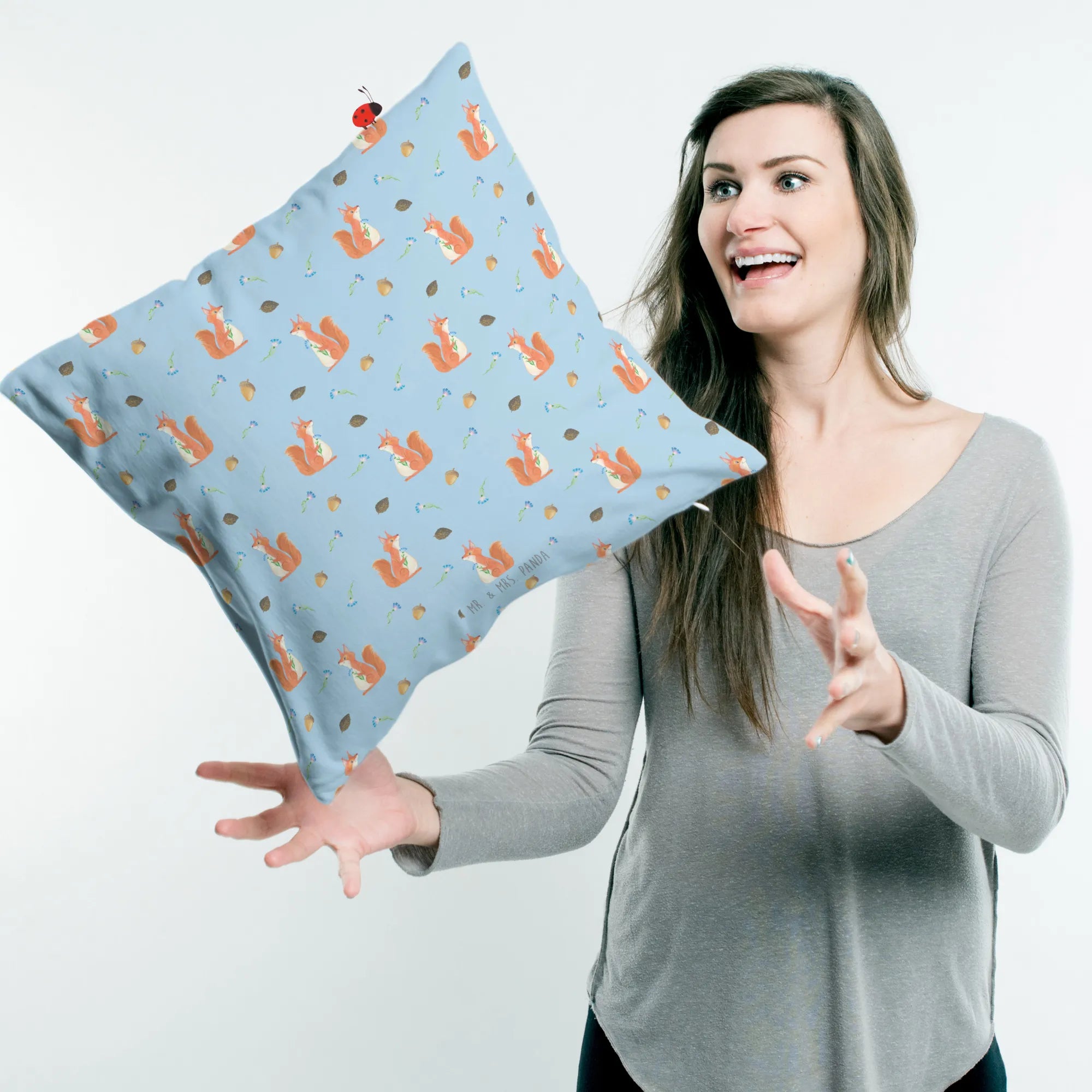 Introducing the delightful Cushion featuring a cute squirrel and a flower from Mr. & Mrs. Panda's beloved Small World collection! Perfectly sized at 40x40 cm (16x16 inches), this pillow is not just a decorative piece, but a soft and fluffy cuddle buddy that brings joy and positivity to any room in your home.
